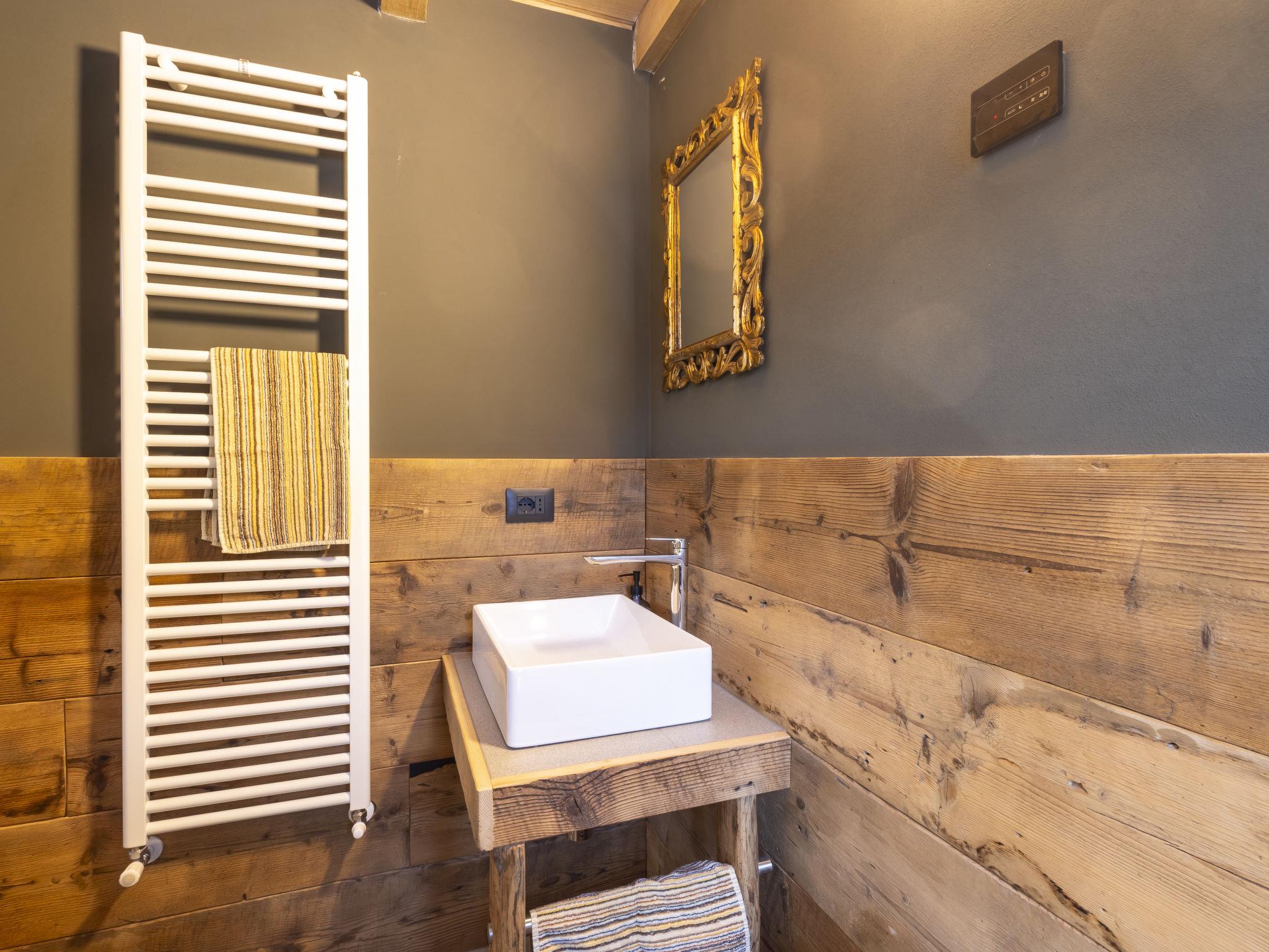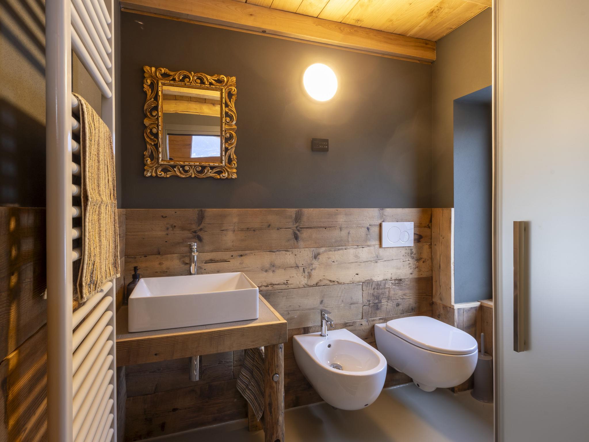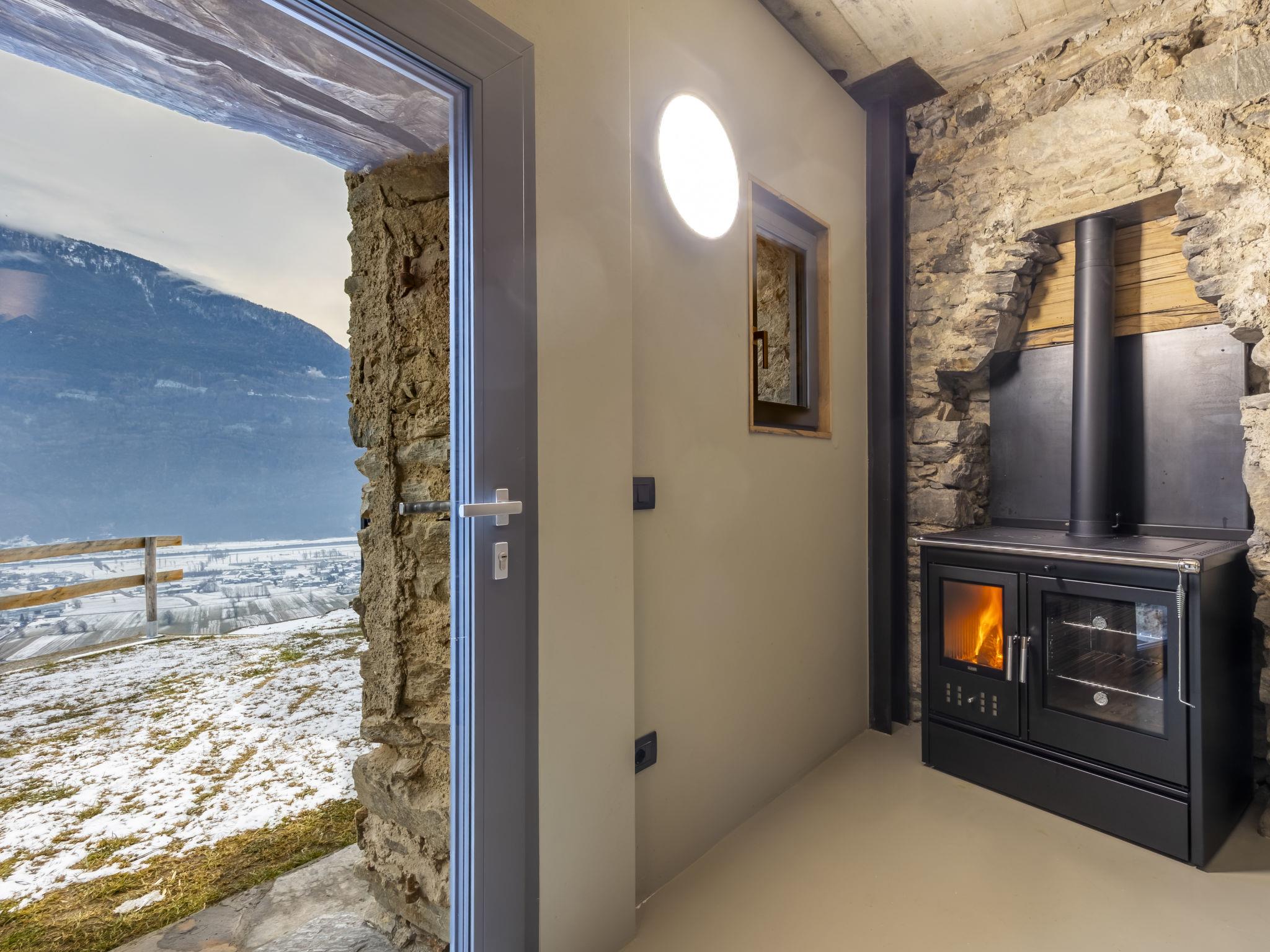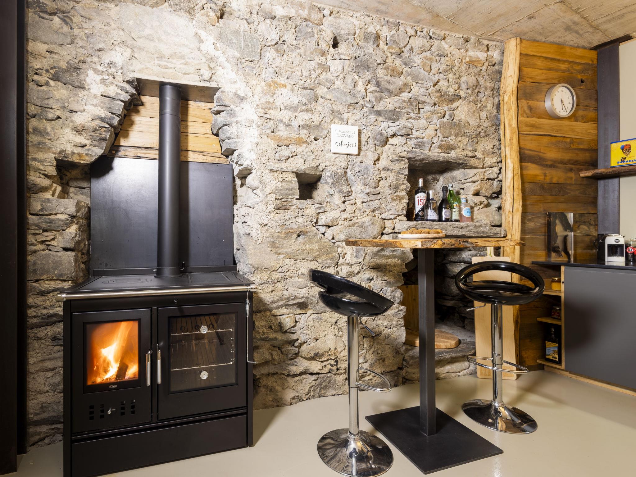 3-room chalet 80 m2 on 2 levels, south facing position. Spacious, partly with sloping ceilings, fully renovated in 2025, modern and rustic furnishings: open large living/dining room with dining table and TV. Exit to the garden. Open kitchen (4 induction hot plates, toaster, kettle, electric coffee machine, Capsules for coffee machine (Nespresso) free) with small dining table, Scandinavian wood stove. Exit to the garden. Shower/bidet/WC. Upper floor: 1 open large room with 1 double bed. 1 open small room with sloping ceilings with 1 bed. Shower/bidet/WC. Forced-air heating. Solar power. Large terrace 60 m2, garden 50 m2. Terrace furniture, barbecue, deck chairs (3). Very beautiful panoramic view of the mountains and the valley. Facilities: washing machine, children's high chair, baby cot, hair dryer, logs (free). Internet (WiFi, free). Please note: suitable for families. Fridge without freezer, non-smoking house. Maximum 1 pet/ dog allowed. Private entrance, smoke alarm, fire extinguisher. IT014010C2YELWX7QG