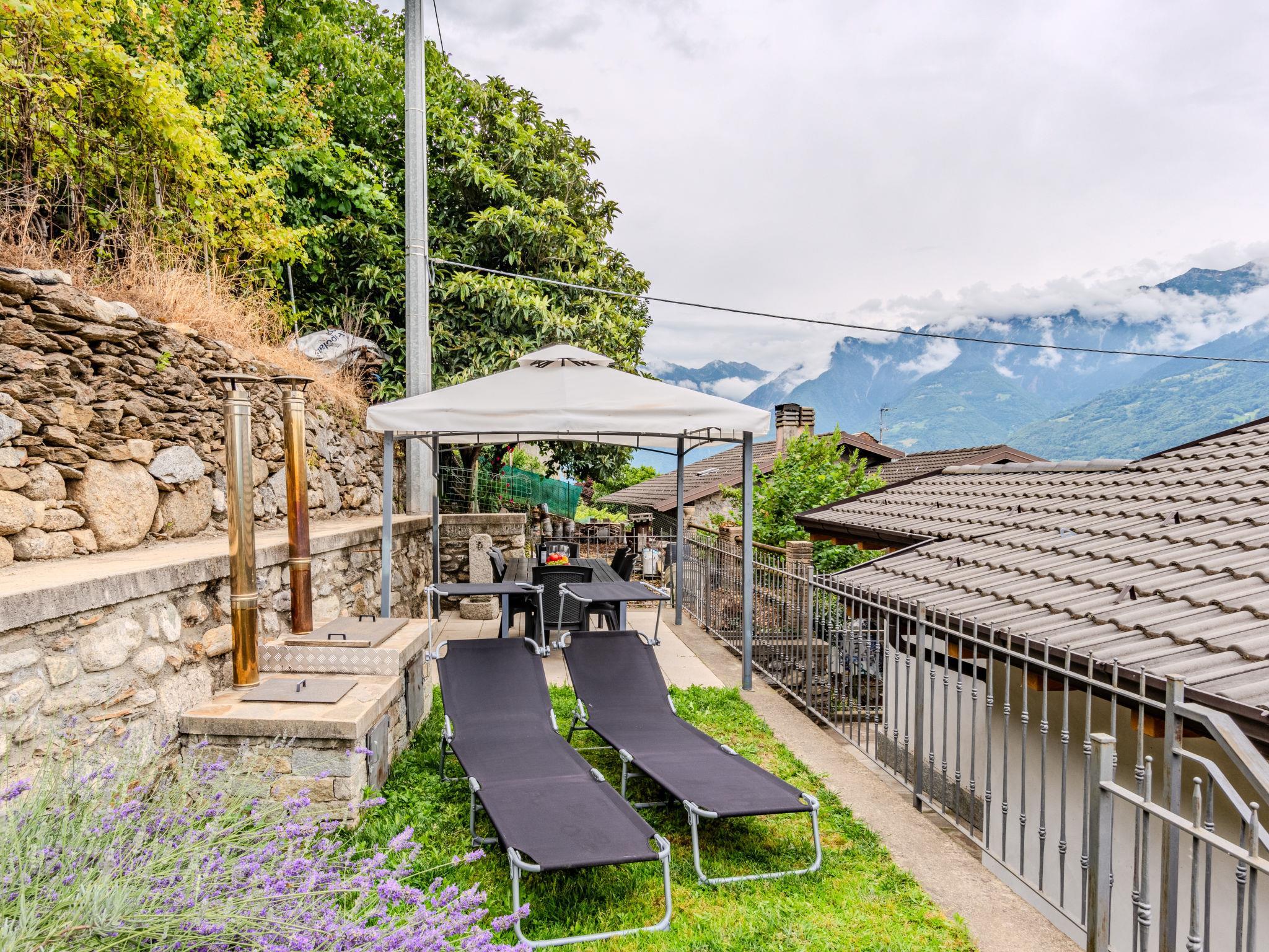 Small, comfortable apartment house "Santa Croce View", 447 m a.s.l., 3 storeys. In the hamlet Santa Croce 3.5 km from the centre of Civo, 4 km from the centre of Morbegno, in a quiet, sunny position on a slope, in the residential district, south facing position. Private: small terraced garden (not fenced). Pergola, garden furniture, barbecue. In the house: storage room for bicycles. Stepped path to the house. Public parking 100 m on the road. Grocery 3.5 km, supermarket 4 km, restaurant 1.3 km, bar 3.5 km, bus stop 1.2 km. Nearby attractions: Fly Emotion (Zipline) 15 km, Val di Mello 15 km, Ponte Tibetano Ponte nel Cielo 20 km, Sondrio 30 km, Cascate dell'Acquafraggia 39 km, Train Bernina Express: Tirano-St Moritz 55 km. Well-known ski regions can easily be reached: Campodolcino 48 km, Madesimo 55 km. Hiking paths: Bagni di Masino, Lago San Martino, Sentiero Valtellina.