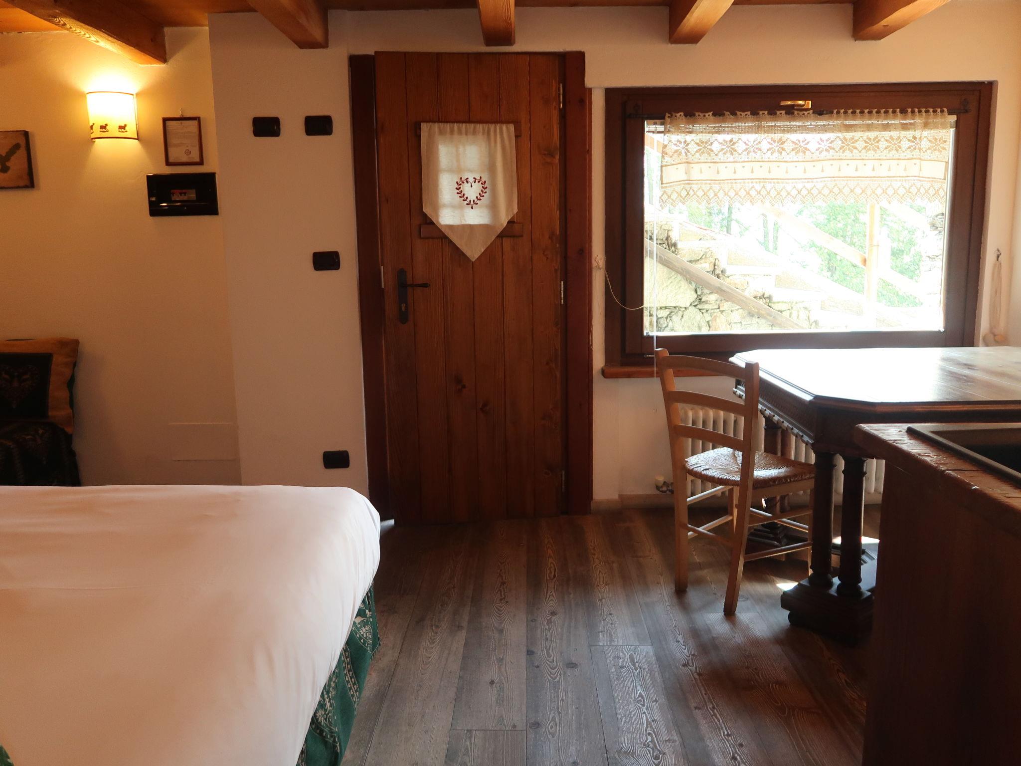 Rustic chalet "Ancienne Bergerie", 1'900 m a.s.l., from the 17th century, renovated in 2015. 5 km from the centre of Valtournenche, 15 km from the centre of Breuil Cervinia, 25 km from the centre of Chatillon/Saint Vincent, in a secluded position on a slope. For shared use: property, terraced garden (not fenced), meadow. Motor access (200 m via unmade road). In Winter: please take snow chains. 200 m footpath to the house. Public parking 200 m. Supermarket 5 km, restaurant 3.2 km, bar 1.6 km, bus stop "Valtournenche" 5 km, railway station "Chatillon" 25 km, indoor swimming pool 8 km. Golf course (18 hole) 15 km, gondola lift 7 km, slopes 3.5 km. Hiking paths: Alta Via n°1 della Valle d´Aosta 50 m. In winter, snow boots, backpack and winter sports clothing are recommended.