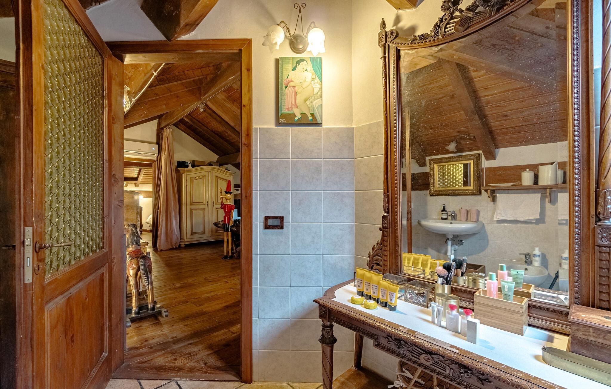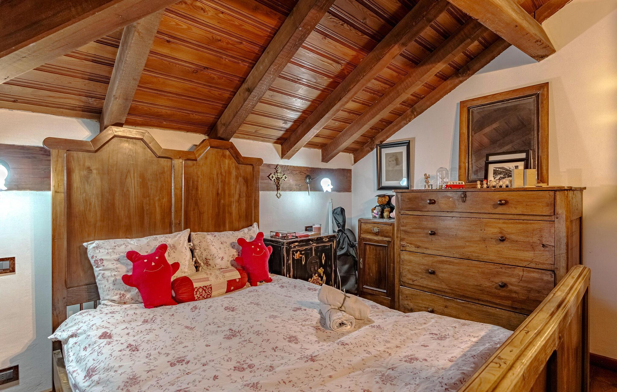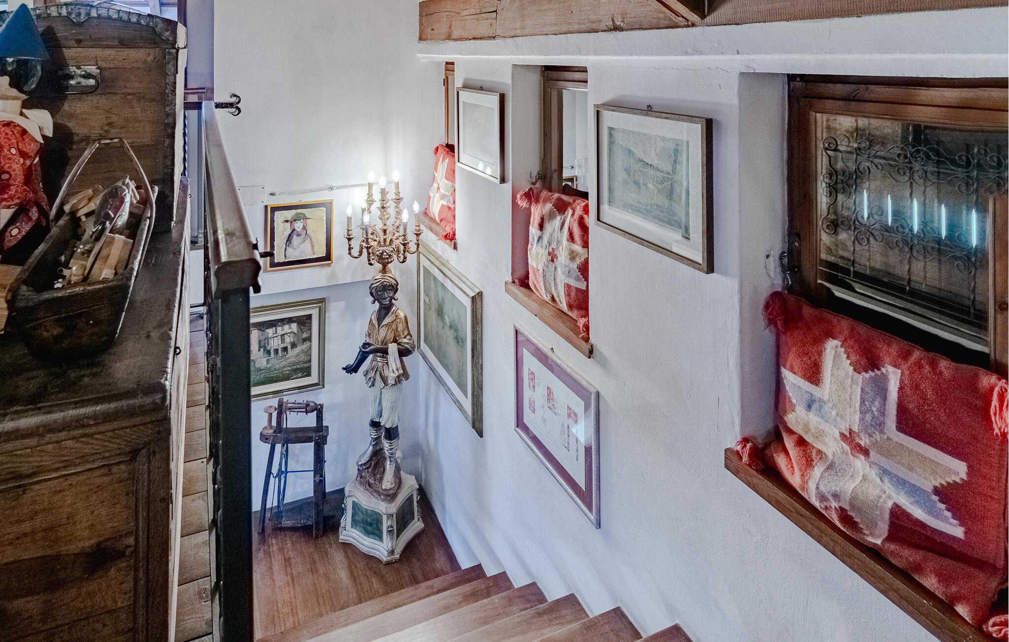 Dette rummelige og autentiske hus indbyder til afslapning med synlige bindingsværkstræk og en kærligt indrettet atmosfære. Den åbne pejs i stuen skaber en hyggelig stemning, mens det store, indbydende køkken med brændeovn, grill og professionel pålægsmaskine giver lyst til fælles madlavning. I den rummelige have med pool og terrasse kan I slappe af og nyde den vidunderlige udsigt helt ned til havet.