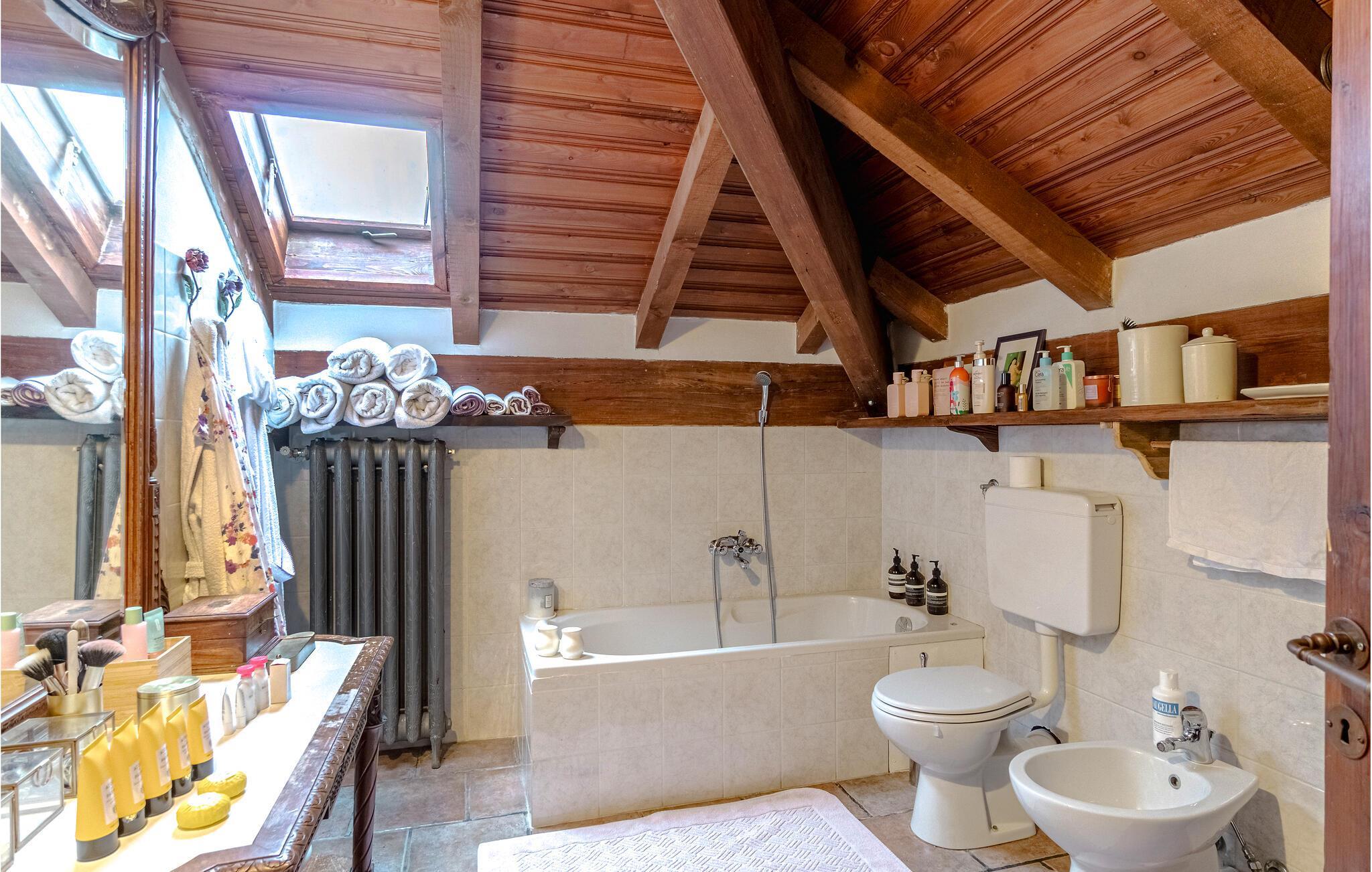 Badeværelse (nr. 1) - WC. Varmt og koldt vand. Håndbruser og badekar