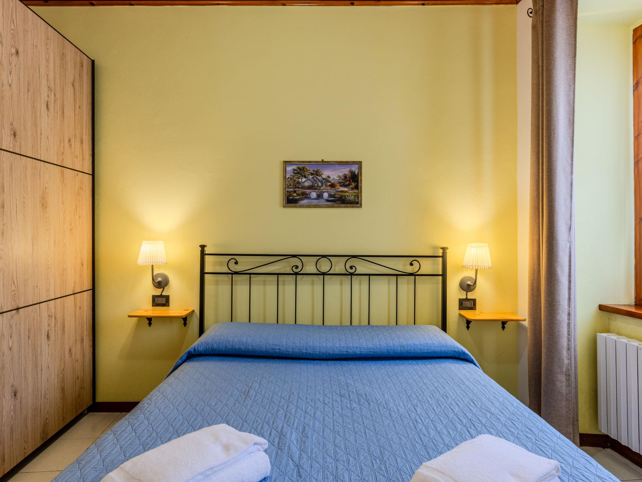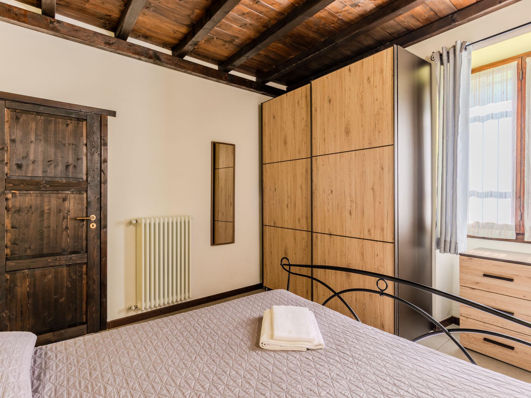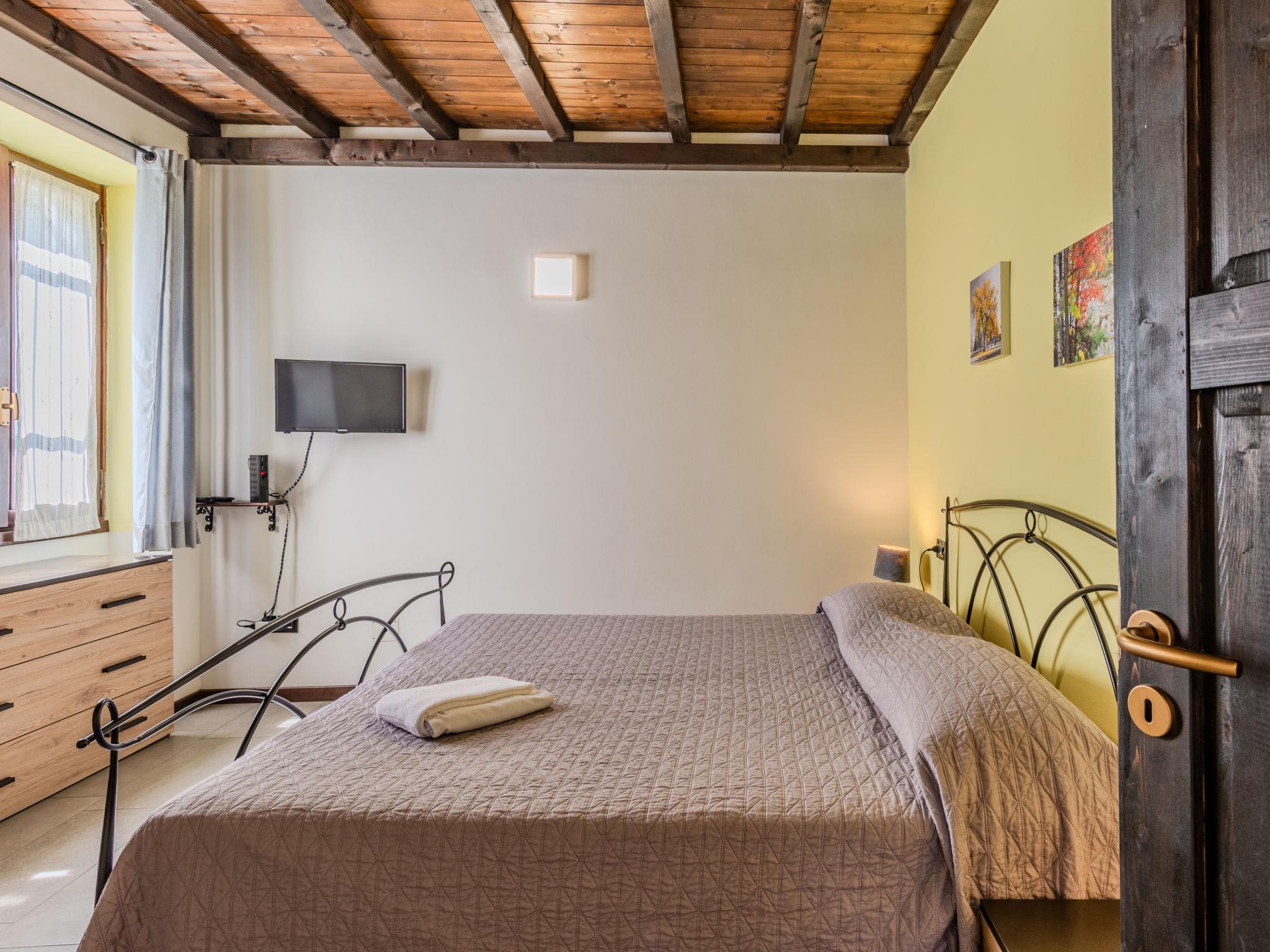 3-room house 100 m2, on the ground floor. Comfortable furnishings: open living/sleeping room with 1 sofabed and open-hearth fireplace (only for decoration), dining table and TV. 2 double bedrooms. Small, open kitchen (oven, dishwasher, 4 gas rings, toaster, kettle, microwave, electric coffee machine). Shower/bidet/WC. Gas heating. Terrace, large patio. Terrace furniture, barbecue, deck chairs (2). Beautiful view of the countryside. Facilities: washing machine, children's high chair, baby cot for up to 2 year olds, hair dryer. Internet (WiFi, free). Please note: non-smoking house. Maximum 1 pet/ dog allowed. Smoke alarm, fire extinguisher. IT097067C2UVJM5N7F