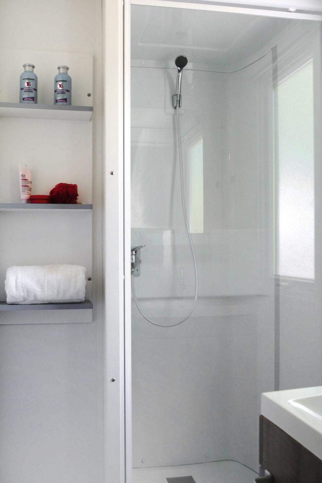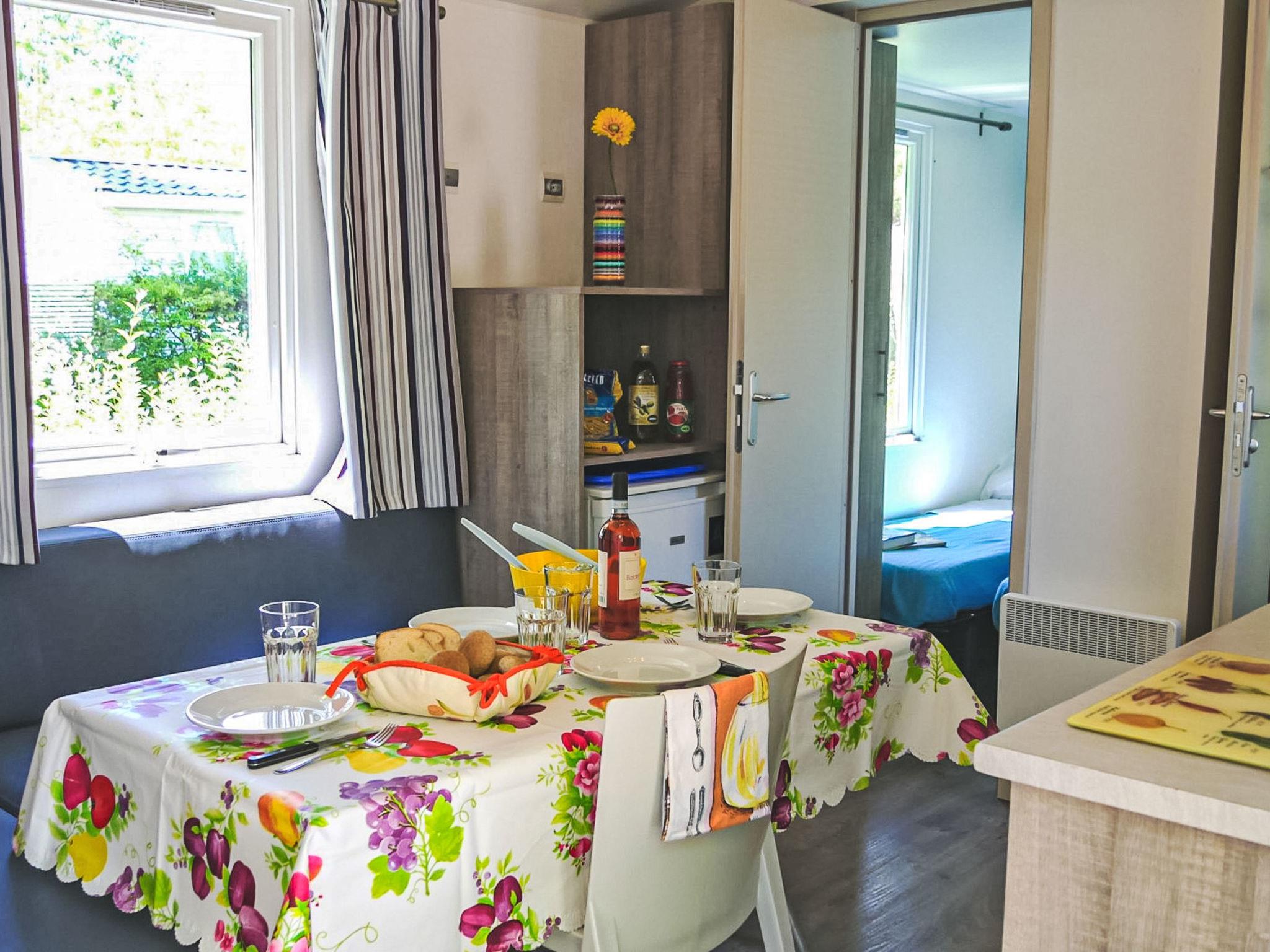 "Happy Comfort", 3-room mobile home 25 m2. Object suitable for 4 adults + 1 child. Practical furnishings: living/sleeping room with 1 sleeping facility (120 cm, length 200 cm), dining table, electric heating and air conditioning. 1 room with 1 french bed (140 cm, length 190 cm). 1 room with 2 beds (70 cm, length 190 cm). Open kitchen (4 hot plates). Shower/WC. Air-conditioning (extra). Terrace partly roofed. Terrace furniture, electric barbecue (portable), deck chairs (2). Facilities: mosquito net. Parking (1 car) at the house. Please note: non-smokers only. Maximum 1 small pet/ dog allowed. IT069099B1V492GBSN