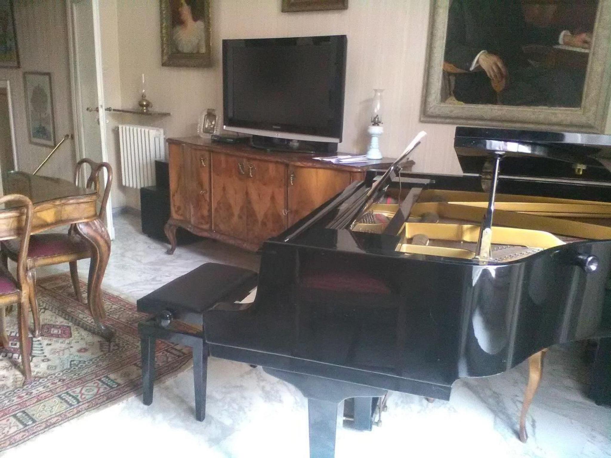 First floor apartment in the historic center of the city, 800 mt. away. about from the train station, where the train to Rome leaves, which is 35 km away and can be reached in 45 minutes. The taste and atmosphere are retro and everything is furnished with antique furniture, valuable paintings and prints and a refined grand piano, which can only be used by expert pianists who know how to play and keep it with care and special attention. In the living room, where the grand piano is located, there is a window that leads to a large terrace between the roofs, where you can have lunch or dinner outside in the summer, dream under a starry sky in the evening or enjoy the sunrise in the morning. The style of the bathroom and kitchen is unique and vintage. At about 800 mt. from the apartment it is possible to park on a private land with reserved space or near the apartment there is the possibility to park the car on the main square in public parking lots.