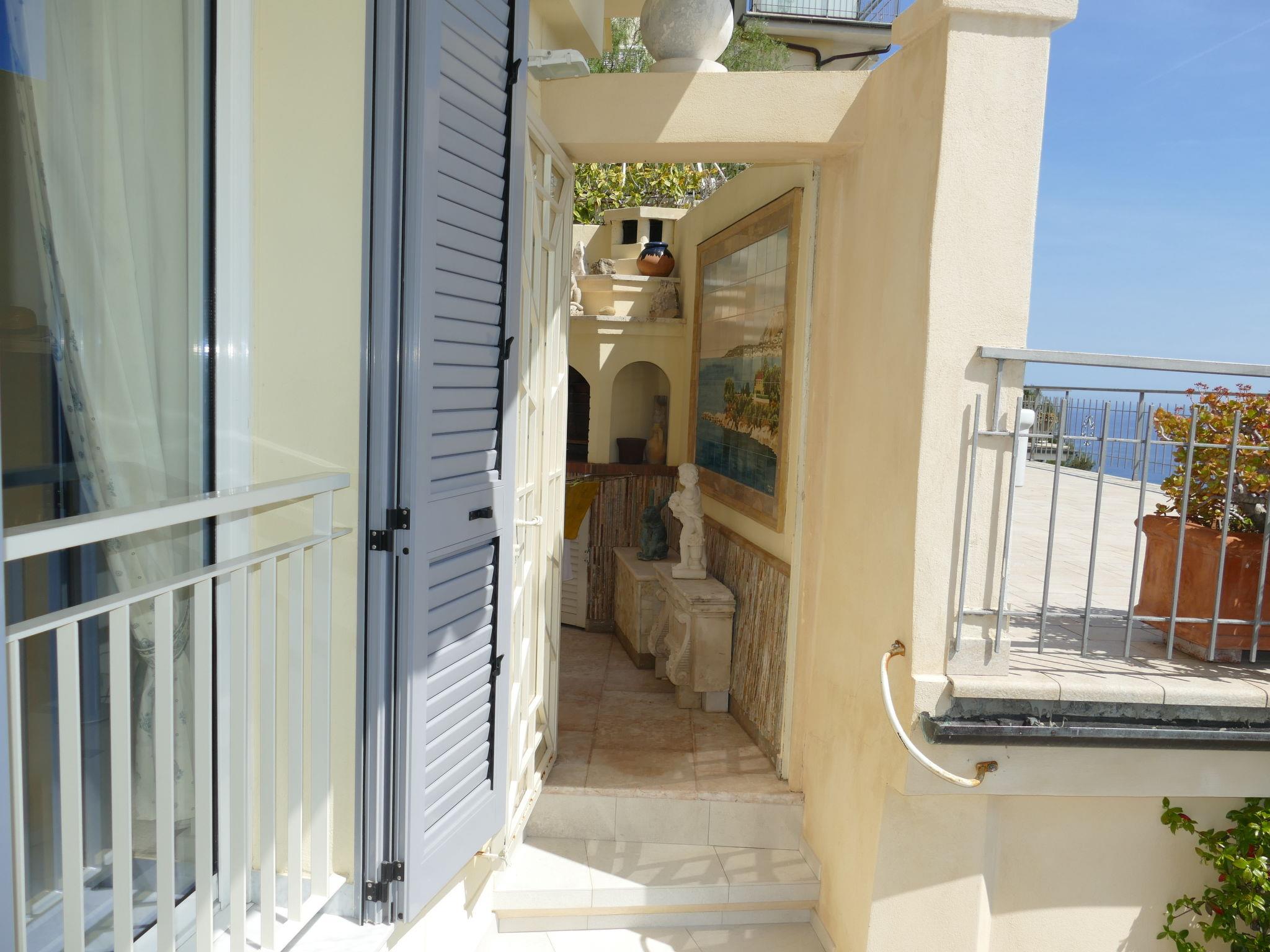 "Grimaldi", 3-room apartment 120 m2 on 2 levels. Tasteful furnishings: living/dining room. Exit to the terrace. Open kitchen (oven, dishwasher, 4 gas rings, toaster, kettle, electric coffee machine). Shower/bidet/WC, sep. WC. On the lower ground floor: 1 double bedroom. Exit to the terrace. 1 room with 1 sofabed (160 cm, length 200 cm). Exit to the balcony. Shower/bidet/WC. Gas heating. Heating available only from 15.10. to 30.04. 2 balconies 12 m2, 2 large terraces 30 m2. Terrace furniture. Very beautiful panoramic view of the sea. Facilities: washing machine, baby cot for up to 2 year olds. Please note: private entrance. IT008065B44U5PBWA2