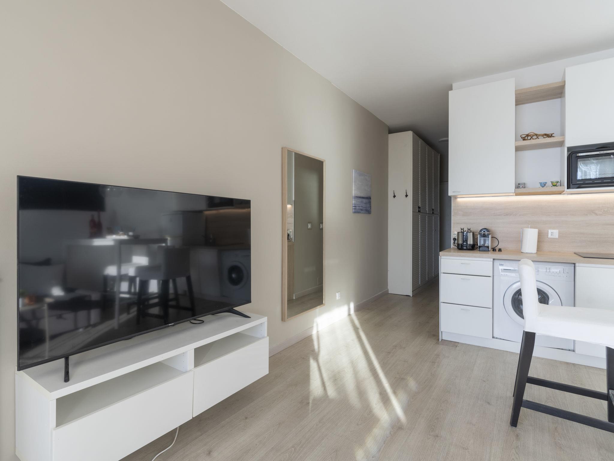 "Mare Azzurro", 1-room apartment 40 m2 on 2nd floor. Spacious and bright, tasteful and cosy furnishings: open living/sleeping room with panoramic window with 1 sofabed (120 cm, length 200 cm), 1 french bed (140 cm, length 200 cm), TV. Exit to the terrace. Open kitchen (mini-oven, 2 induction hot plates, toaster, kettle, electric coffee machine). Exit to the terrace. Shower/bidet/WC. Gas heating, air-conditioning, forced-air heating. Heating available only from 01.11. to 31.03. Terrace 18 m2. Terrace furniture. Very beautiful panoramic view of the sea. Facilities: washing machine. Internet (WiFi, free). Please note: non-smokers only. IT008065B4BBO6ICJY