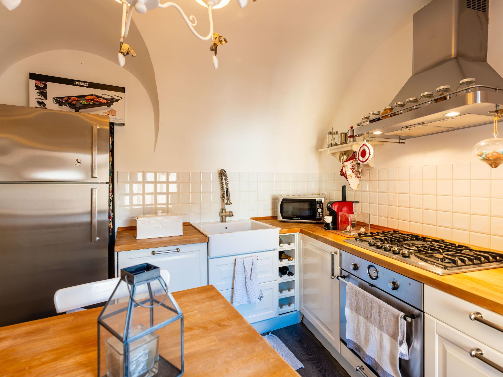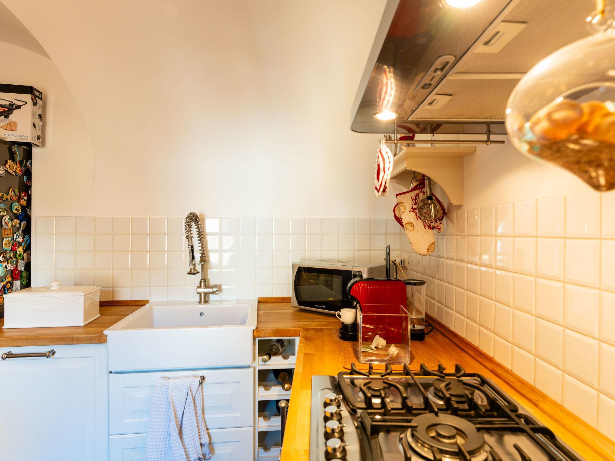 "La Petite Maison", 3-room house 75 m2, on the ground floor. Tasteful and stylish furnishings: living/dining room. 1 double bedroom. 1 room with 2 beds (90 cm, length 200 cm). Kitchen-/living room (oven, dishwasher, 4 gas rings, toaster, kettle, microwave, electric coffee machine). Shower/bidet/WC, sep. WC. Gas heating. Heating available only from 01.11. to 15.04. Garden. Terrace furniture, barbecue. Beautiful view of the countryside. Facilities: washing machine, mosquito net, children's high chair, baby cot for up to 2 year olds, hair dryer. Internet (WiFi, free). Please note: non-smoking house. Private entrance, smoke alarm, fire extinguisher. IT008065B4PVP9XE3O