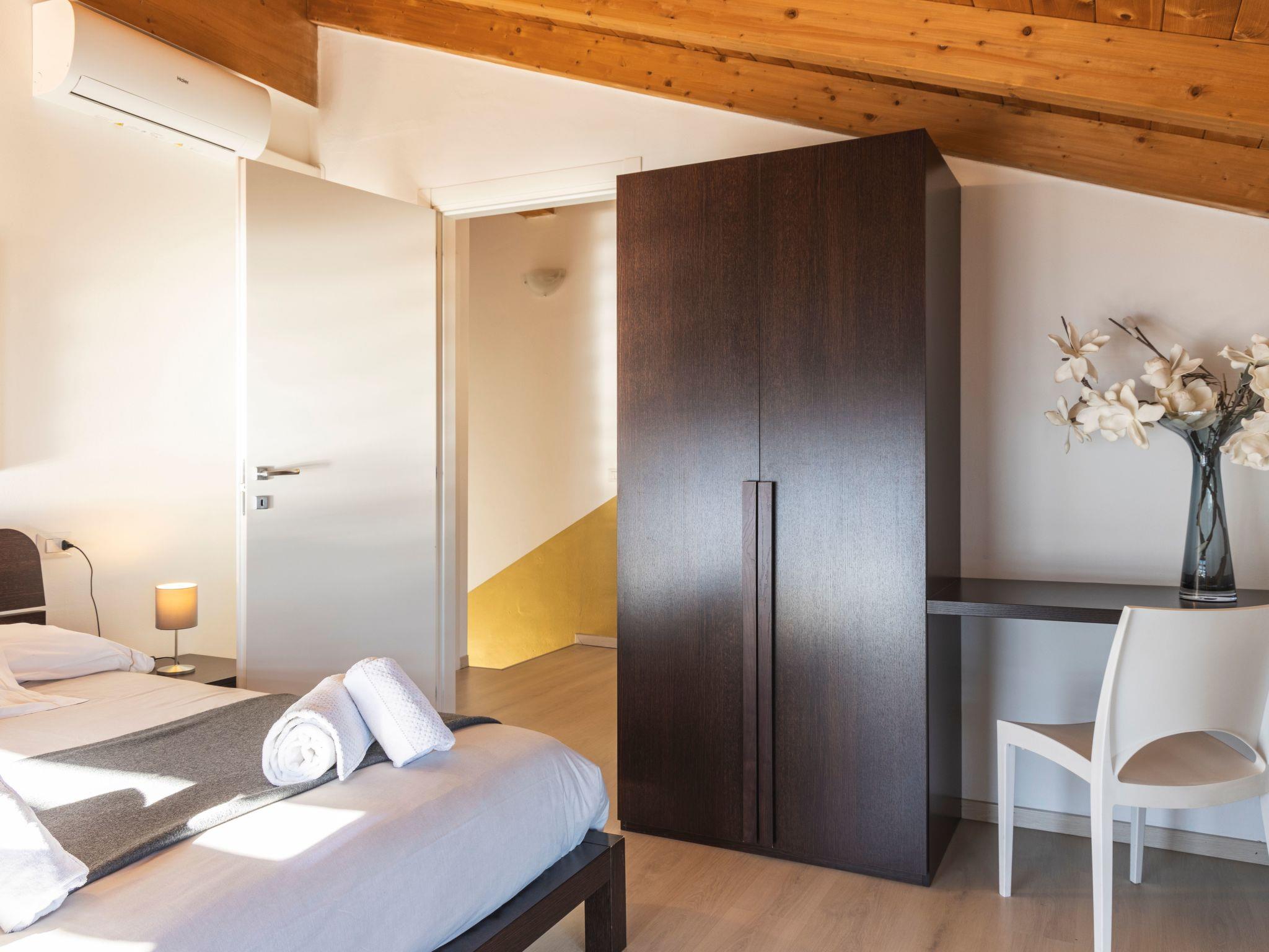 The apartment has a sunny terrace overlooking the garden and the pool.