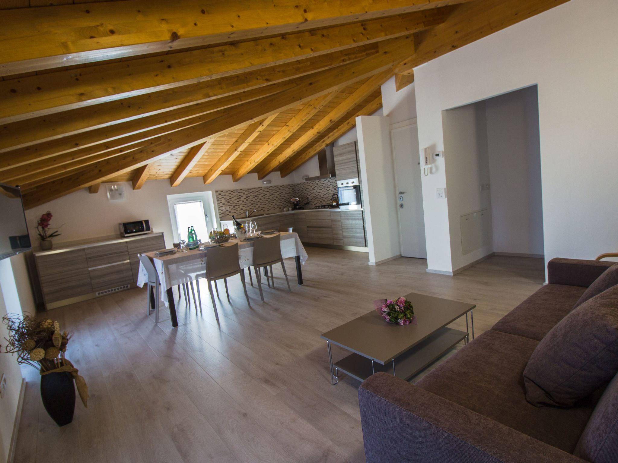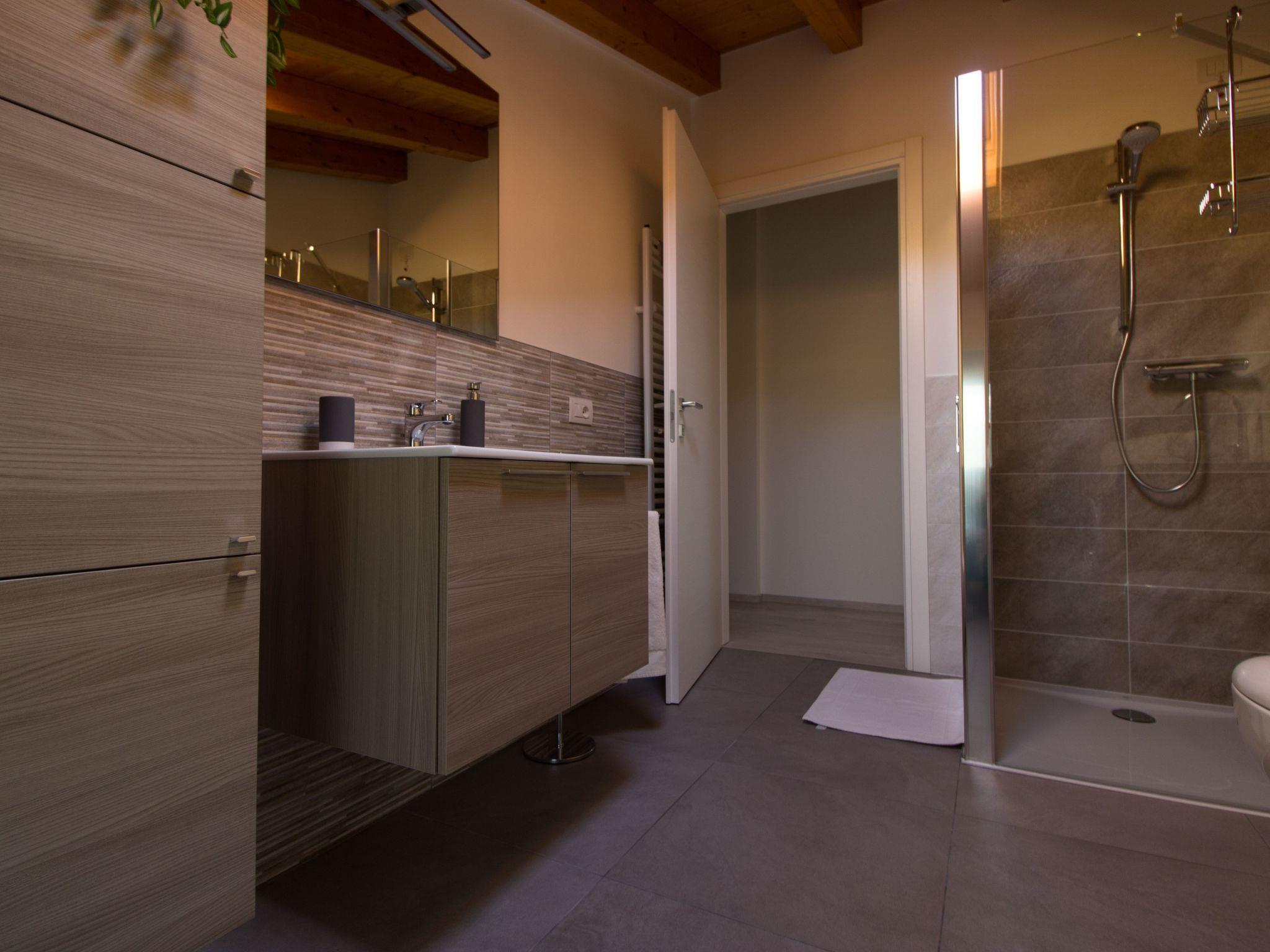 The detached villa is spread over three floors: on the ground floor there is a spacious, modernly equipped kitchen, a large living room (with double sofa bed), a double bedroom (bed 1.90 m x 2.00 m) and a bathroom with shower, washbasin and WC. The stone staircase leads to the second floor, where there are two double bedrooms (each with a double bed 1.90 m x 2.00 m), both with en-suite bathrooms and a beautiful balcony with a magnificent view of the lake. On the top floor is a self-contained flat with a modern kitchen and living room (with a double sofa bed), two double bedrooms (each with a double bed 1.90 m x 2.00 m) and two bathrooms with shower, washbasin and WC. In one of these two bathrooms there is also a washing machine. Cots are free of charge and suitable for children up to 3/4 years old. Wi-Fi access in the house is free of charge.