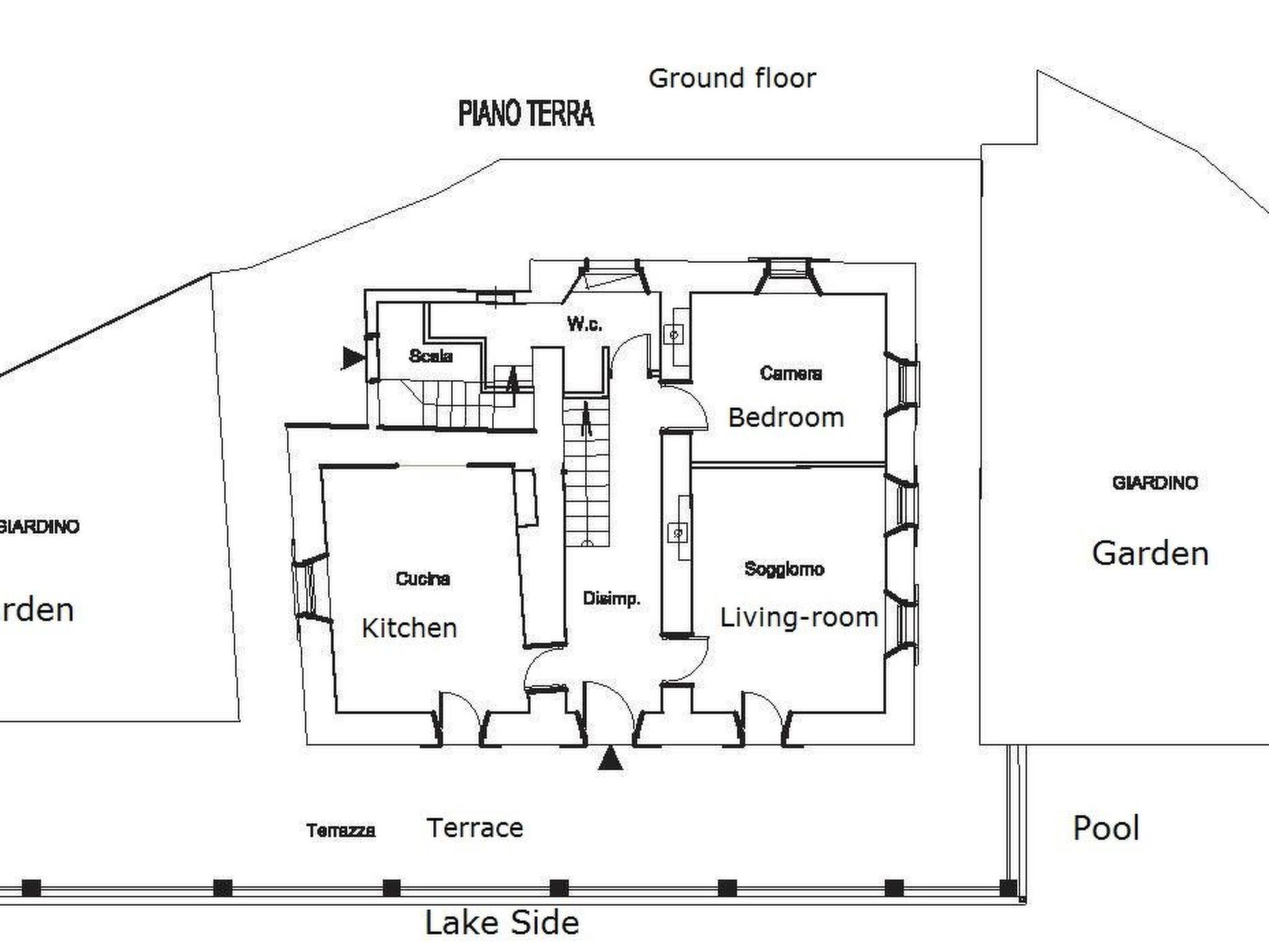 The villa has two floors: on the ground floor there is a spacious, modernly equipped kitchen, a large living room (with sofa bed), a double bedroom and a bathroom. The stone staircase leads to the upper floor where there are two double bedrooms, both with en-suite bathrooms, and a lovely balcony overlooking the lake.