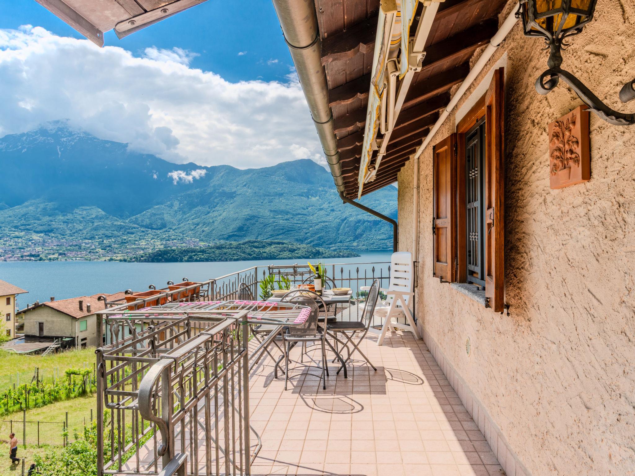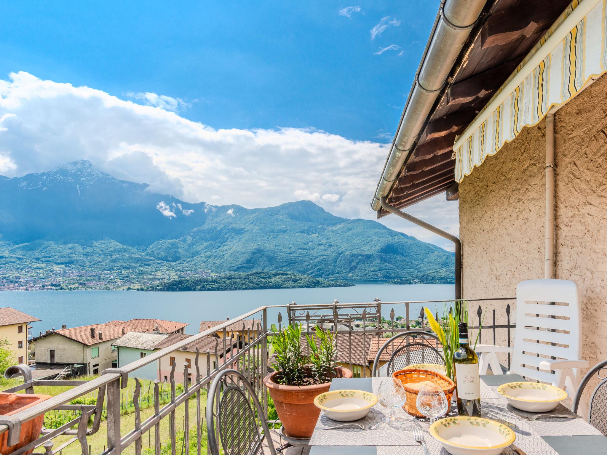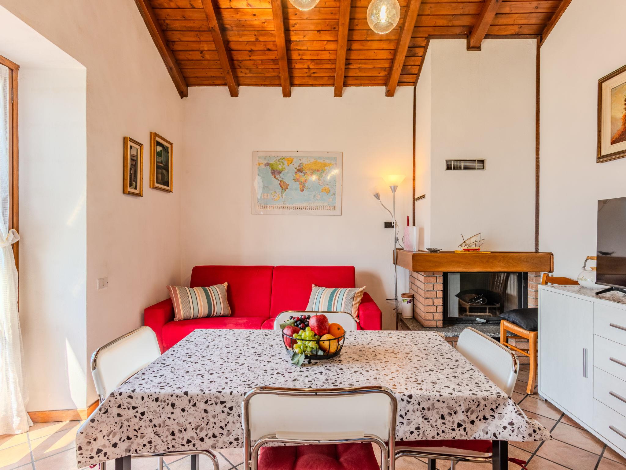 "Americo", 2-room apartment 50 m2 on 1st floor. Comfortable furnishings: open living/sleeping room with open-hearth fireplace (only for decoration), dining table and TV. Exit to the balcony. 1 double bedroom. Open kitchen (oven, dishwasher, 4 gas rings, toaster, microwave). Shower/bidet/WC. Gas heating. Heating available only from 15.10. to 15.04. 2 balconies. Balcony furniture, deck chairs (2). Marvellous panoramic view of the lake and the countryside. Facilities: washing machine. Internet (WiFi, free). Garage (1 car) at 200 m. Please note: non-smokers only. Maximum 1 pet/ dog allowed. Private entrance. IT013239C2DZDBKX14