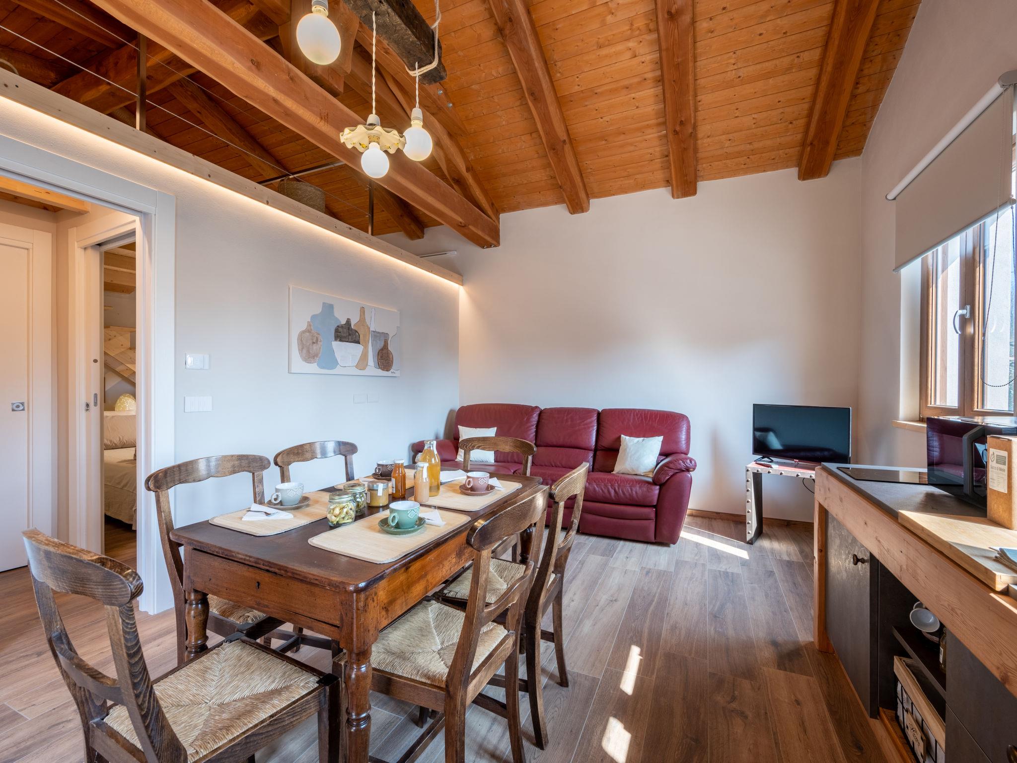"Da Marita", 2-room house 70 m2 on 2 levels on 1st floor. Living/dining room with dining table and TV. 1 double bedroom. Kitchenette (2 induction hot plates, microwave, electric coffee machine). Shower/bidet/WC. Gas heating. Heating available only from 15.10. to 15.04. Upper floor: (open staircase) open interconnecting room with sloping ceilings, ceiling height 40 - 100 cm, window onto the living room with 1 double bed. Facilities: hair dryer. Internet (WiFi, free). Instead of an enclosed bedroom, some sleeping areas are located in an open-plan area (gallery, alcove, etc.). IT004240C2GNDME8J9