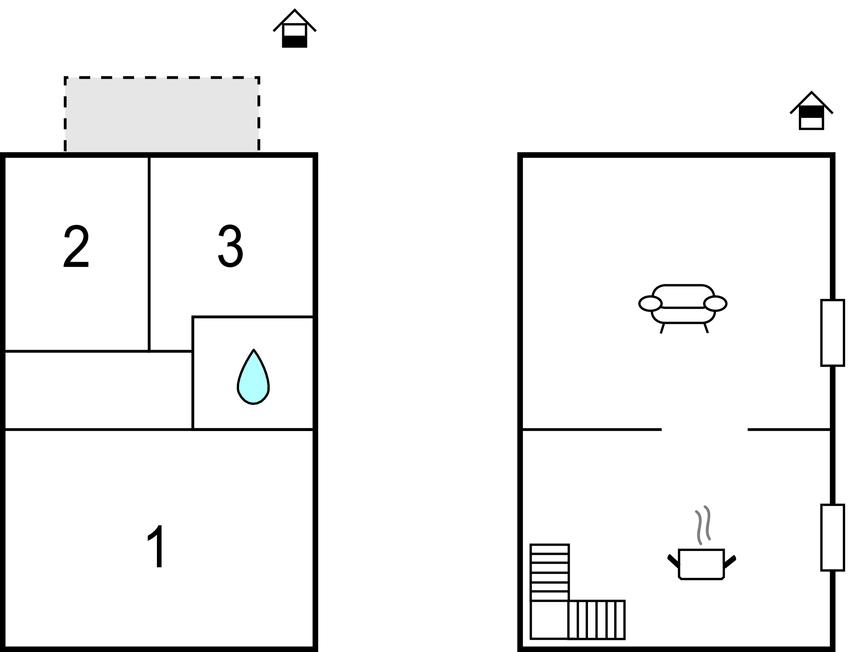 Opholdsstue/køkken - 2 Sovepladser. (Sofa, madras eller lignende).