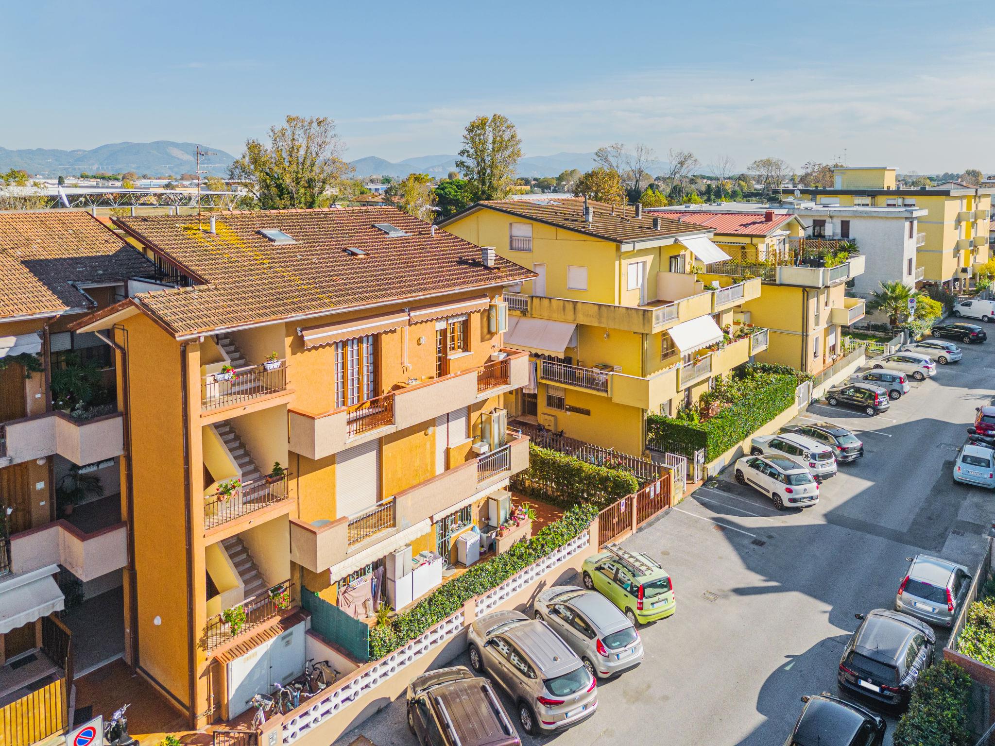 Very comfortable apartment block, 3 storeys. 16 apartments in the property. 1 km from the centre of Viareggio, in the district Campo d'Aviazione, in the residential district, residential area (villas), 500 m from the edge of the forest, 2.5 km from the sea, 2.5 km from the beach. Heating available only from 01.Nov. - 07.Apr.. Public parking on the road. Grocery, supermarket 500 m, restaurant 600 m, bakery 500 m, café 200 m, pedestrian zone 2 km, 15 minute walk to the centre, bus stop 150 m, railway station "Viareggio" 3 km, sandy beach "Spiaggia Lecciona" 2.5 km, park "Pineta Levante" 500 m, public bathing area 2.5 km. Golf course (18 hole) 15 km, sailing school 6 km, tennis 2 km, minigolf 2 km, sports centre 3 km, cycle lane 500 m. Nearby attractions: Firenze 90 km, Lucca 20 km, Pisa 20 km, Forte dei Marmi 20 km, Cinque terre 60 km, Siena 160 km. Well-known lakes can easily be reached: Massaciuccoli 6 km. Hiking paths: Sentieri Alpi Apuane 15 km. Please note: no lift. Object suitable for 4 adults + 2 children. The owner does not accept any youth groups. Railway line closeby 50 m from the property.