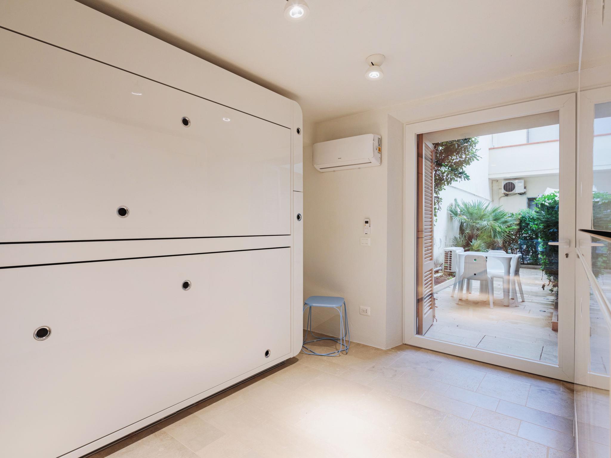 "Sea Design Home", 3-room apartment 80 m2 on 2 levels, on the ground floor. Bright, fully renovated in 2021, modern and stylish furnishings: living/sleeping room with 1 sofabed, dining table, satellite TV and hi-fi system. 1 room with 2 x 2 bunk beds, shower/bidet/WC. Exit to the patio. Kitchenette (oven, dishwasher, 4 induction hot plates, toaster, kettle, freezer, electric coffee machine, combination microwave) with dining table. Upper floor: 1 double bedroom with shower/bidet/WC, air conditioning and forced-air heating. Exit to the balcony. Small patio 15 m2. Terrace furniture. Facilities: washing machine, dryer, iron. Internet (WiFi, extra). Please note: suitable for families. Non-smokers only. IT046033C2VUW78RBG