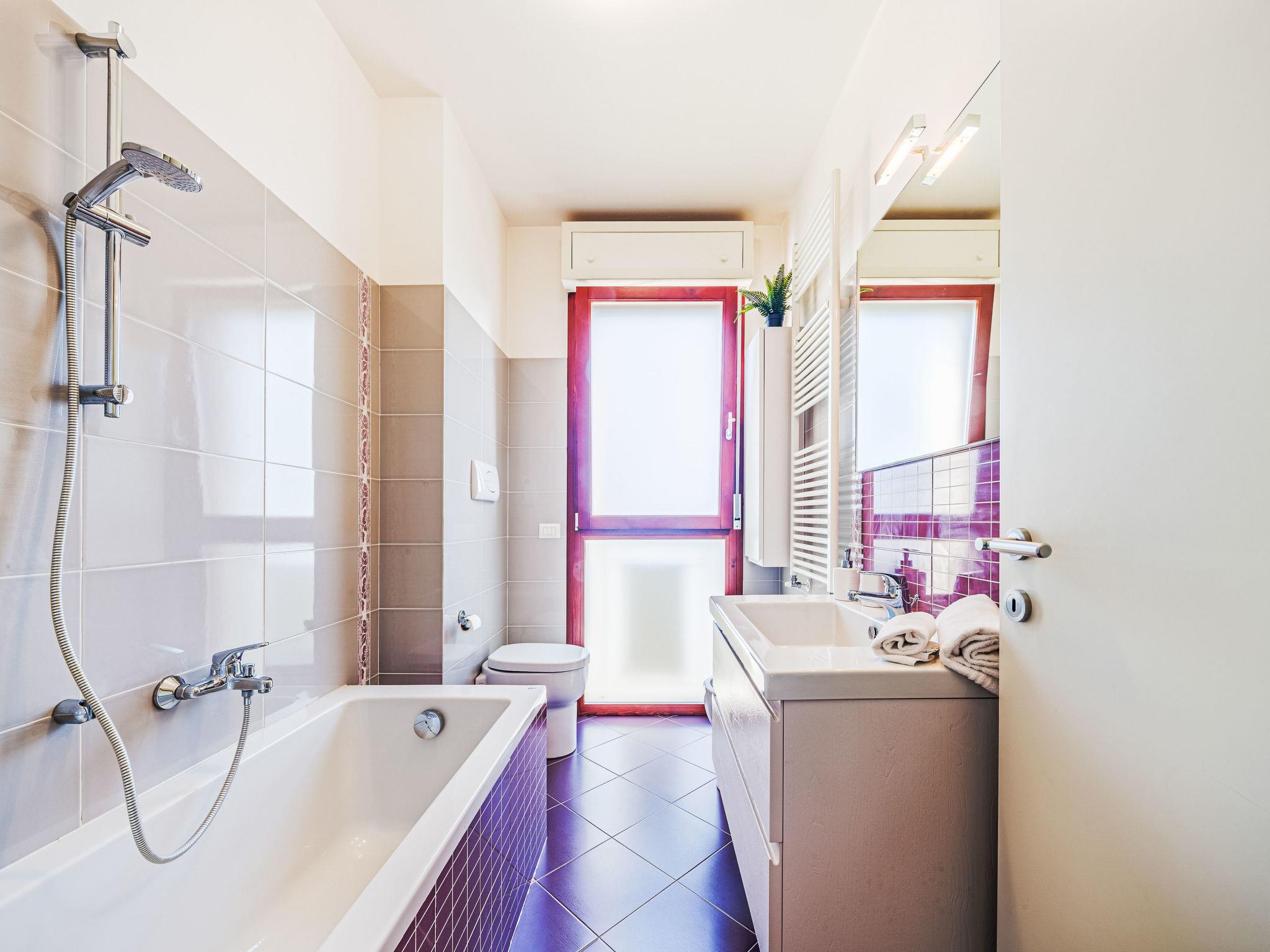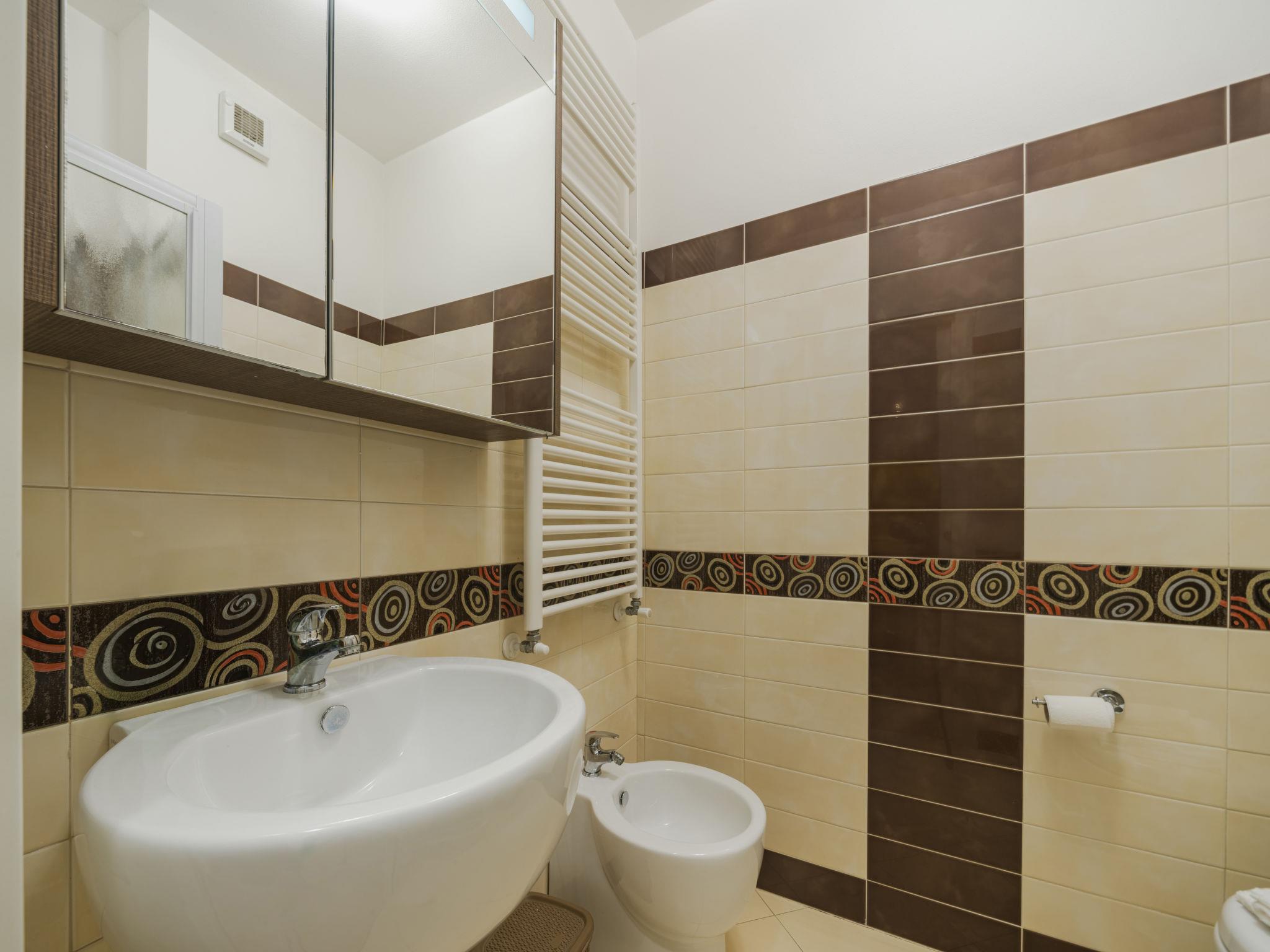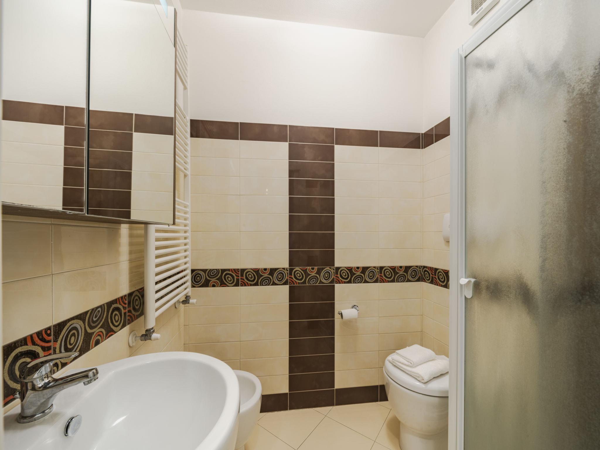 "appartamento Alice", 4-room apartment 85 m2 on 2nd floor. Spacious and bright, fully renovated, comfortable and tasteful furnishings: living/dining room with dining table and air conditioning. Exit to the terrace. 2 double bedrooms, each room with air conditioning. Exit to the balcony. 1 room with 1 bed, 1 pull-out bed and air conditioning. Exit to the balcony. Kitchenette (oven, dishwasher, Gas stove, 4 gas rings, toaster, kettle, microwave, freezer, electric coffee machine). Exit to the terrace. Bath/bidet/WC, shower/bidet/WC. Air-conditioning. Heating available only from 01.11. to 07.04. Large terrace. Terrace furniture, sitting area. Facilities: washing machine, dryer, mosquito net, hair dryer. Internet (WiFi, free). Parking (2 cars). Please note: non-smokers only. Smoke alarm, fire extinguisher. IT046033C2GWO3N6E8