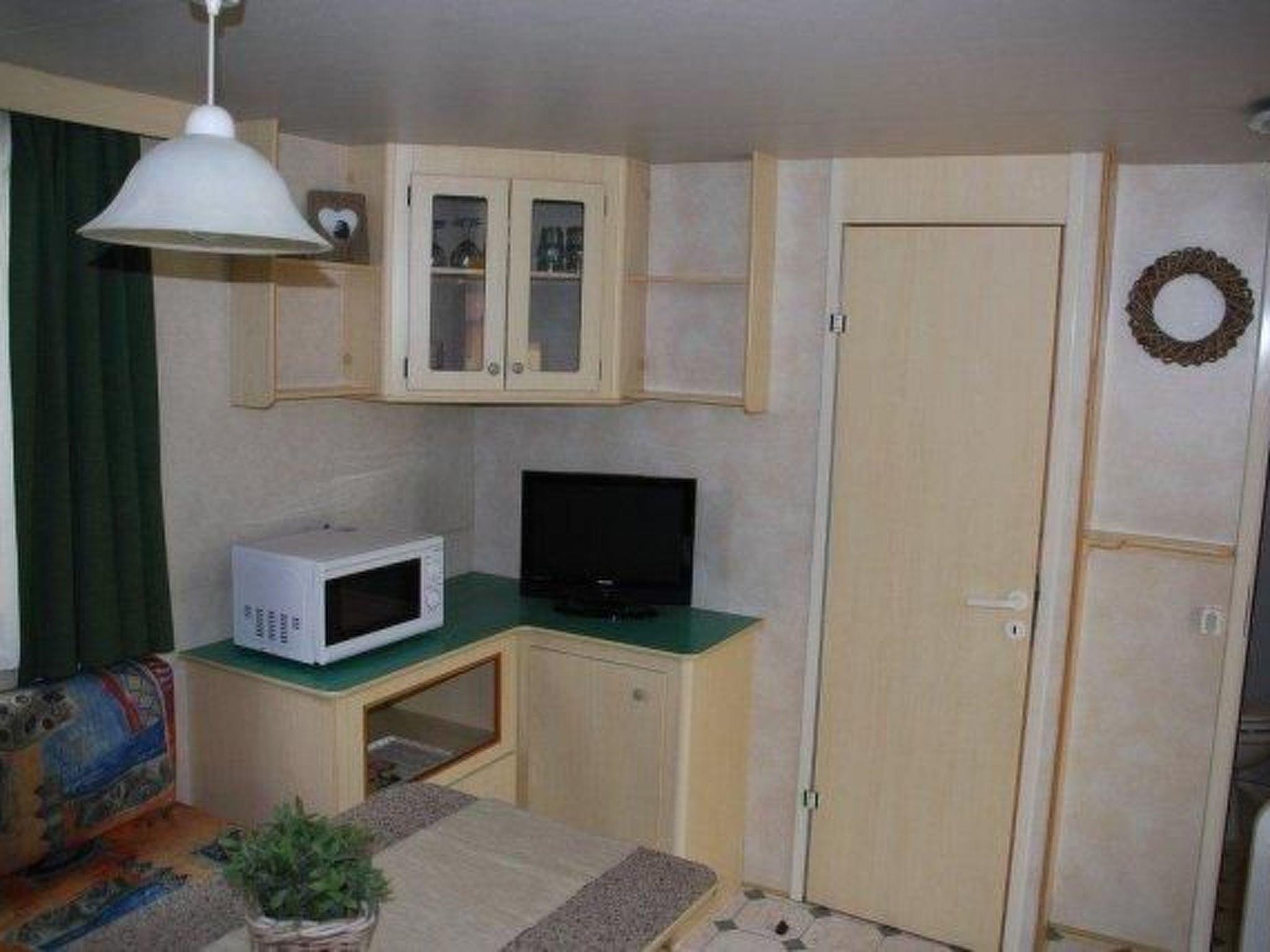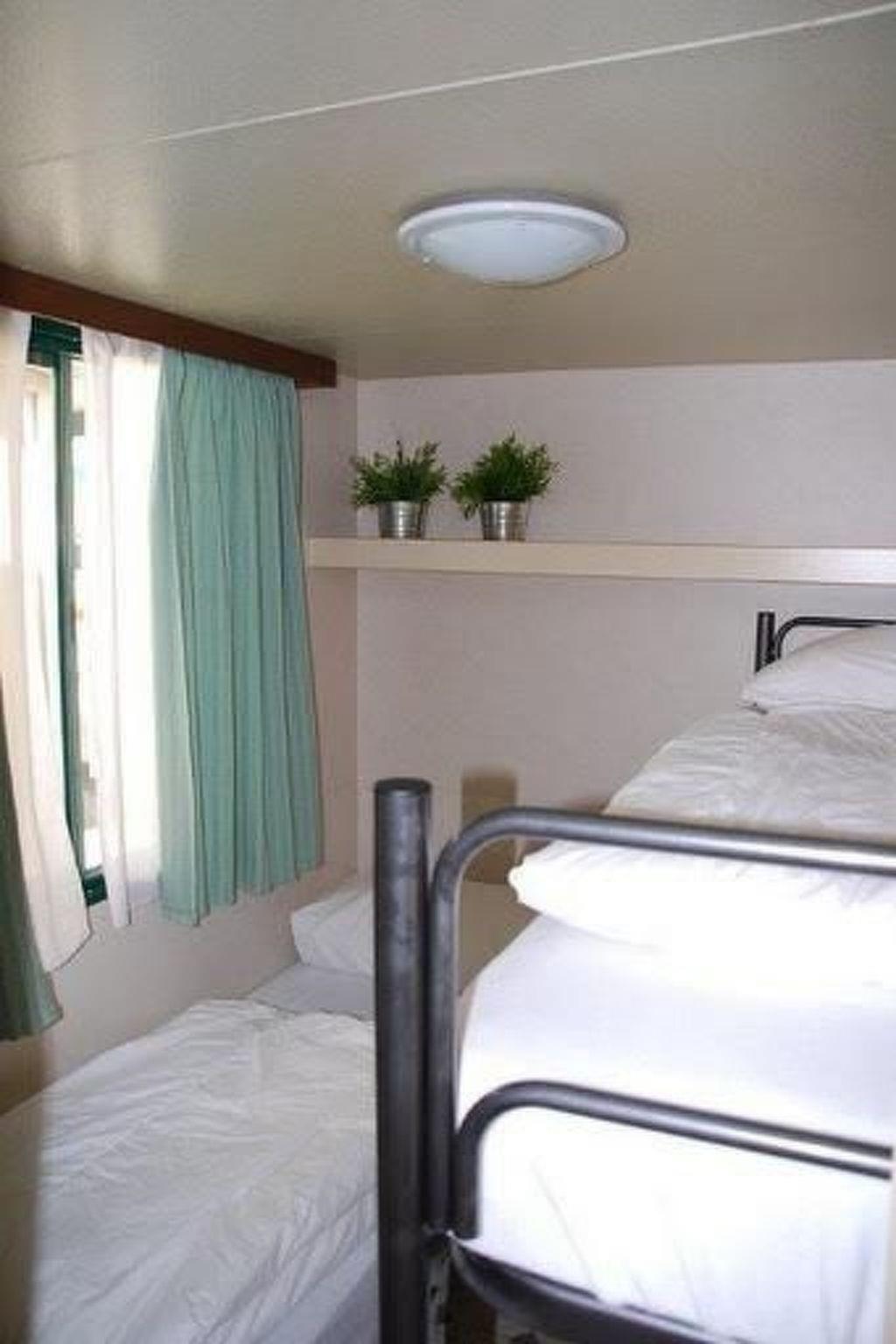 This mobile home is suitable for a maximum of five people.The owner offers four such mobile homes, of which this is a representative description.This mobile home offers you a luxurious interior.The living area provides seating, air conditioning (for a fee) , satellite TV ( only on request) and a DVD player.The open kitchen includes a fridge, a Senseo coffee machine, a microwave, a gas stove, a toaster and a kettle.There is a bedroom with a double bed, and a second bedroom with a single bed and a bunk bed for two people.The bathroom has a shower, a washbasin and a toilet.