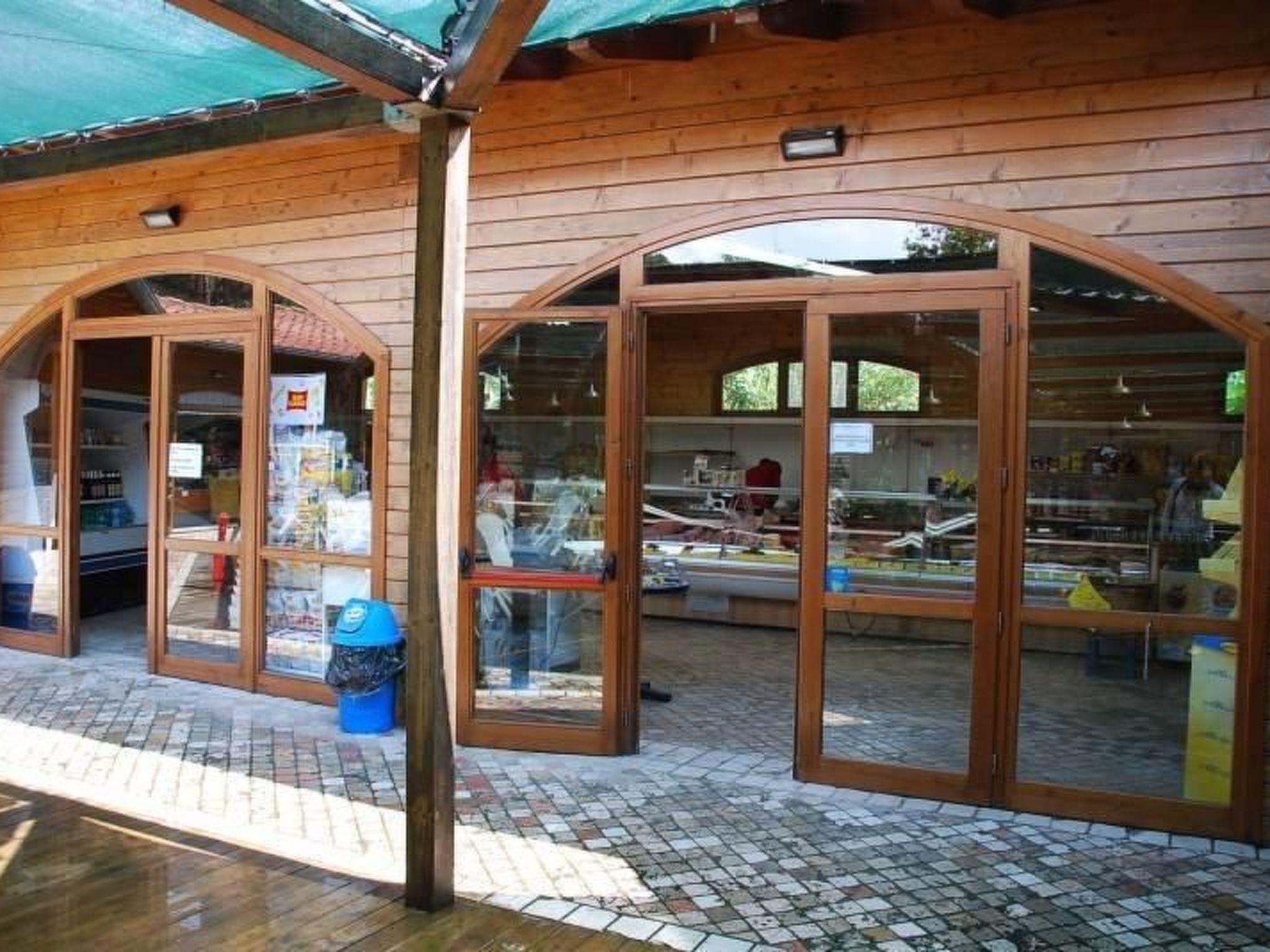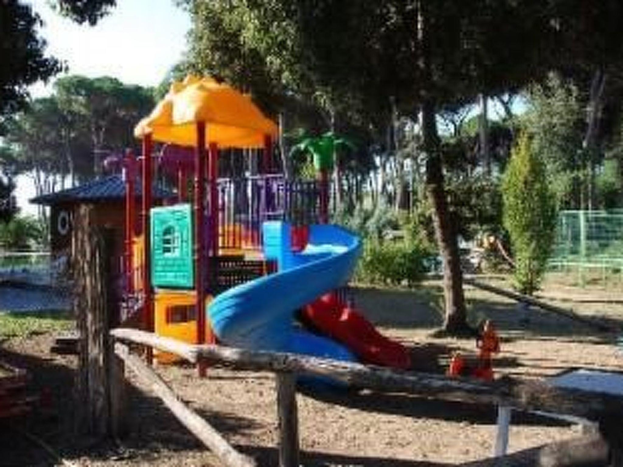 Outside there is a large, roofed and furnished veranda measuring 7 x 2m.Next to the mobile home there is a free private parking space.From the campsite there is a shuttle bus to the seaside, only in the main season There is also a large children’s playground with six large trampolines, a football pitch, climbing frames and a shared swimming pool.There are also a restaurant, a supermarket, a shop with camping gear and bike and mountain bike rental.The campsite has a capacity of around 400 places and there is a reception where Italian, German, Dutch and English are spoken.