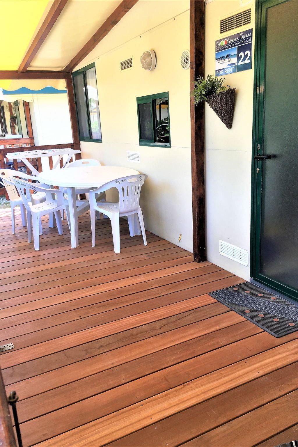This mobile home is on a beautifully located family campsite, on a nature reserve, just outside the famous seaside resort of Viareggio.The distance from the campsite to the sea is only around 900 metres.