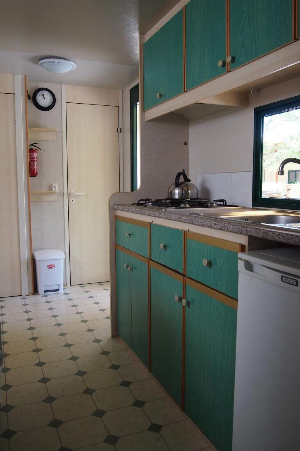 Outside there is a large, roofed and furnished veranda measuring 7 x 2m.Next to the mobile home there is a free private parking space.From the campsite there is a shuttle bus to the seaside, only in the main season There is also a large children’s playground with six large trampolines, a football pitch, climbing frames and a shared swimming pool.There are also a restaurant, a supermarket, a shop with camping gear and bike and mountain bike rental.The campsite has a capacity of around 400 places and there is a reception where Italian, German, Dutch and English are spoken.