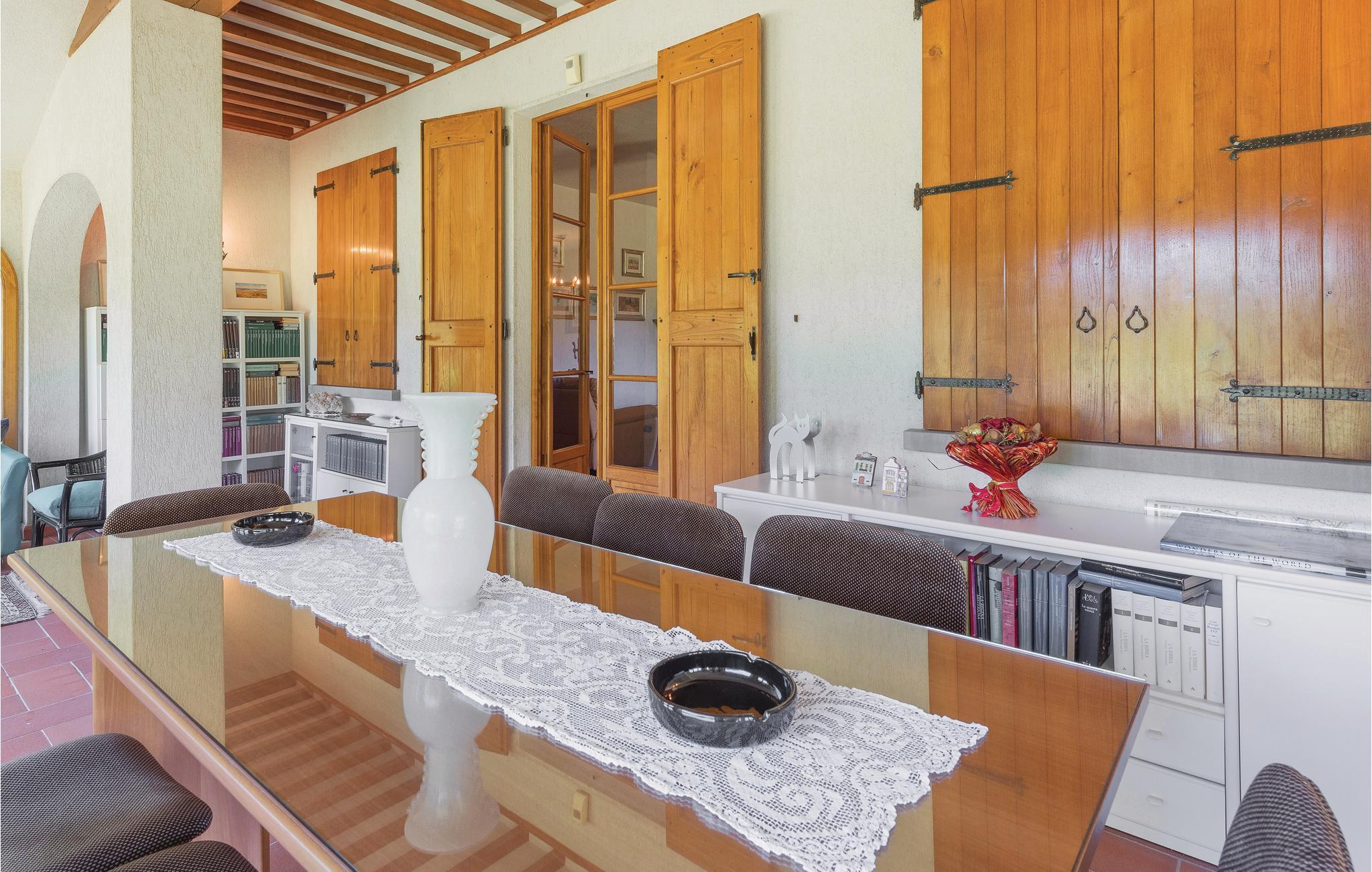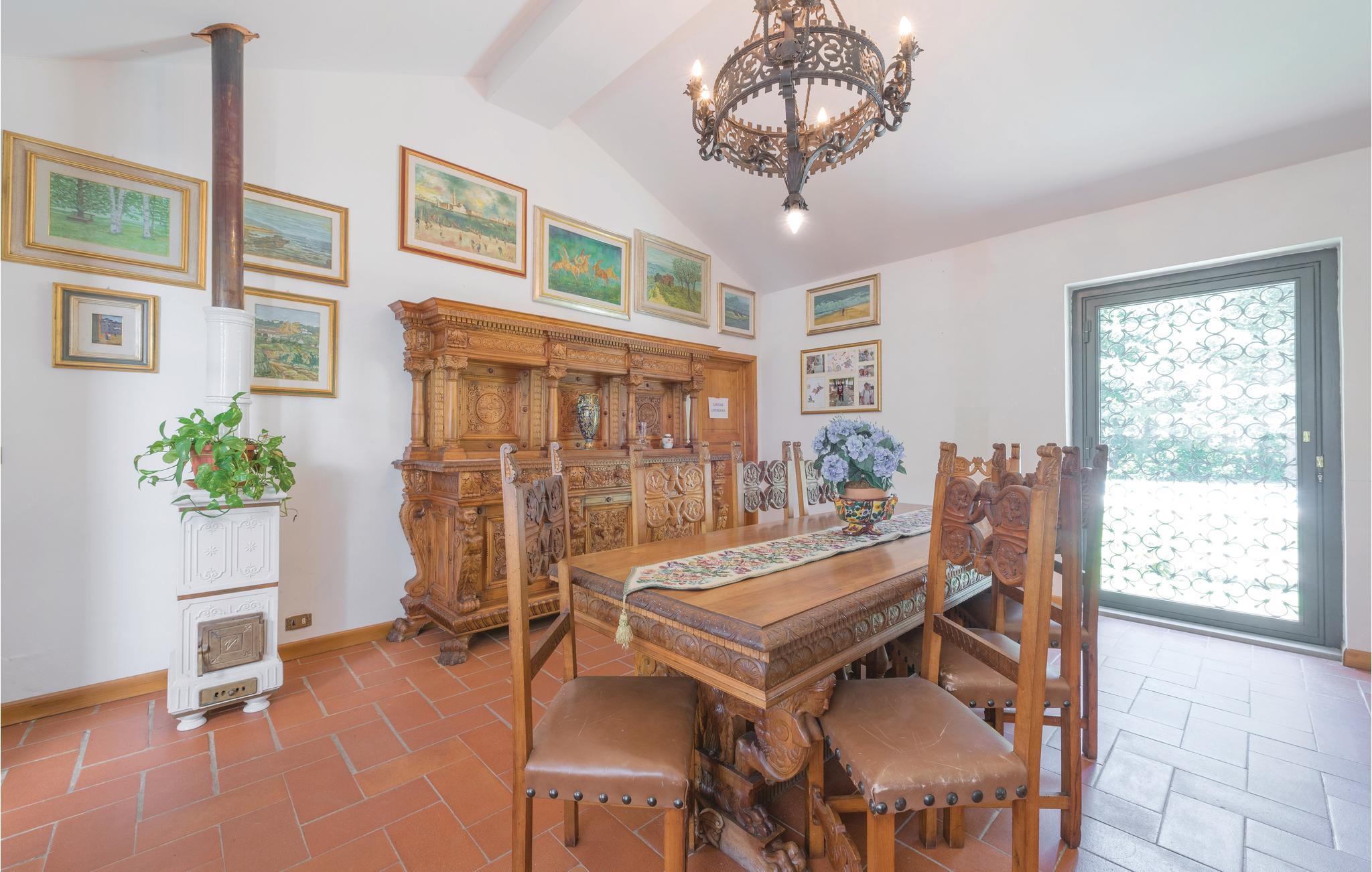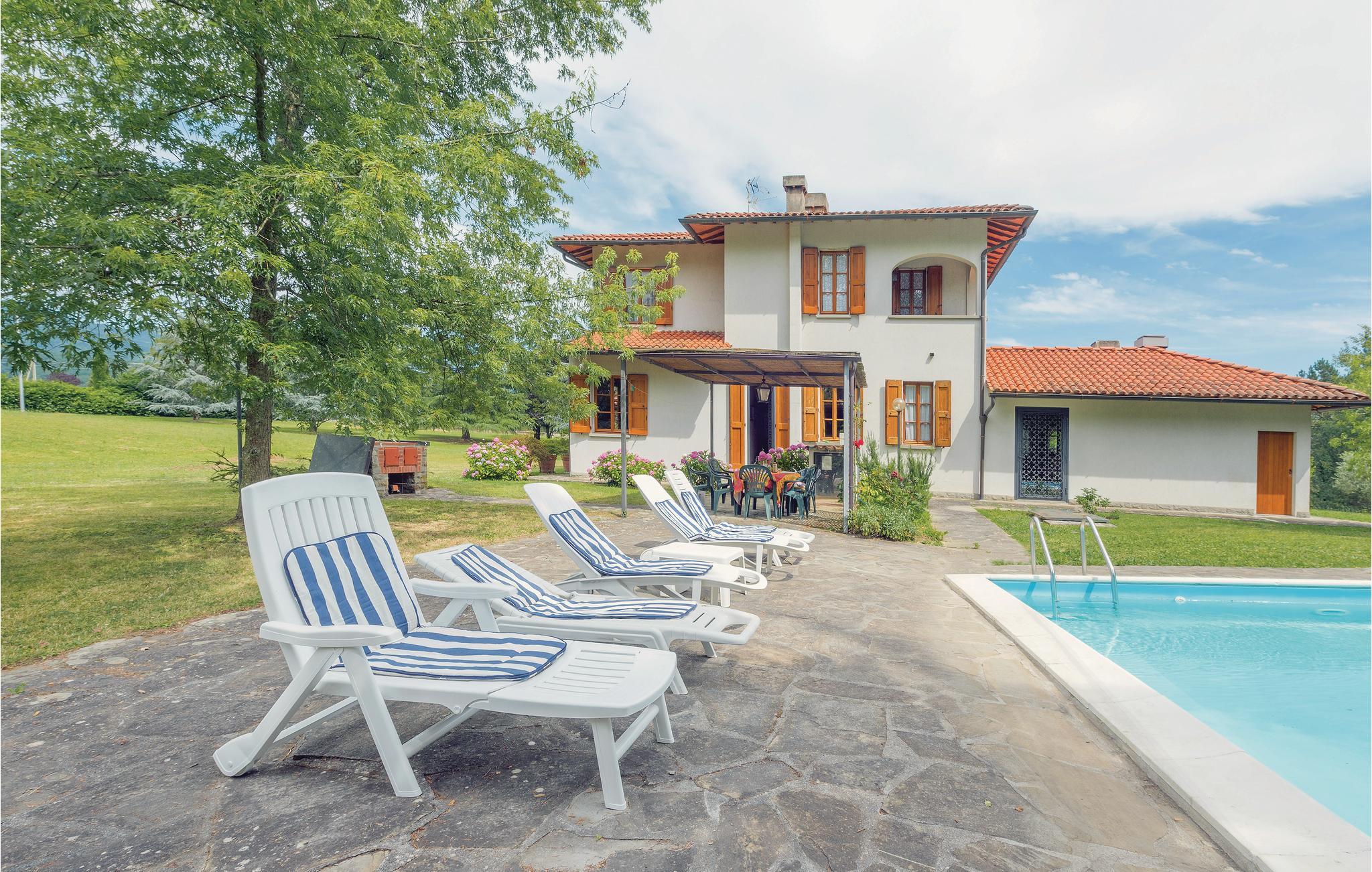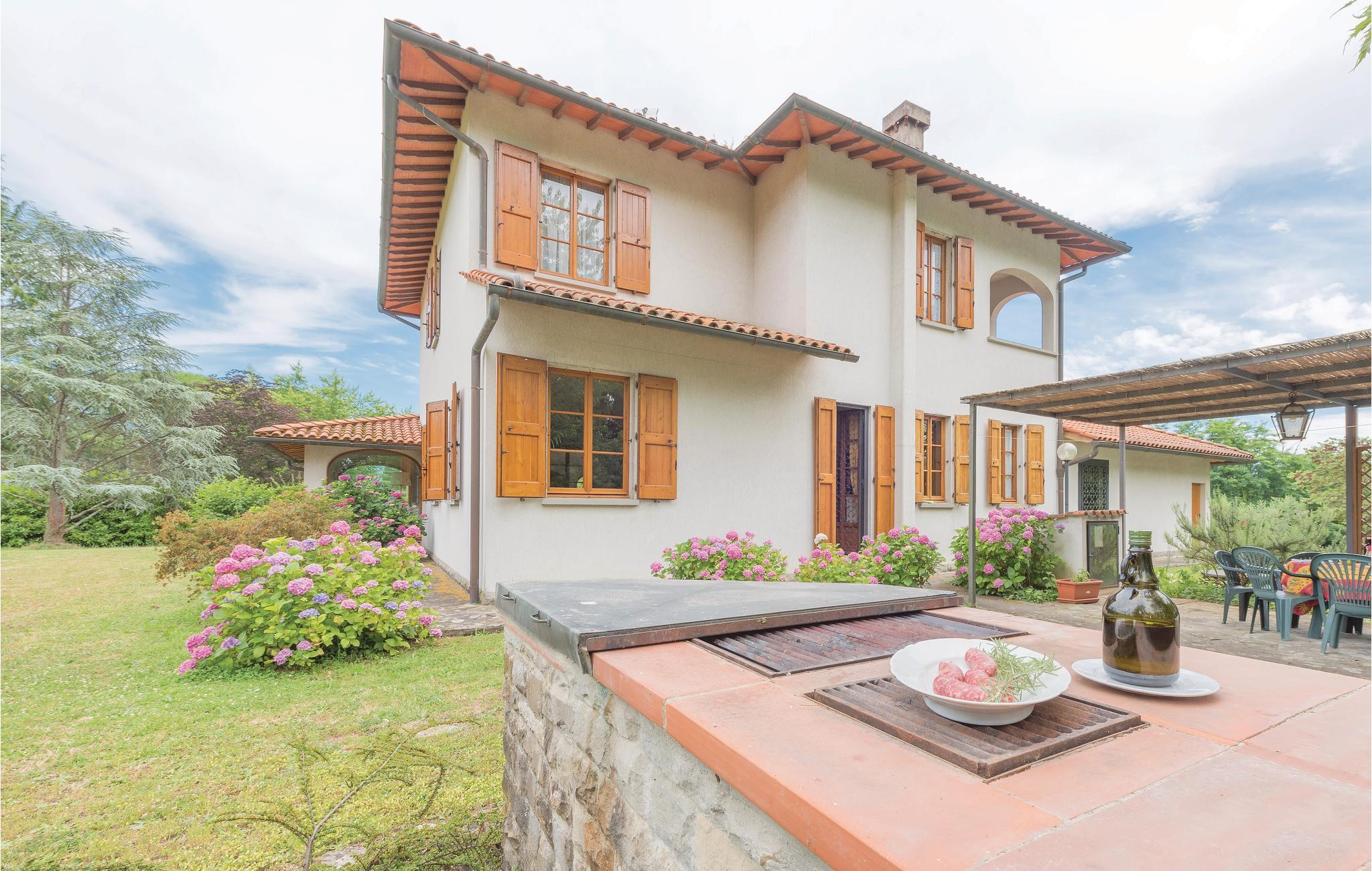 Denne smukke villa med stor have og privat pool stammer fra 1970'erne og ligger i det grønne landskab i Mugello, nær den smukke landsby Vicchio (ca. 5 km - butikker af enhver art). Parken omkring huset er omkring 3 hektar stort og er komplet indhegnet. Her kan børnene lege uforstyrret, mens I slapper af ved den smukke pool på solsengene. Der er et badeværelse og et påklædningsværelse ved siden af ??poolen.