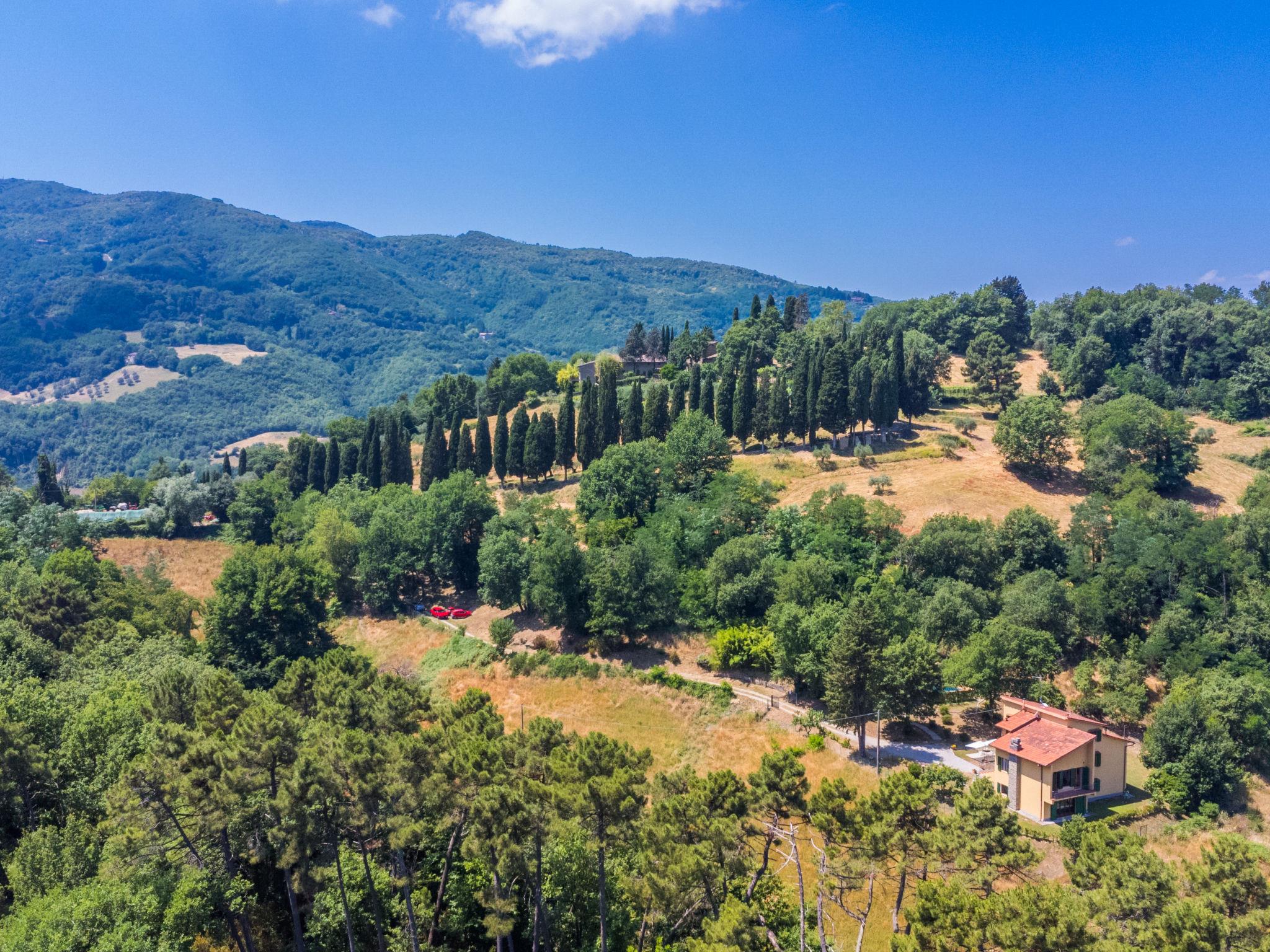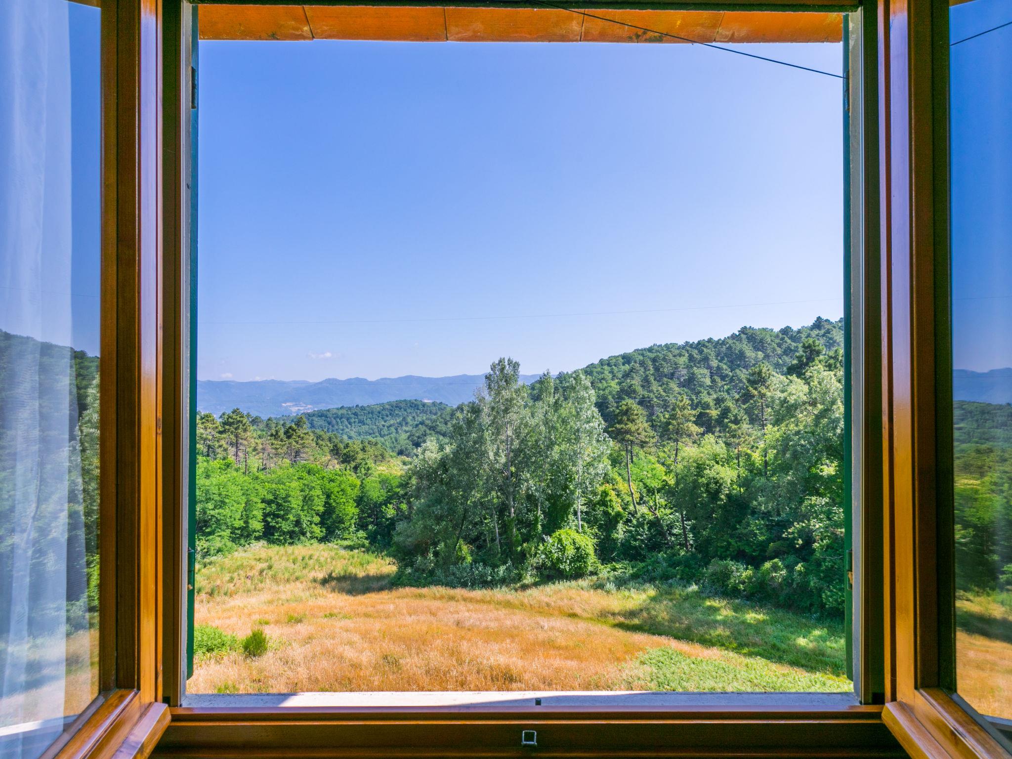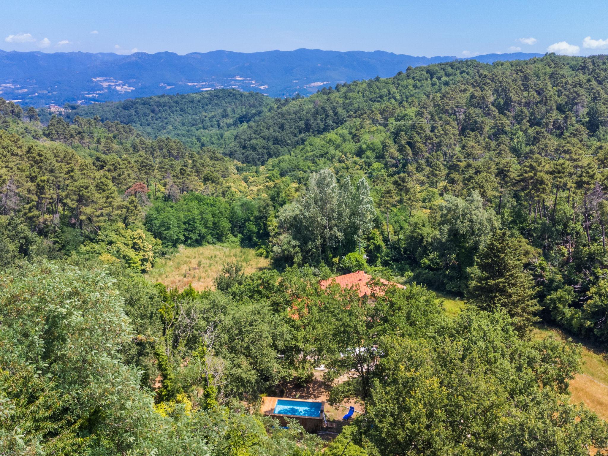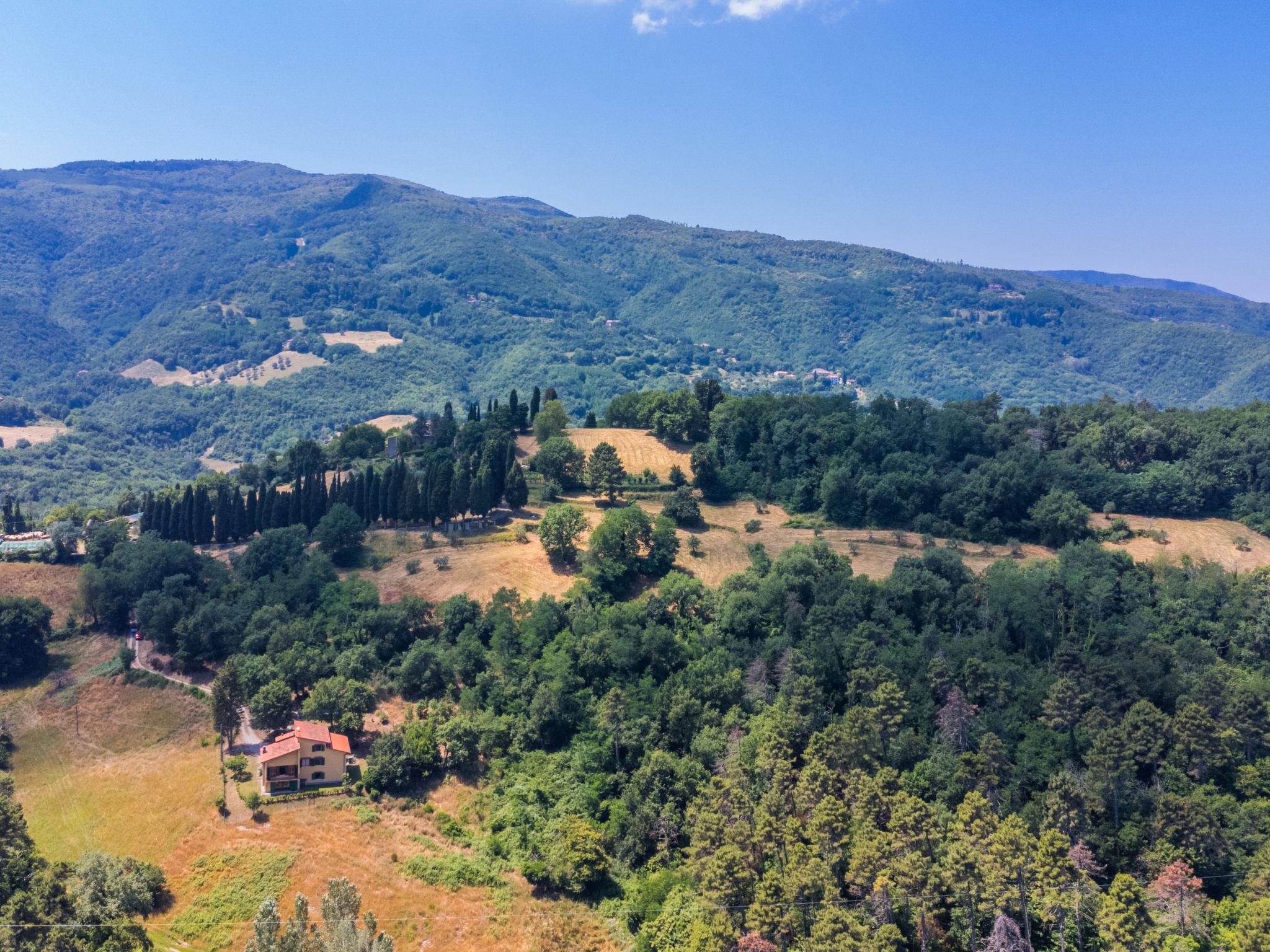 Country house "Giorgina", 200 m a.s.l., renovated in 2024. 5.6 km from the centre of Vicchio, 40 km from the centre of Firenze, in a secluded, quiet, sunny position on top of a hill, 25 km from the lake, in the countryside. Private: garden 2'500 m2 (fenced), swimming pool (above ground) (6 x 4 m, depth 140 cm, seasonal availability: 02.May. - 26.Sep.). Outdoor shower, garden furniture, barbecue, pool maintenance by the owner/gardener. In the house: central heating system, air conditioning. Motor access to the house (800 m via unmade road). Parking on the premises. Shop 6 km, supermarket 6 km, bus stop 6 km, railway station 6 km, sandy beach "Versilia" 130 km, bathing lake "Bilancino" 25 km. Golf course (18 hole) 20 km. Nearby attractions: Autodromo del Mugello 16 km, Scarperia e San Piero 18 km, Barberino Designer Outlet 28 km, Fiesole 30 km.