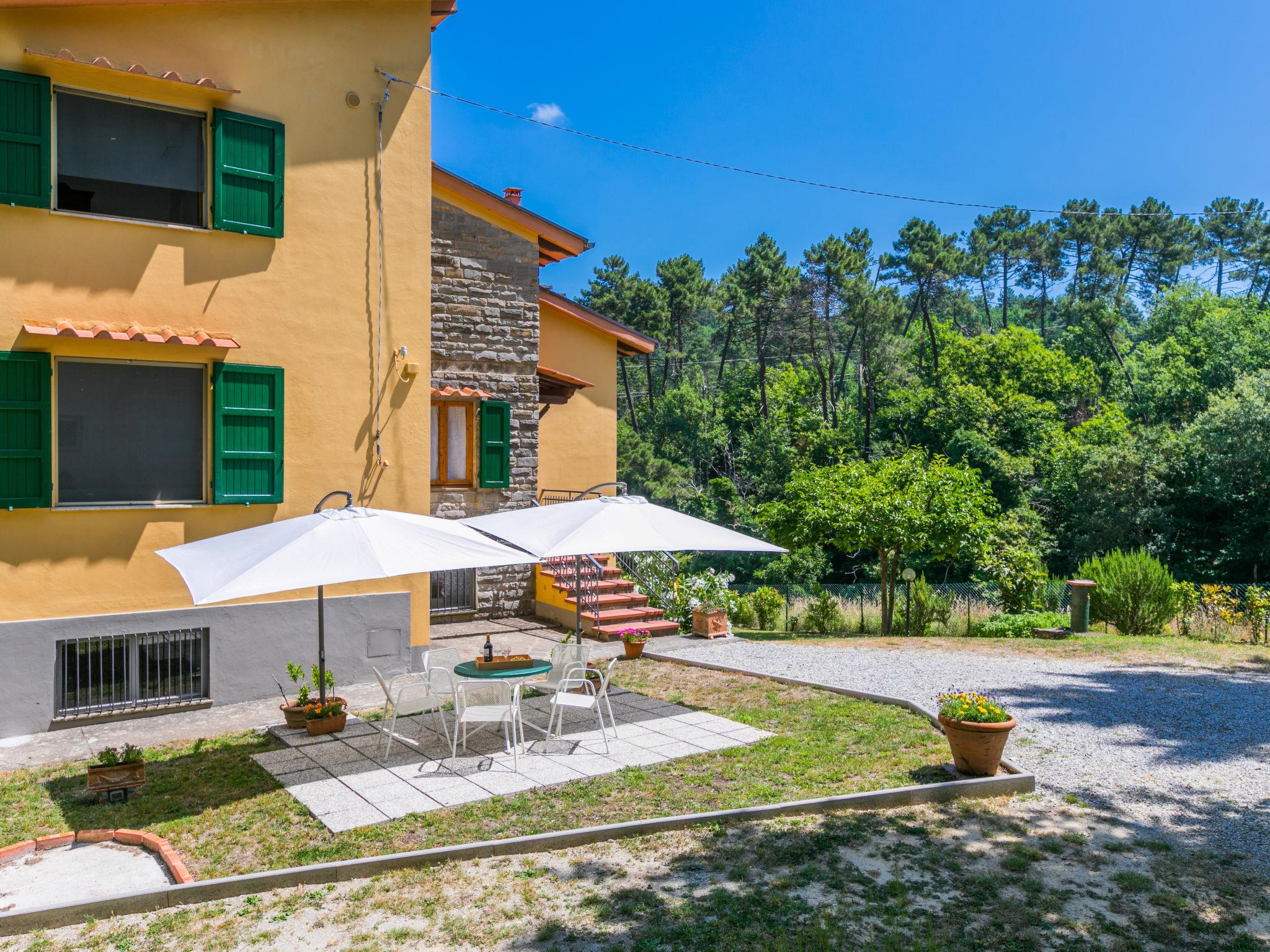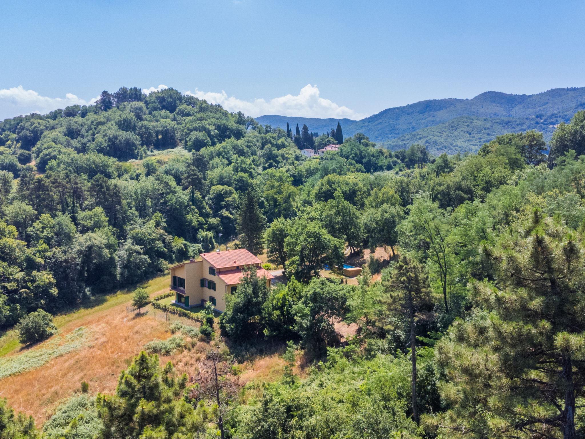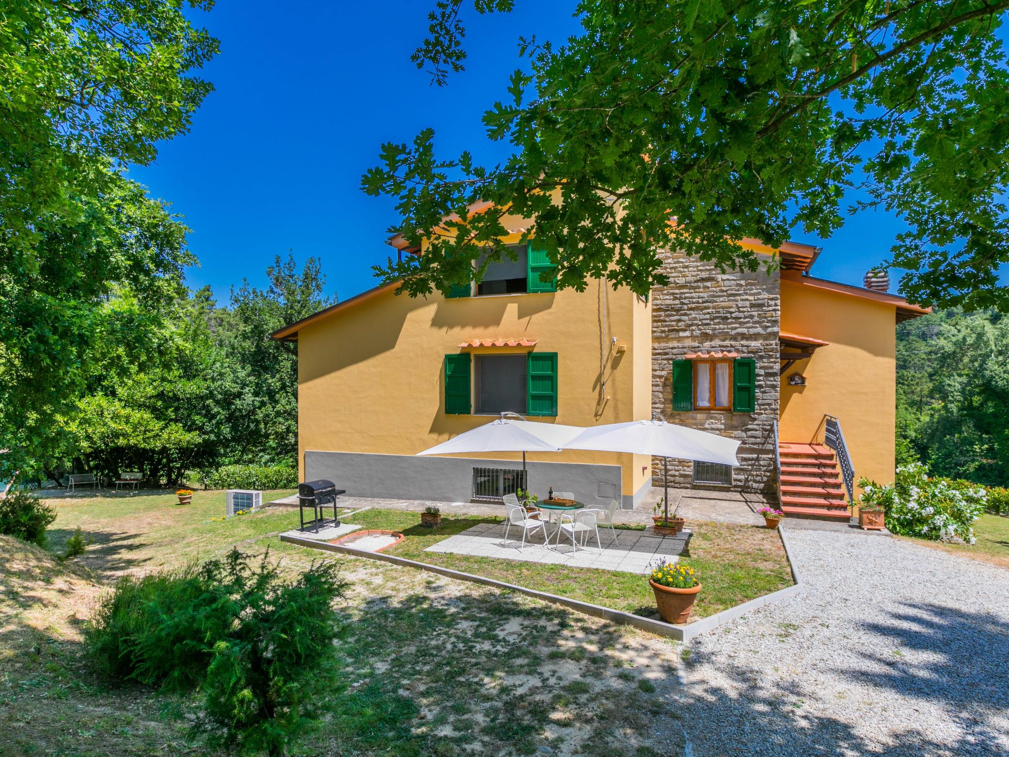 Country house "Giorgina", 200 m a.s.l., renovated in 2024. 5.6 km from the centre of Vicchio, 40 km from the centre of Firenze, in a secluded, quiet, sunny position on top of a hill, 25 km from the lake, in the countryside. Private: garden 2'500 m2 (fenced), swimming pool (above ground) (6 x 4 m, depth 140 cm, seasonal availability: 02.May. - 26.Sep.). Outdoor shower, garden furniture, barbecue, pool maintenance by the owner/gardener. In the house: central heating system, air conditioning. Motor access to the house (800 m via unmade road). Parking on the premises. Shop 6 km, supermarket 6 km, bus stop 6 km, railway station 6 km, sandy beach "Versilia" 130 km, bathing lake "Bilancino" 25 km. Golf course (18 hole) 20 km. Nearby attractions: Autodromo del Mugello 16 km, Scarperia e San Piero 18 km, Barberino Designer Outlet 28 km, Fiesole 30 km.
