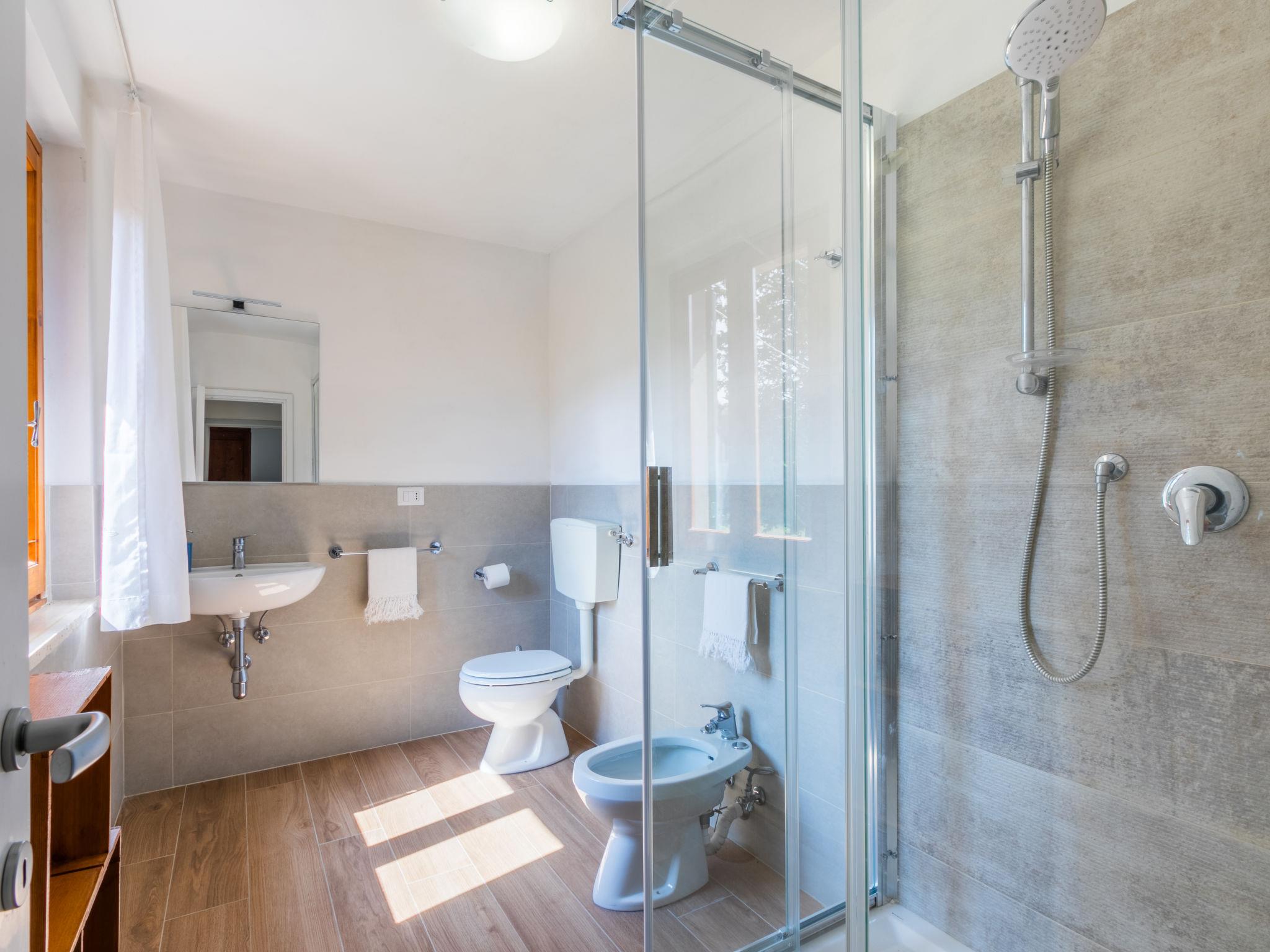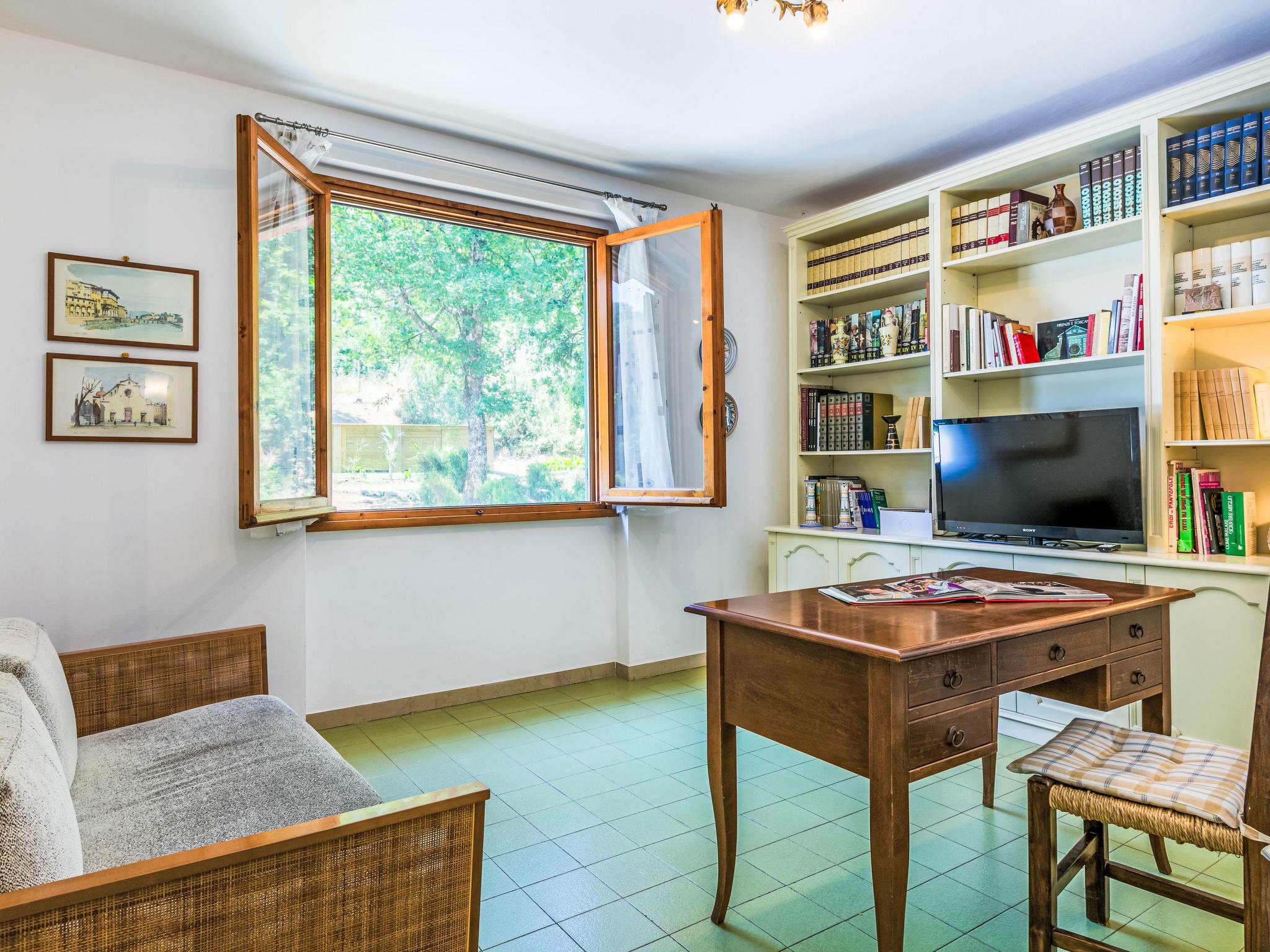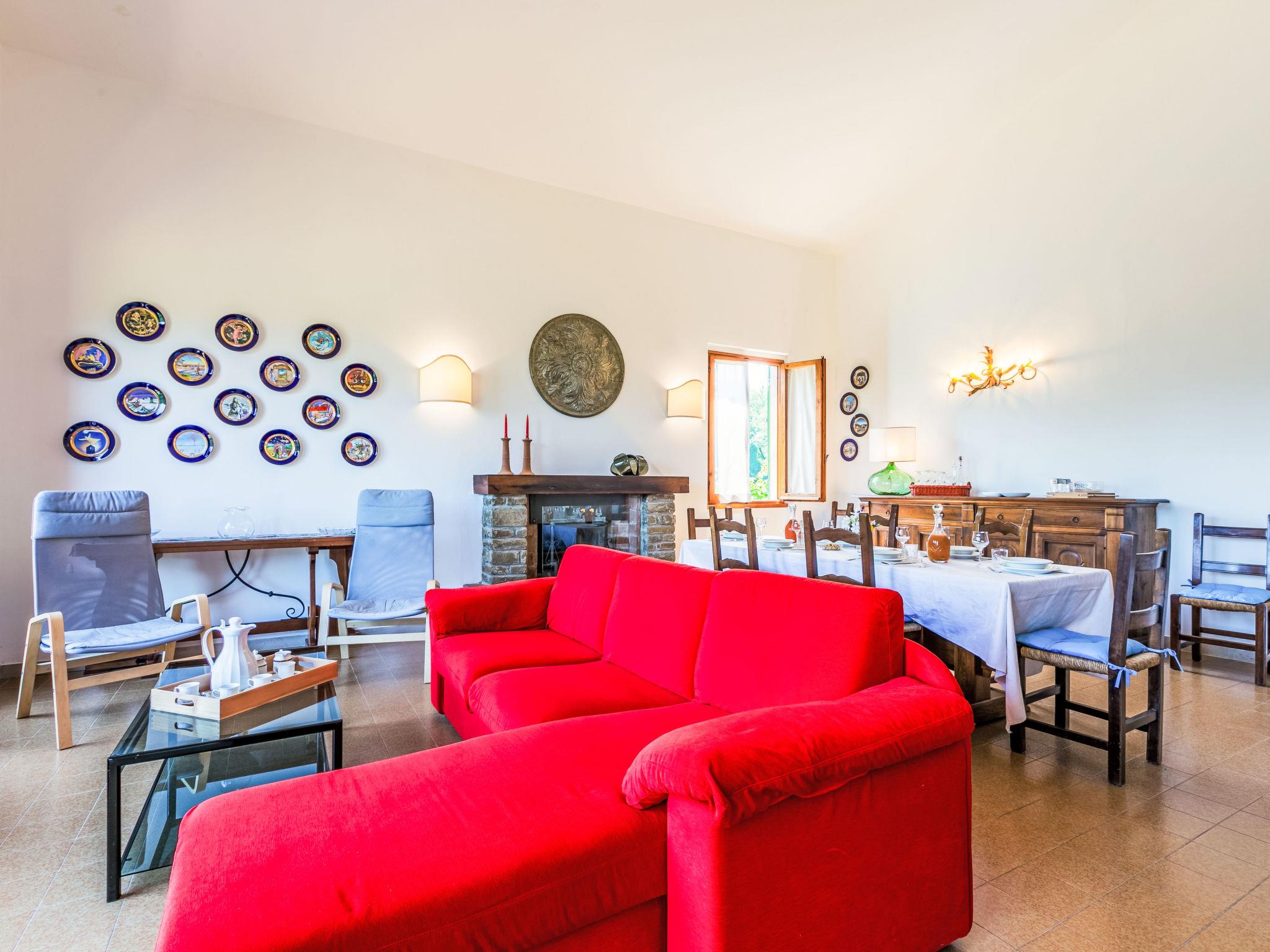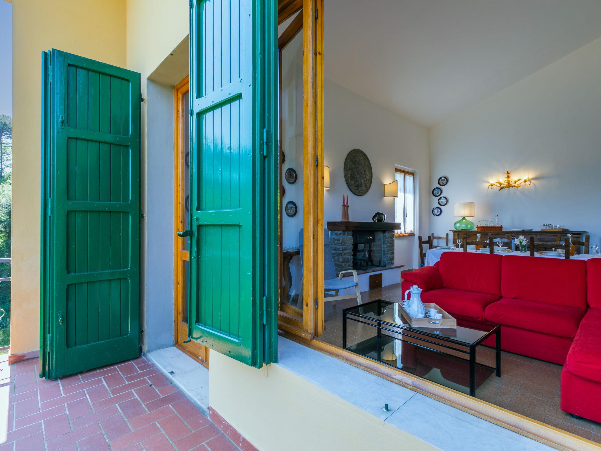 Country house "Giorgina", 200 m a.s.l., renovated in 2024. 5.6 km from the centre of Vicchio, 40 km from the centre of Firenze, in a secluded, quiet, sunny position on top of a hill, 25 km from the lake, in the countryside. Private: garden 2'500 m2 (fenced), swimming pool (above ground) (6 x 4 m, depth 140 cm, seasonal availability: 02.May. - 26.Sep.). Outdoor shower, garden furniture, barbecue, pool maintenance by the owner/gardener. In the house: central heating system, air conditioning. Motor access to the house (800 m via unmade road). Parking on the premises. Shop 6 km, supermarket 6 km, bus stop 6 km, railway station 6 km, sandy beach "Versilia" 130 km, bathing lake "Bilancino" 25 km. Golf course (18 hole) 20 km. Nearby attractions: Autodromo del Mugello 16 km, Scarperia e San Piero 18 km, Barberino Designer Outlet 28 km, Fiesole 30 km.