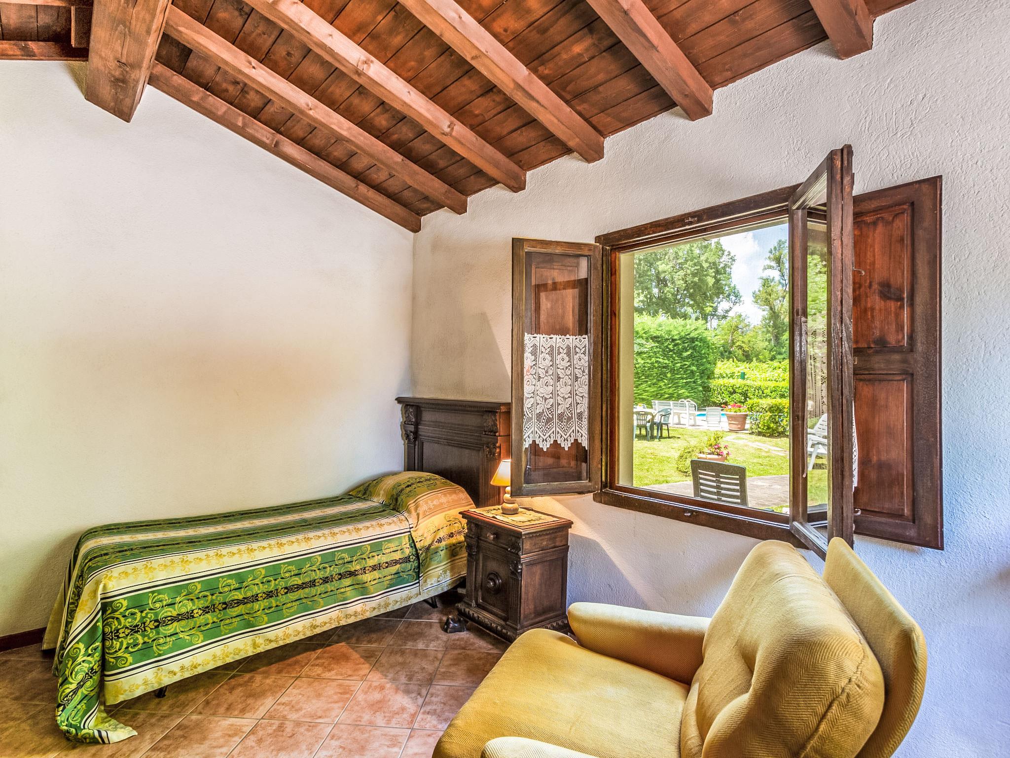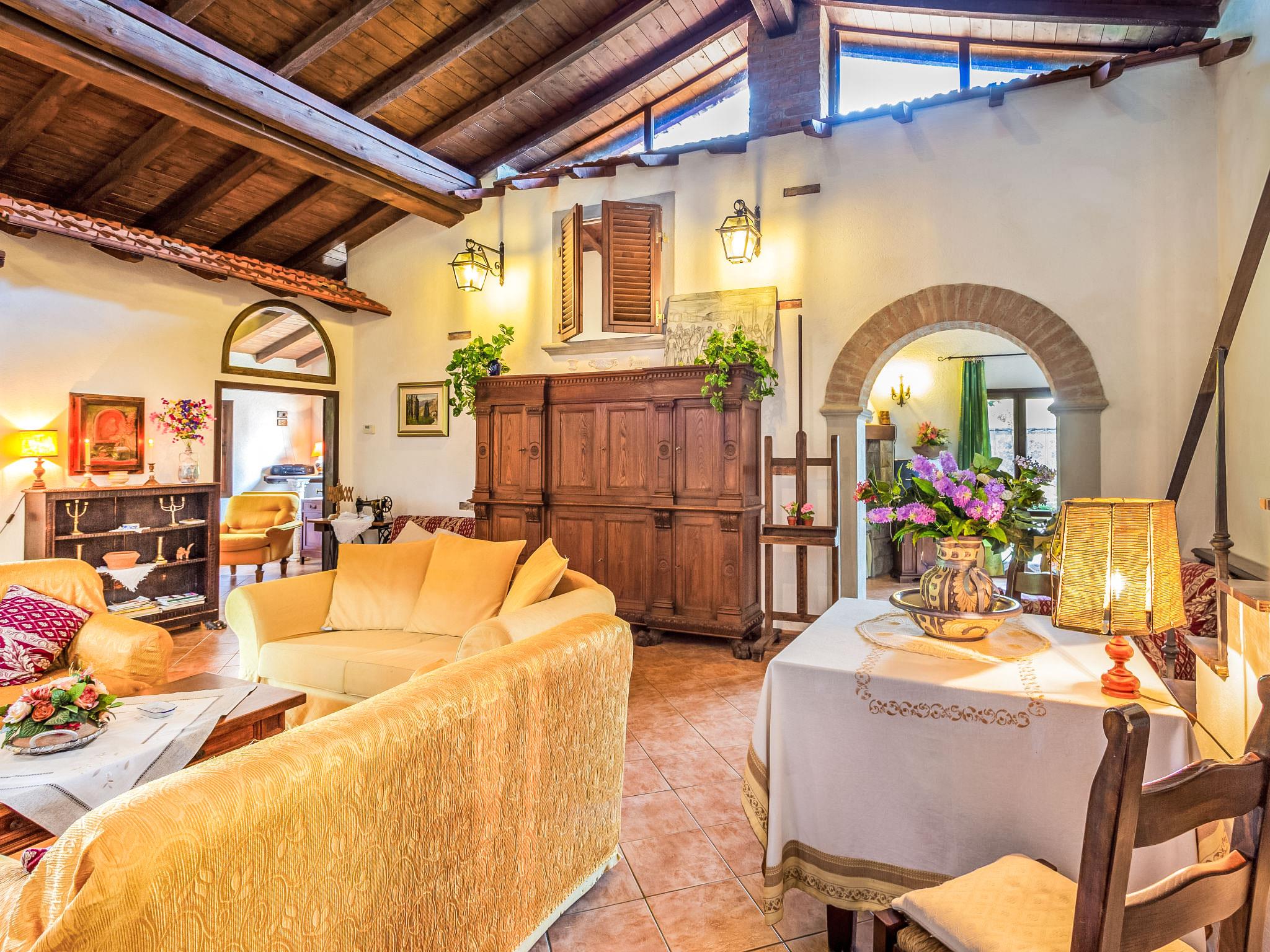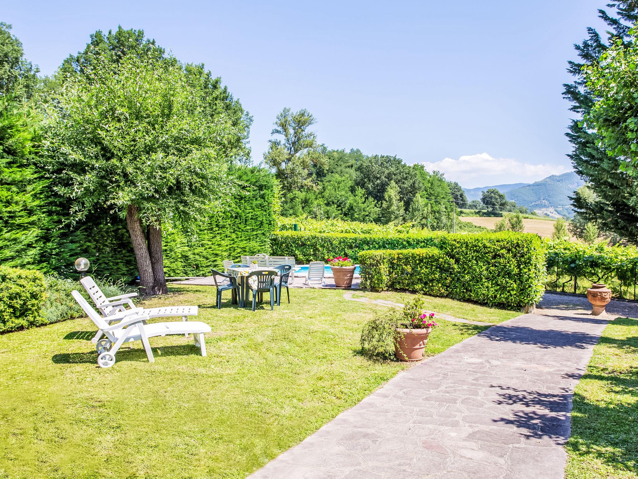 Completely restored country house, located on the Mugello hills, north of Florence. Country house "Il Casale". 4 km from the centre of Vicchio, 35 km from the centre of Firenze, in a quiet position, 25 km from the lake. Private: garden 1'550 m2 (fenced), swimming pool (above ground) (8 x 4 m, depth 150 cm, seasonal availability: 03.Jun. - 23.Sep.). Outdoor shower, garden furniture, barbecue. In the house: central heating system, heating to be paid on the spot, heating available only from 01.Nov. - 04.Apr.. Motor access to the house (50 m via unmade road). Parking on the premises. Shop 4 km, grocery 4 km, railway station "Vicchio del Mugello" 4 km. Tennis 4 km. The apartment was tastefully restored and furnished combining rustic and antique furniture.
