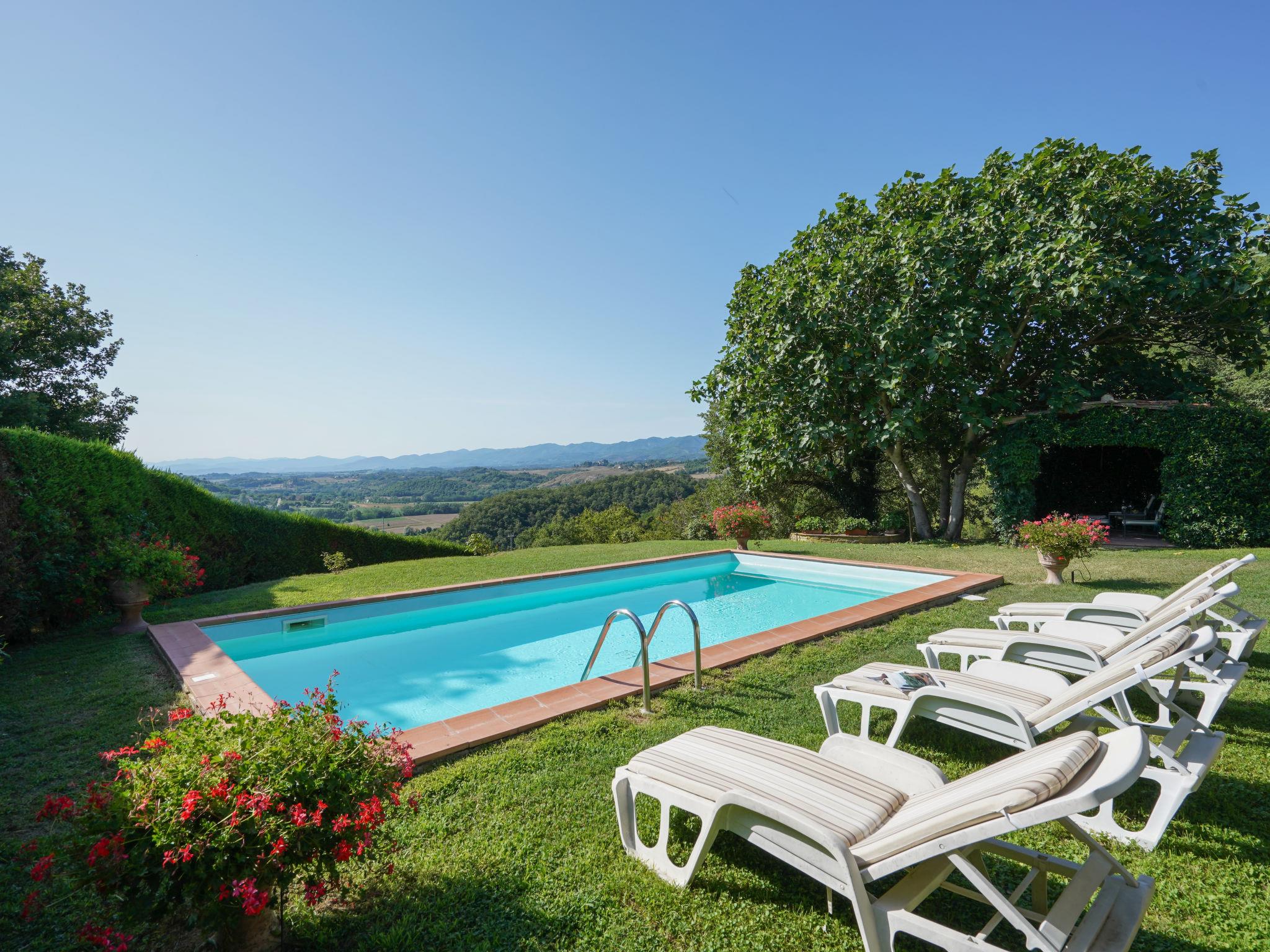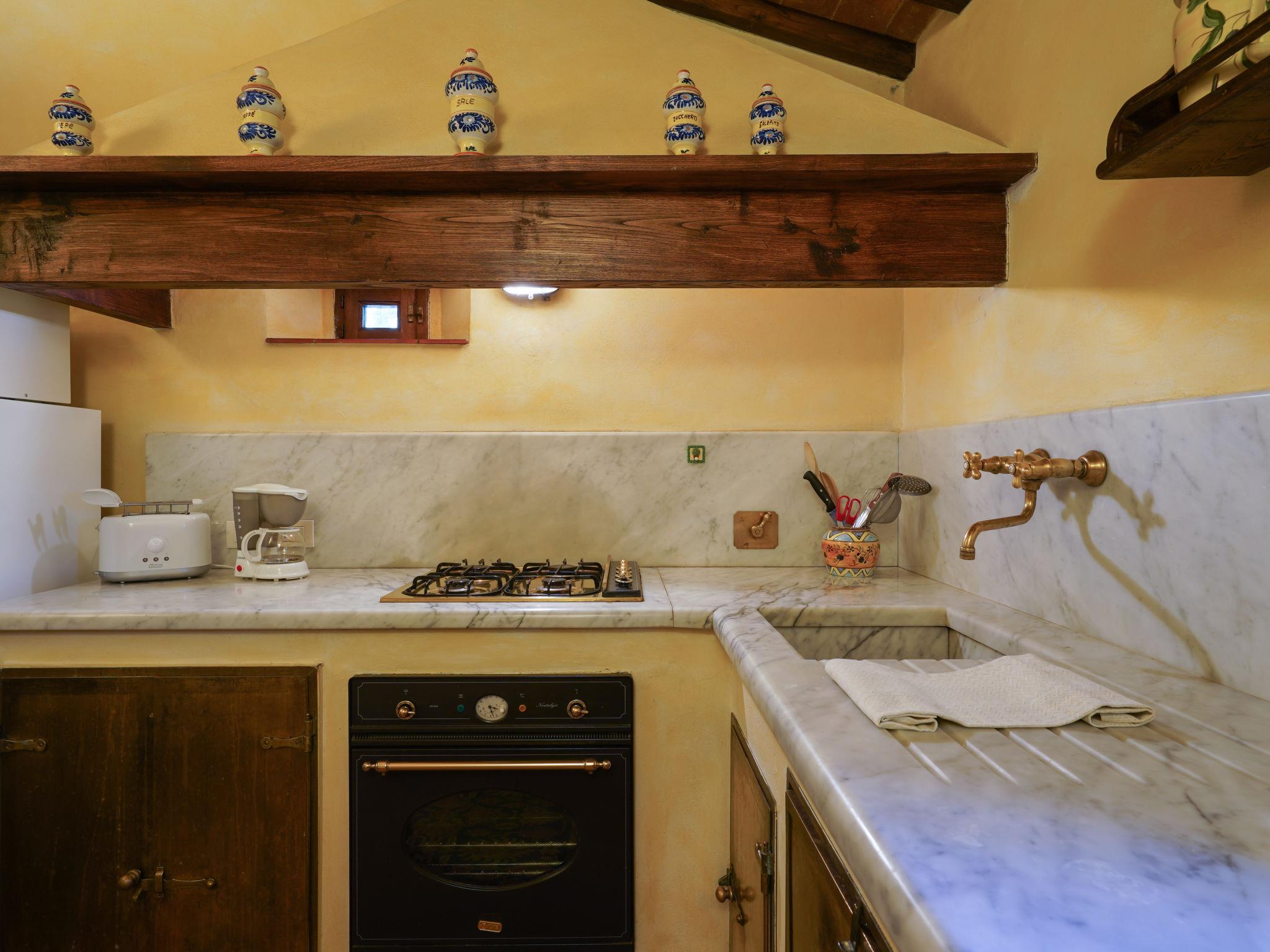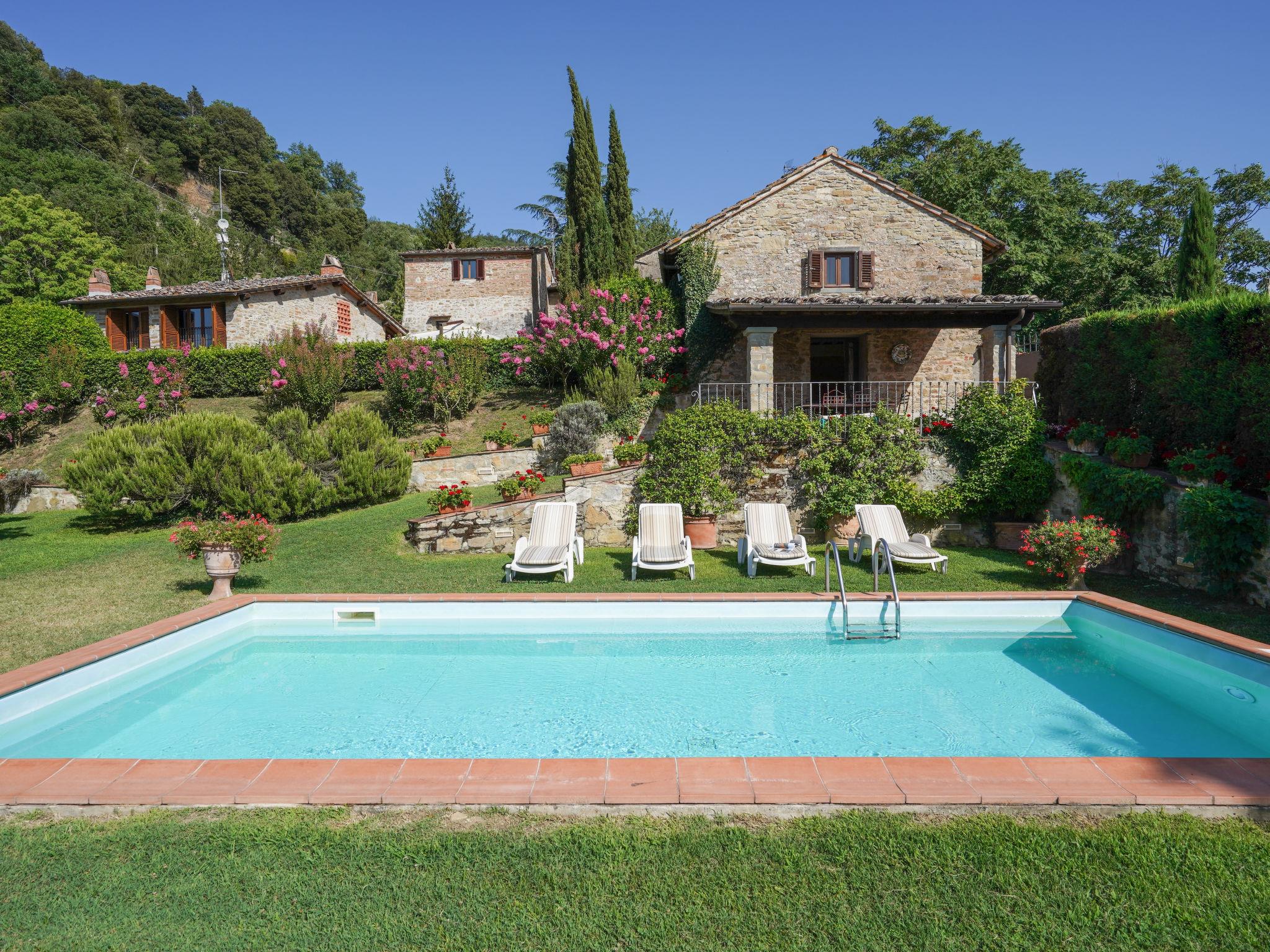 Delightful stone house, on three levels, part of an ancient rural complex that dates back to the late Middle Ages. Country house "La Vista", 200 m a.s.l., detached. 3.5 km from the centre of Vicchio, 37 km from the centre of Firenze, in a sunny position, 23 km from the lake, in the countryside. Private: garden 1'500 m2 (fenced), swimming pool (9 x 4 m, depth 140 cm, seasonal availability: 01.May. - 30.Sep.). Outdoor shower, garden furniture, barbecue, pool maintenance by the owner/gardener. In the house: central heating system, washing machine, heating to be paid on the spot, heating available only from 01.Nov. - 04.Apr.. Motor access to the house (500 m via unmade road). Parking on the premises. E-charging station. Shop 3.5 km, grocery 3.5 km, supermarket 3.5 km, restaurant 3.5 km, railway station "Vicchio" 3.5 km, bathing lake "Bilancino" 23 km. Golf course (18 hole) 20 km, riding stable 3.5 km. Nearby attractions: Circuito del Mugello 21 km, Scarperia 27 km, Barberino Designer Outlet 31 km, Fiesole 34 km, Vallombrosa 39 km. Please note: car recommended. One side of the property and a part of the garden border "La Terrazza / our ref. IT5489.985.1", about 30 m away. and the separation consists simply of a laurel hedge. Both houses have an independent entrance, private outdoor spaces and swimming pool.