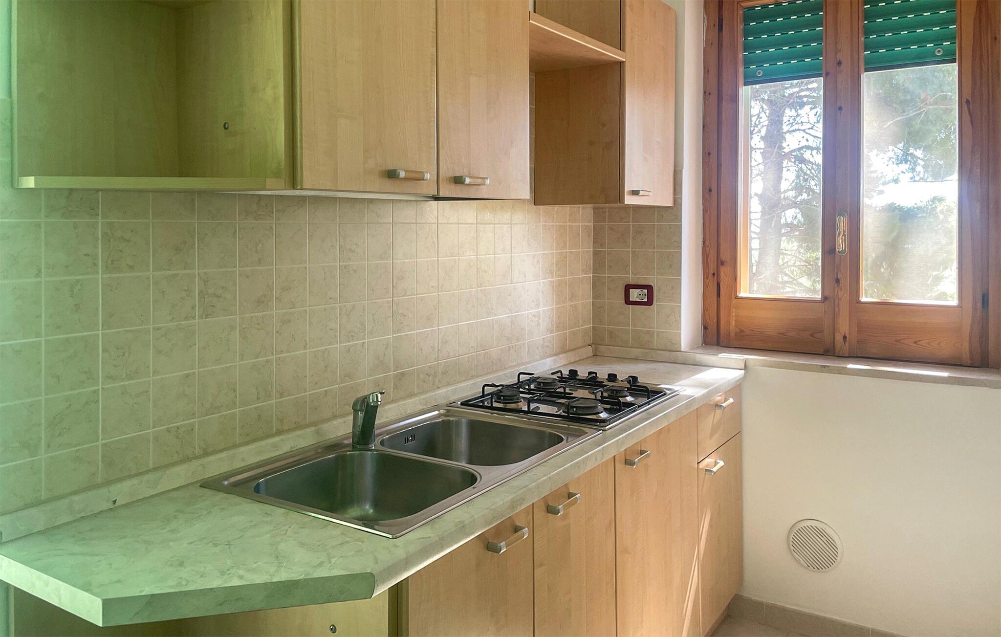 Velkommen til denne fine lejlighed i Vieste, hvor I får alt, hvad I behøver for en skøn ferie krydret med mange skønne udflugter. Lejligheden er kompakt indrettet med gode møbler og de faciliteter, I behøver for at kunne slappe af efter dagens muntre leg. Køkkenet er veludstyret, så tag jer blot god tid til at lave lidt lækker mad, som kan nydes i den hyggelige stue med et godt glas vin til sent.