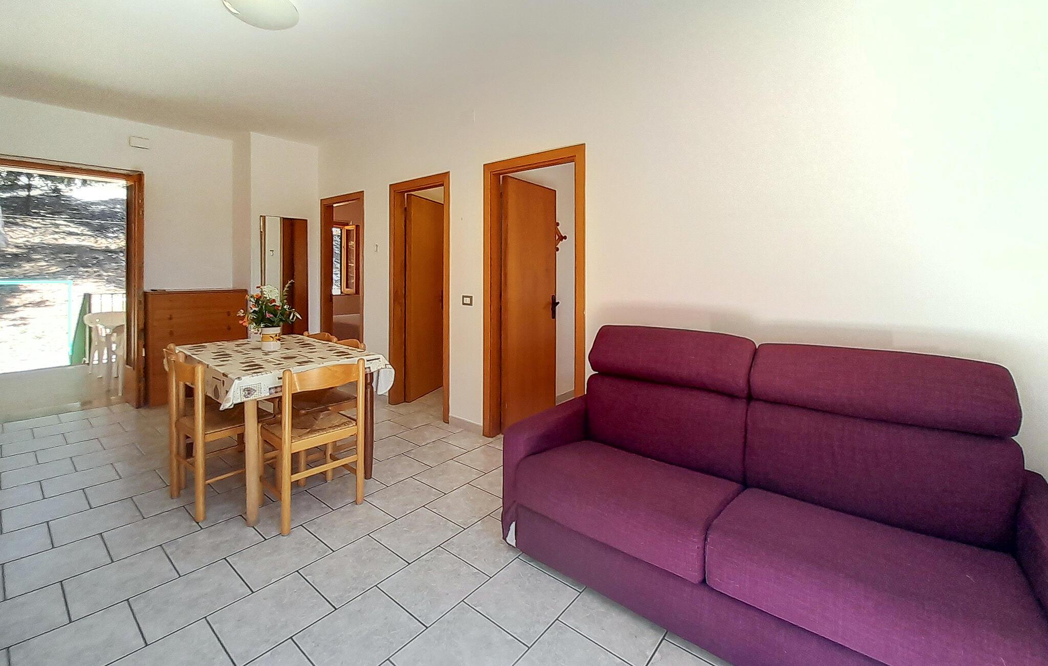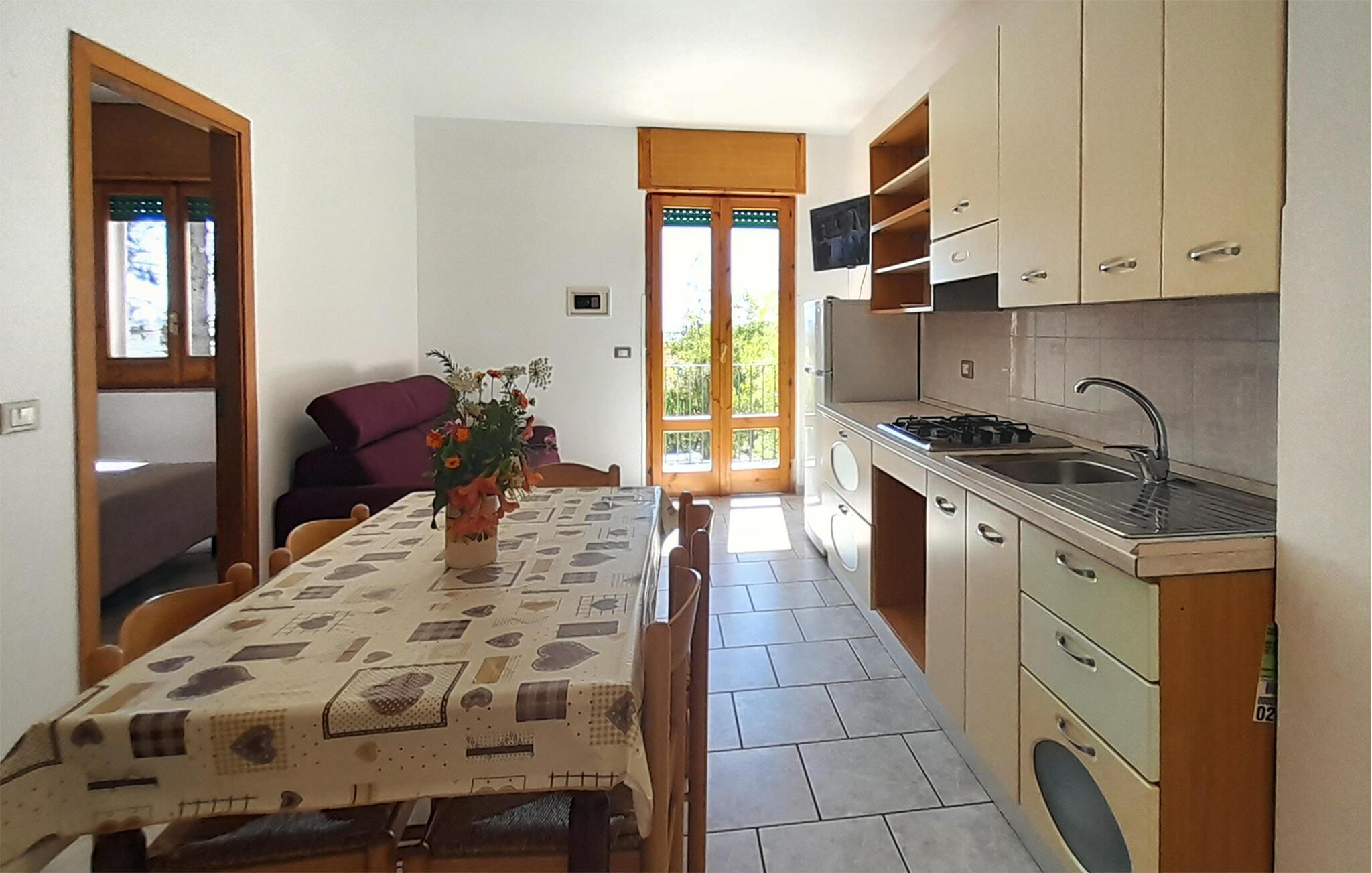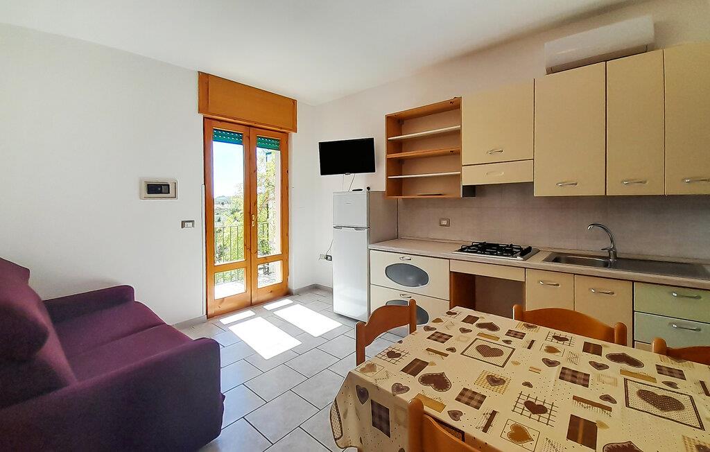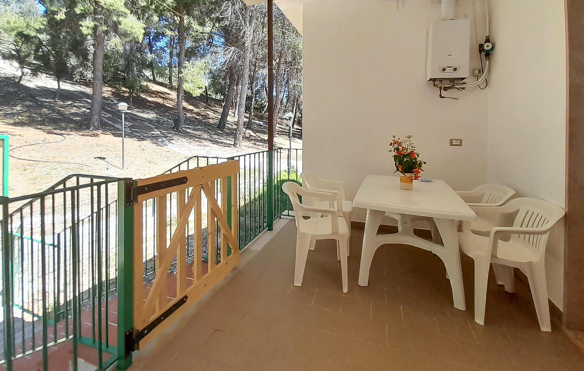 Velkommen til denne fine lejlighed i Vieste, hvor I får alt, hvad I behøver for en skøn ferie krydret med mange skønne udflugter. Lejligheden er kompakt indrettet med gode møbler og de faciliteter, I behøver for at kunne slappe af efter dagens muntre leg. Køkkenet er veludstyret, så tag jer blot god tid til at lave lidt lækker mad, som kan nydes i den hyggelige stue med et godt glas vin til sent.