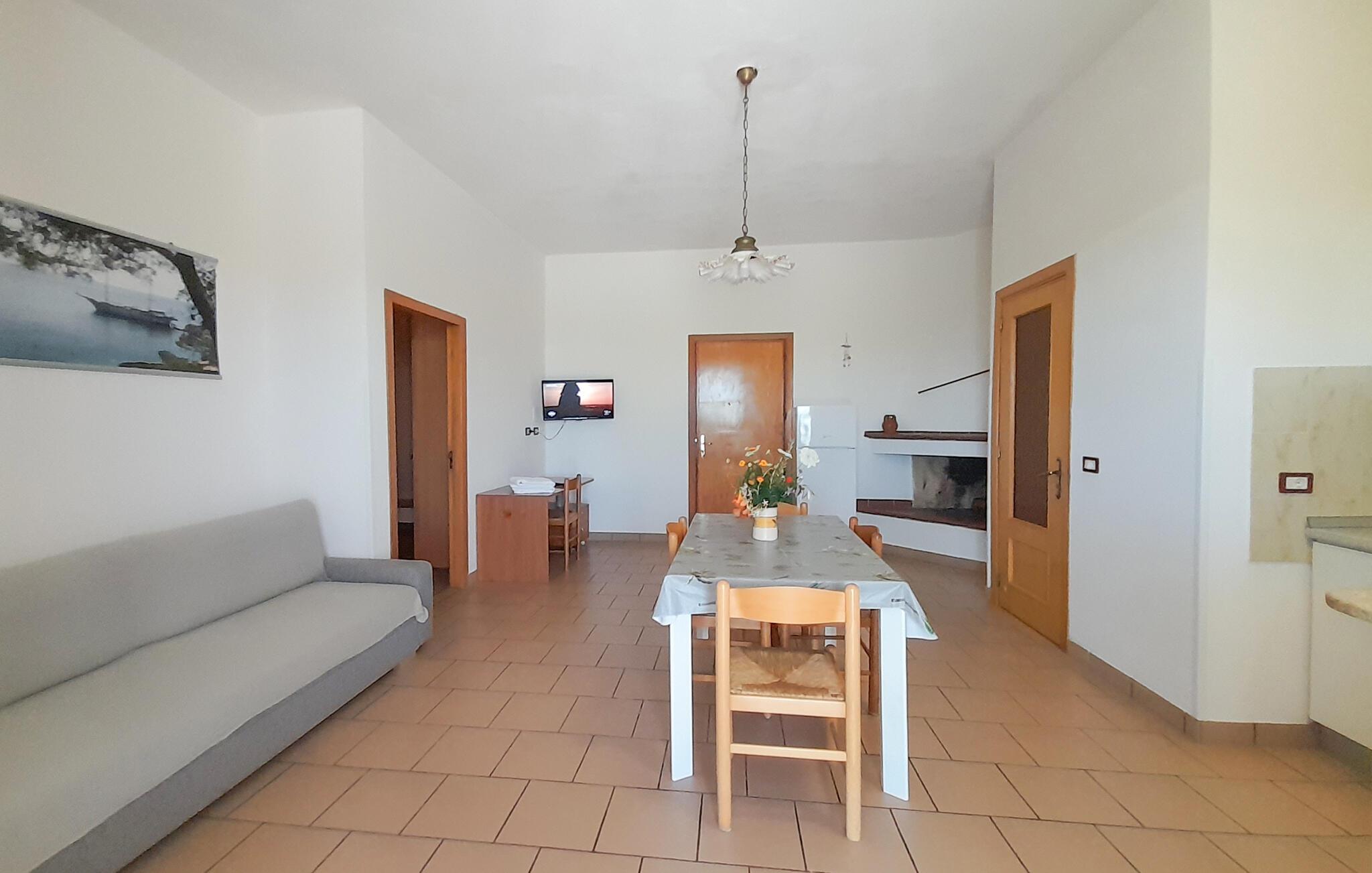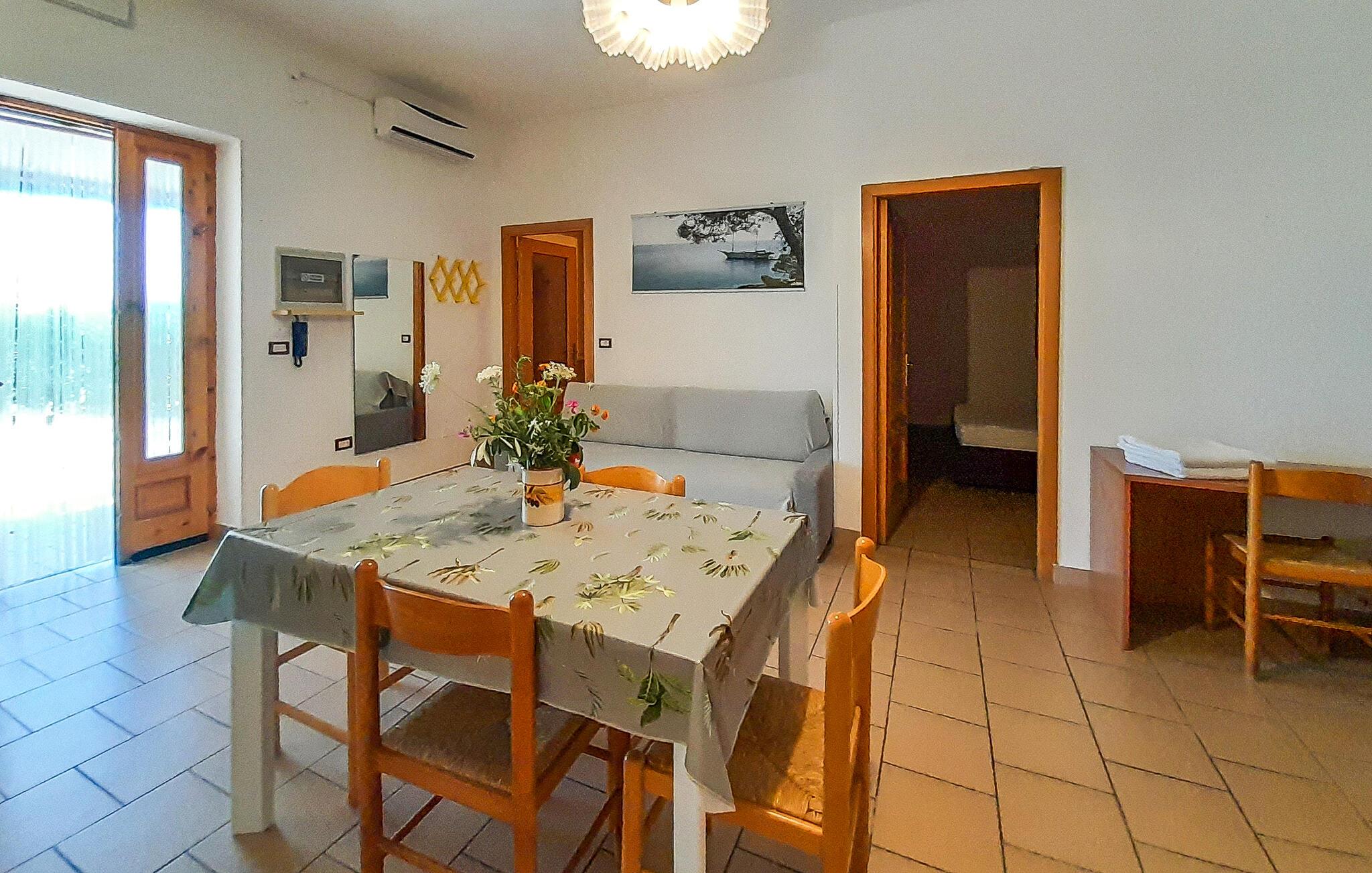 Velkommen til denne fine lejlighed i Vieste, hvor I får alt, hvad I behøver for en skøn ferie krydret med mange skønne udflugter. Lejligheden er kompakt indrettet med gode møbler og de faciliteter, I behøver for at kunne slappe af efter dagens muntre leg. Køkkenet er veludstyret, så tag jer blot god tid til at lave lidt lækker mad, som kan nydes i den hyggelige stue med et godt glas vin til sent.