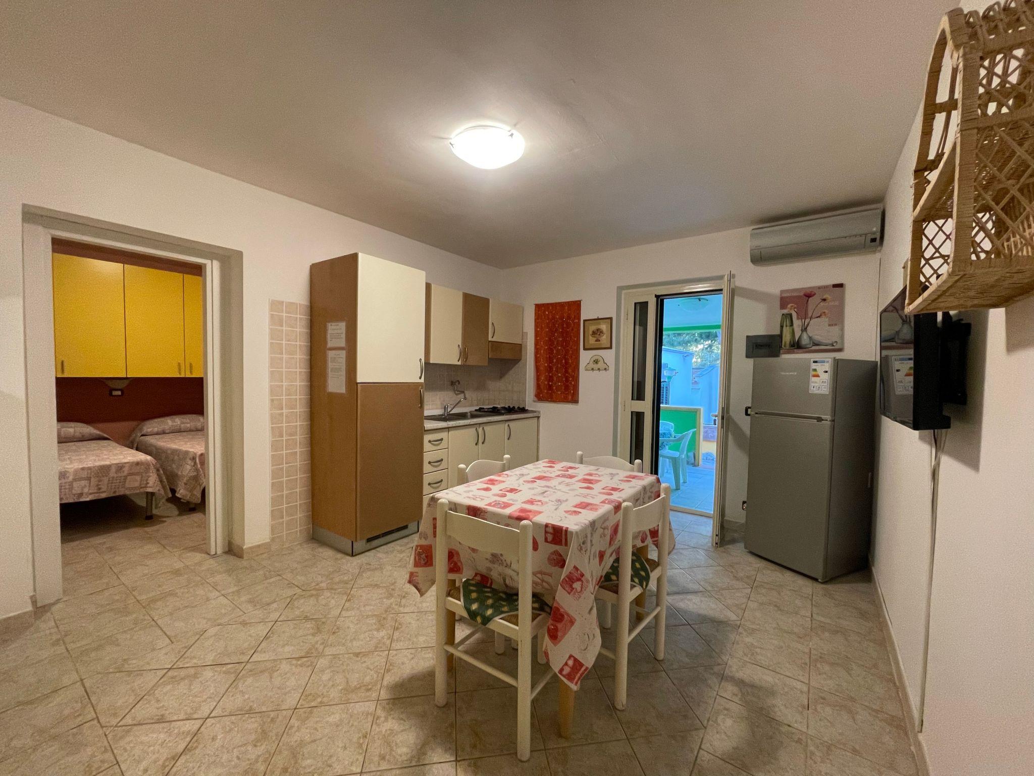 The three-room cottages at the Villa Carla Holiday Centre consist of two bedrooms, living room with kitchenette, bathroom, large covered veranda furnished with garden table and chairs, and barbecue. They can accommodate up to a maximum of 6 persons.