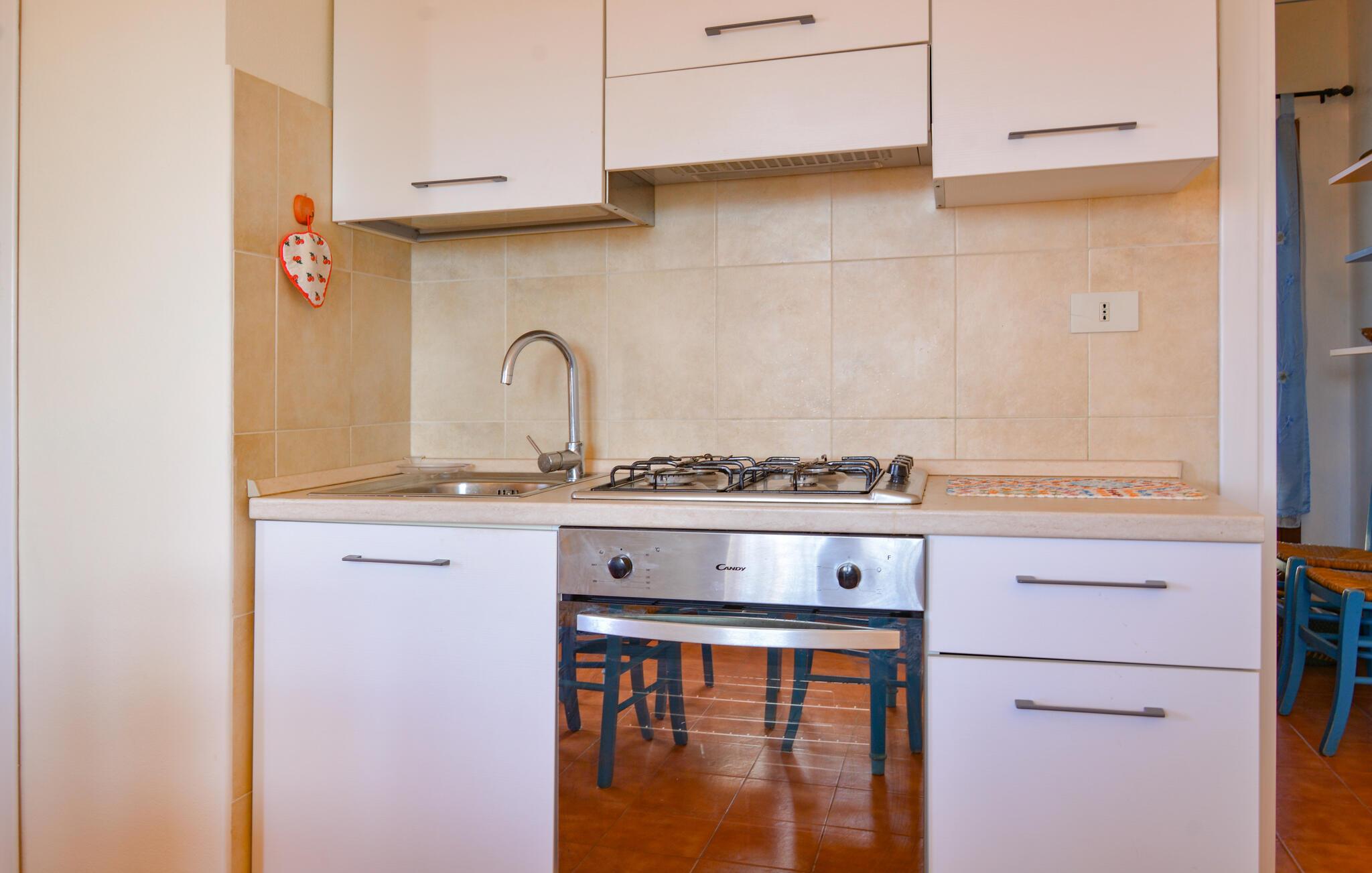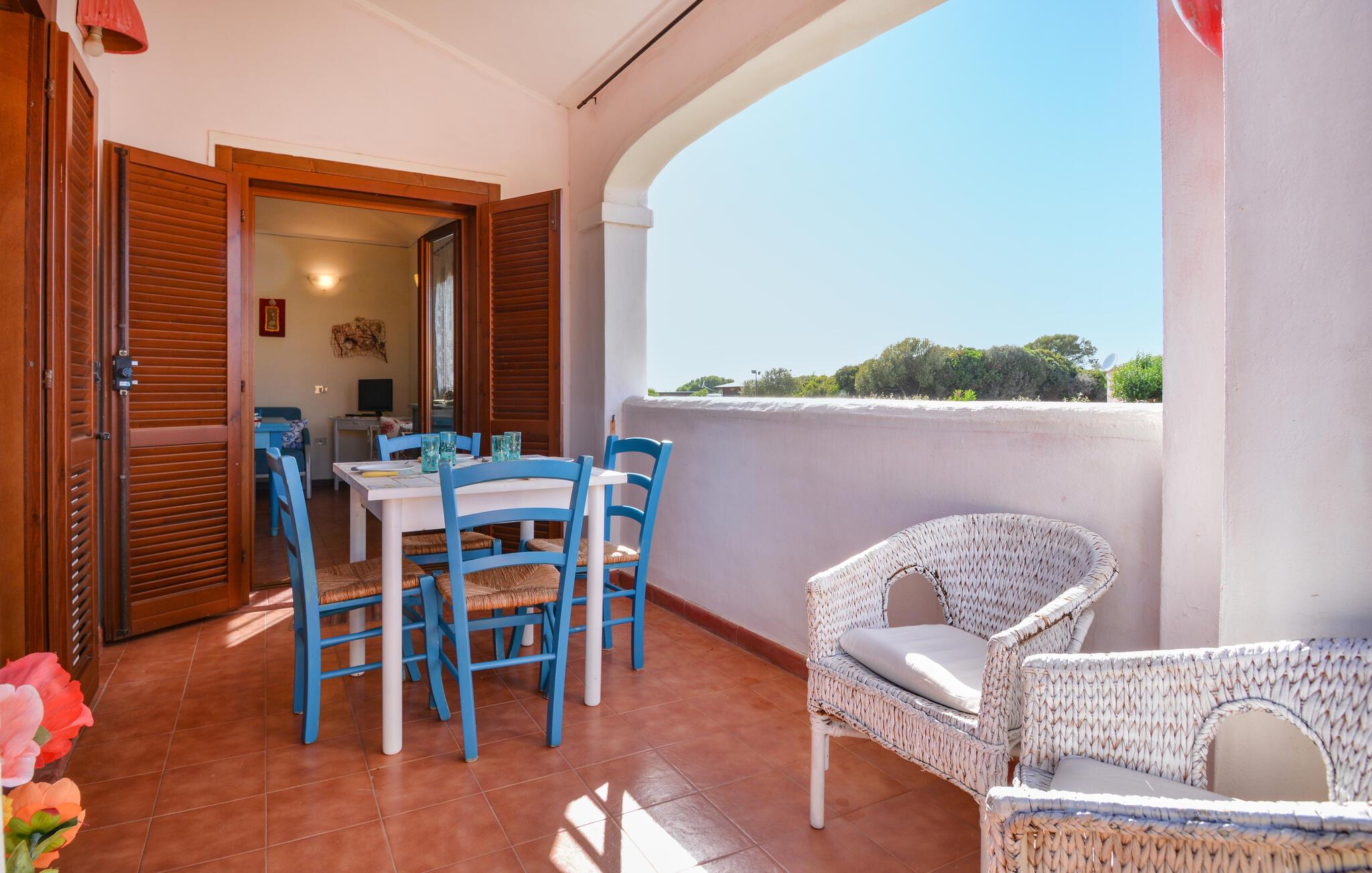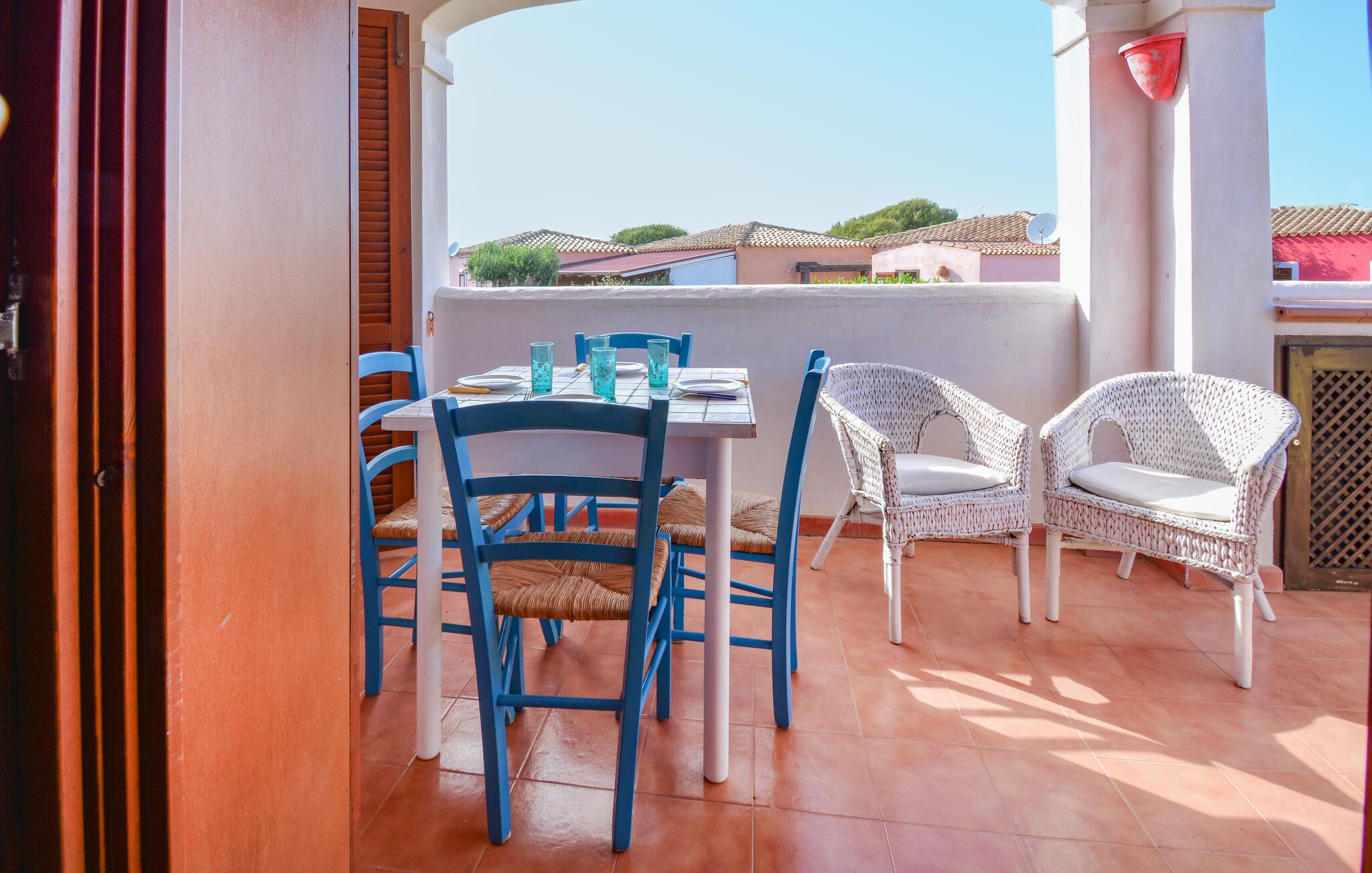Glæd jer til denne ferielejlighed, som er det ideelle udgangspunkt for jeres opdagelsesrejser. Jeres hyggelige ferielejlighed i Vignola Mare i det nordlige Sardinien inviterer med sin venlige atmosfære og farverige indretning til velvære. Start dagen på altanen, hvor I kan nyde morgenmaden med udsigt over de omkringliggende middelhavshuse og den klare himmel. Slap af i den lyse og åbne opholdsstue, som er udstyret med komfortable møbler og en spiseplads.