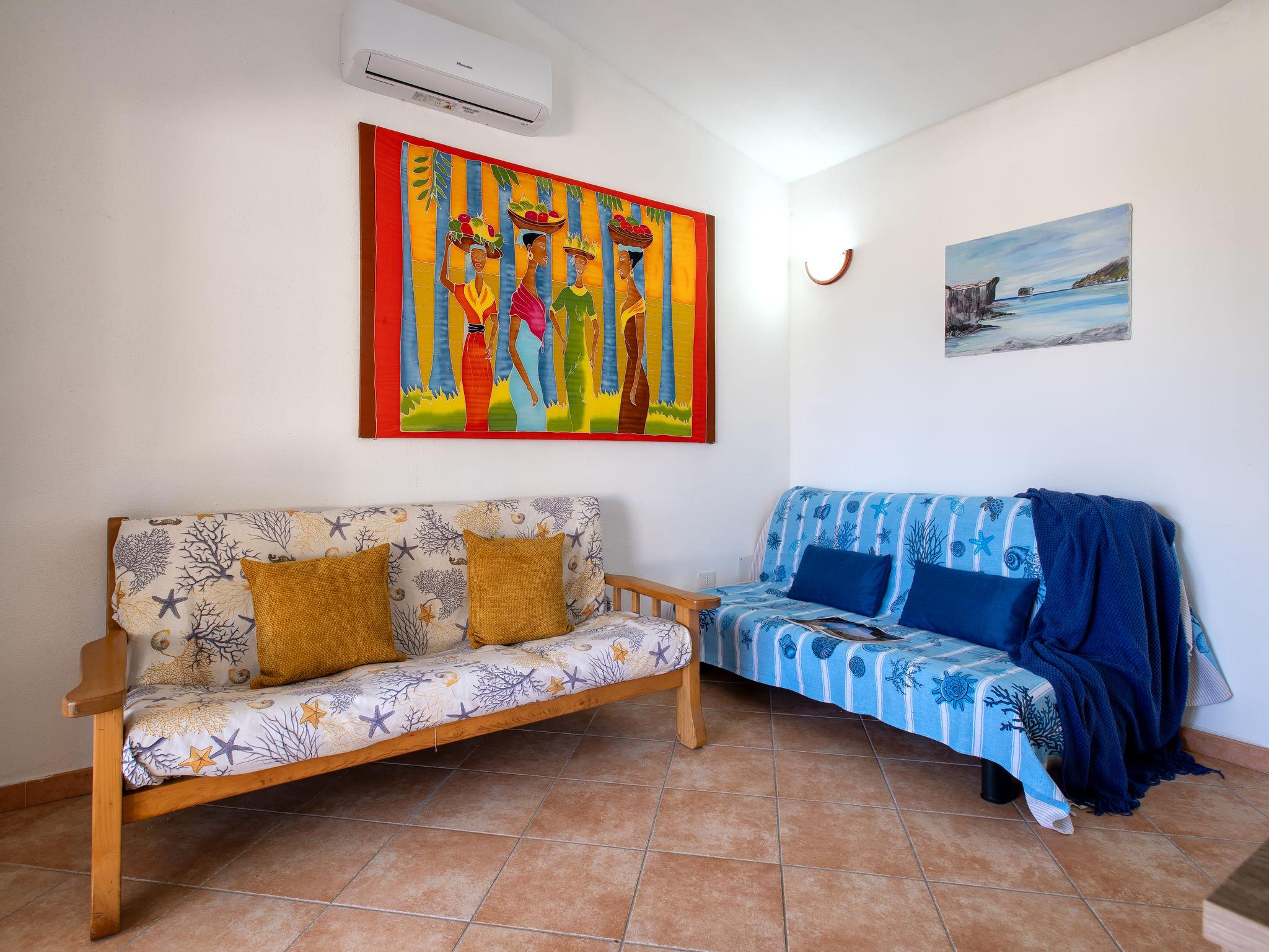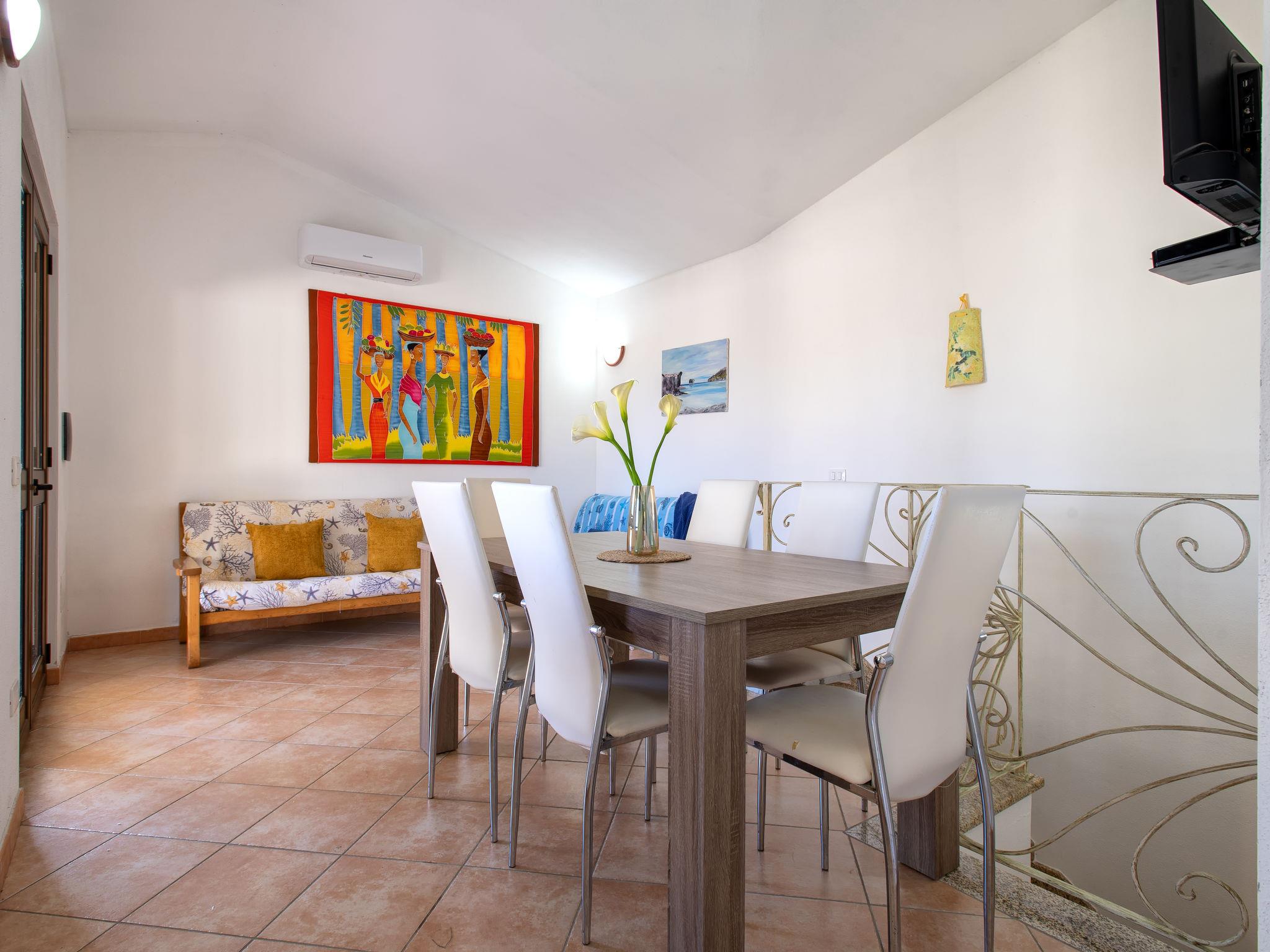 "Lu Nibaru 2", 4-room house 110 m2 on 2 levels. Simple and cosy furnishings: living/dining room with satellite TV. Exit to the veranda. Large kitchenette (oven, 4 gas rings, toaster, kettle, electric coffee machine). Exit to the veranda. Sep. WC. On the lower ground floor: 1 room, without window with 2 beds. 2 double bedrooms, without window. Shower/bidet/WC. Air-conditioning, forced-air heating. Heating not available in all rooms. Large terrace partly roofed. Terrace furniture, barbecue. View of the countryside. Facilities: washing machine, iron, children's high chair, baby cot (extra). Maximum 1 pet/ dog allowed. IT090062C2000R7640
