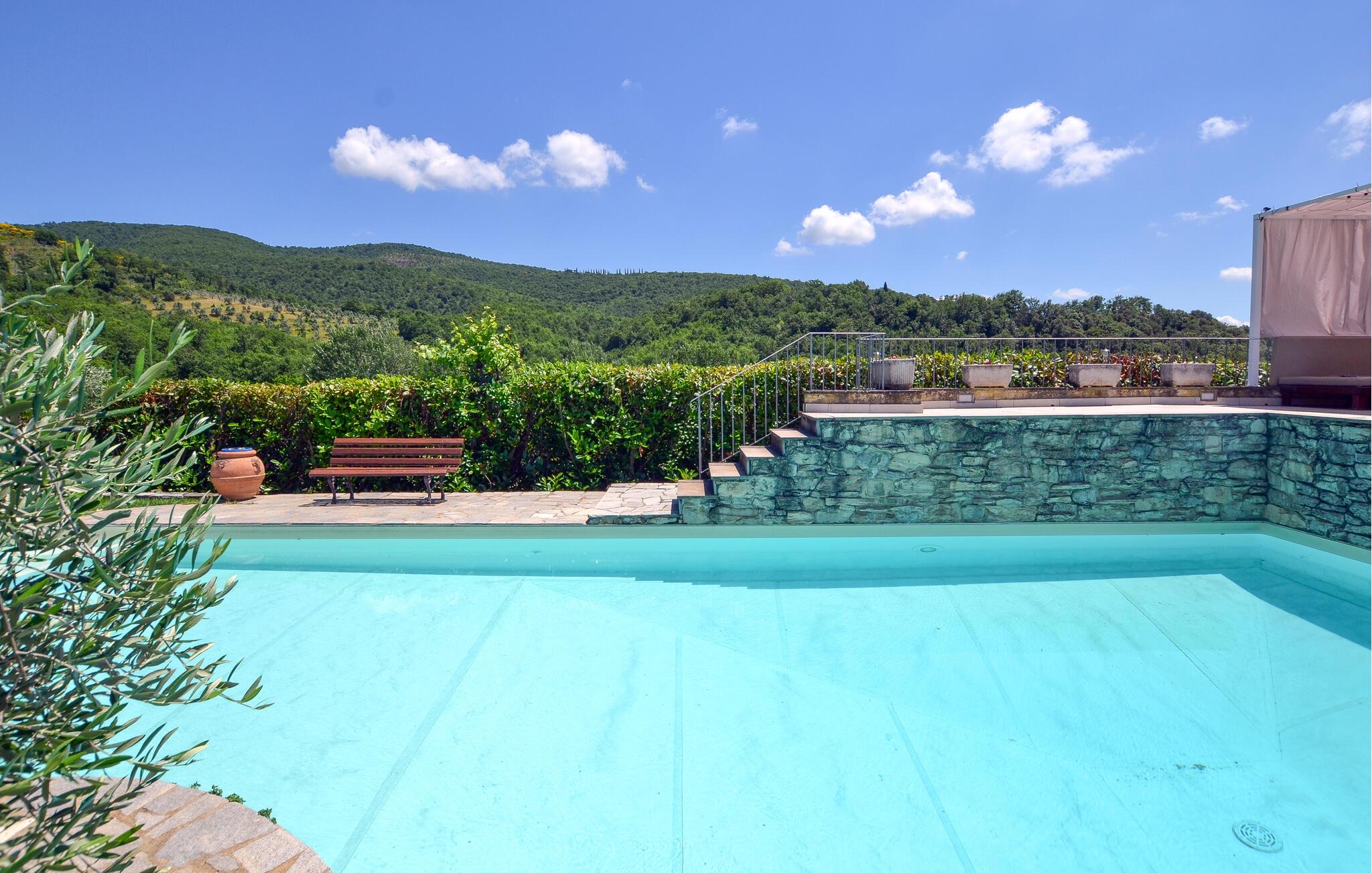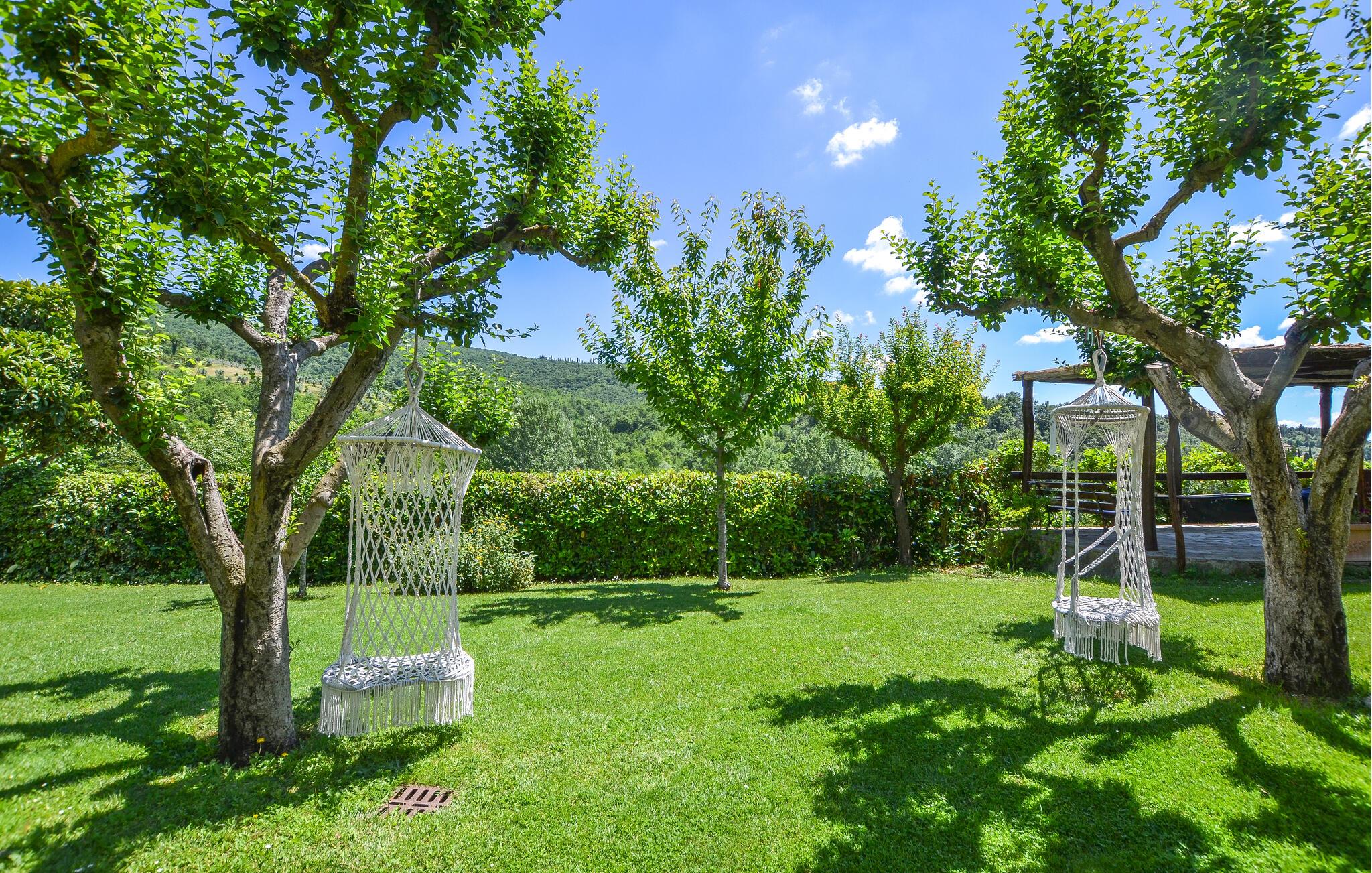 En ferie med fred, ro og mange skønne udflugter er, hvad der venter jer i denne dejlige lejlighed i Arrezzo i det østlige Toscana. I bor smukt omgivet af det grønne, kuperede landskab og har en fremragende udsigt over naturen. Indretningen fremtræder varmt og indbydende med velholdte flisegulve, farverige tapeter og et veludstyret køkken, hvor I kan tilberede familiens livretter efter en dejlig dag på farten.