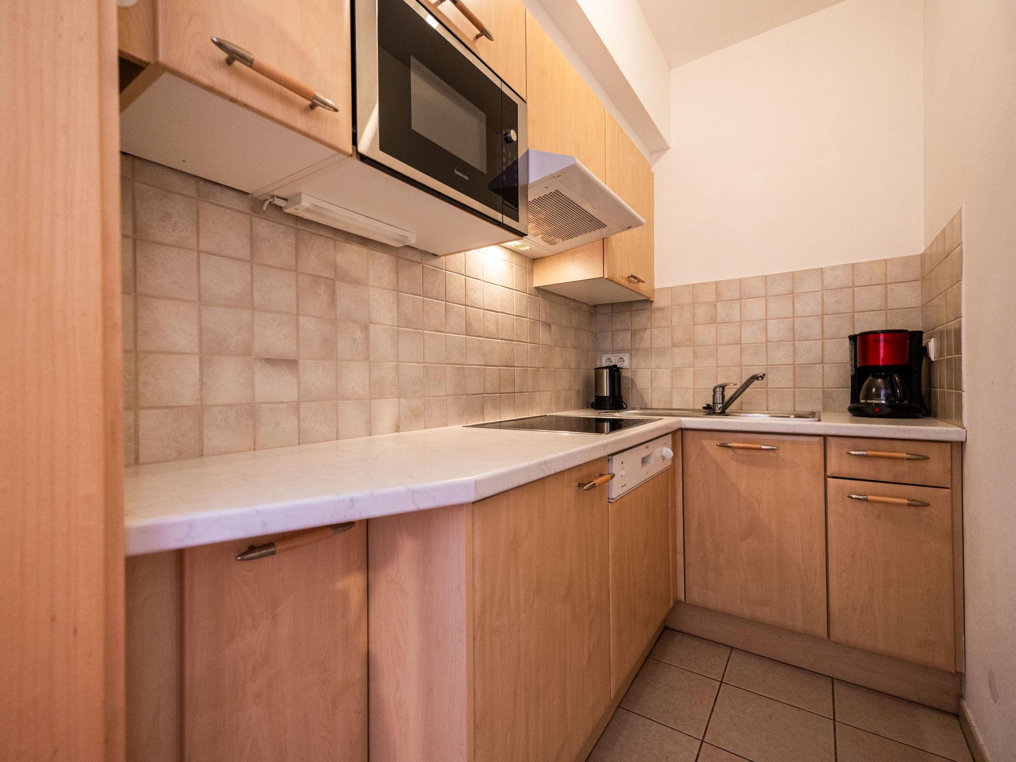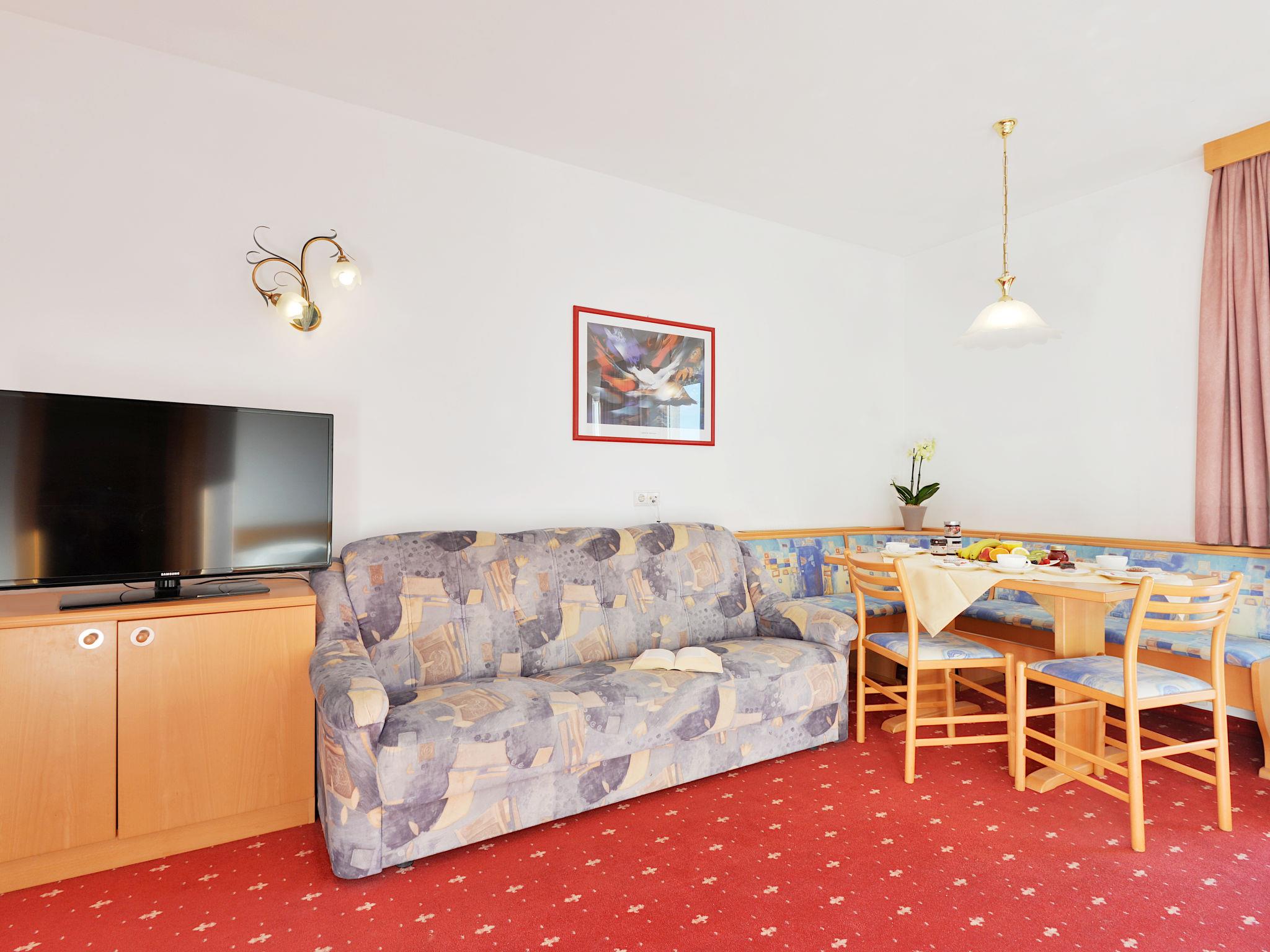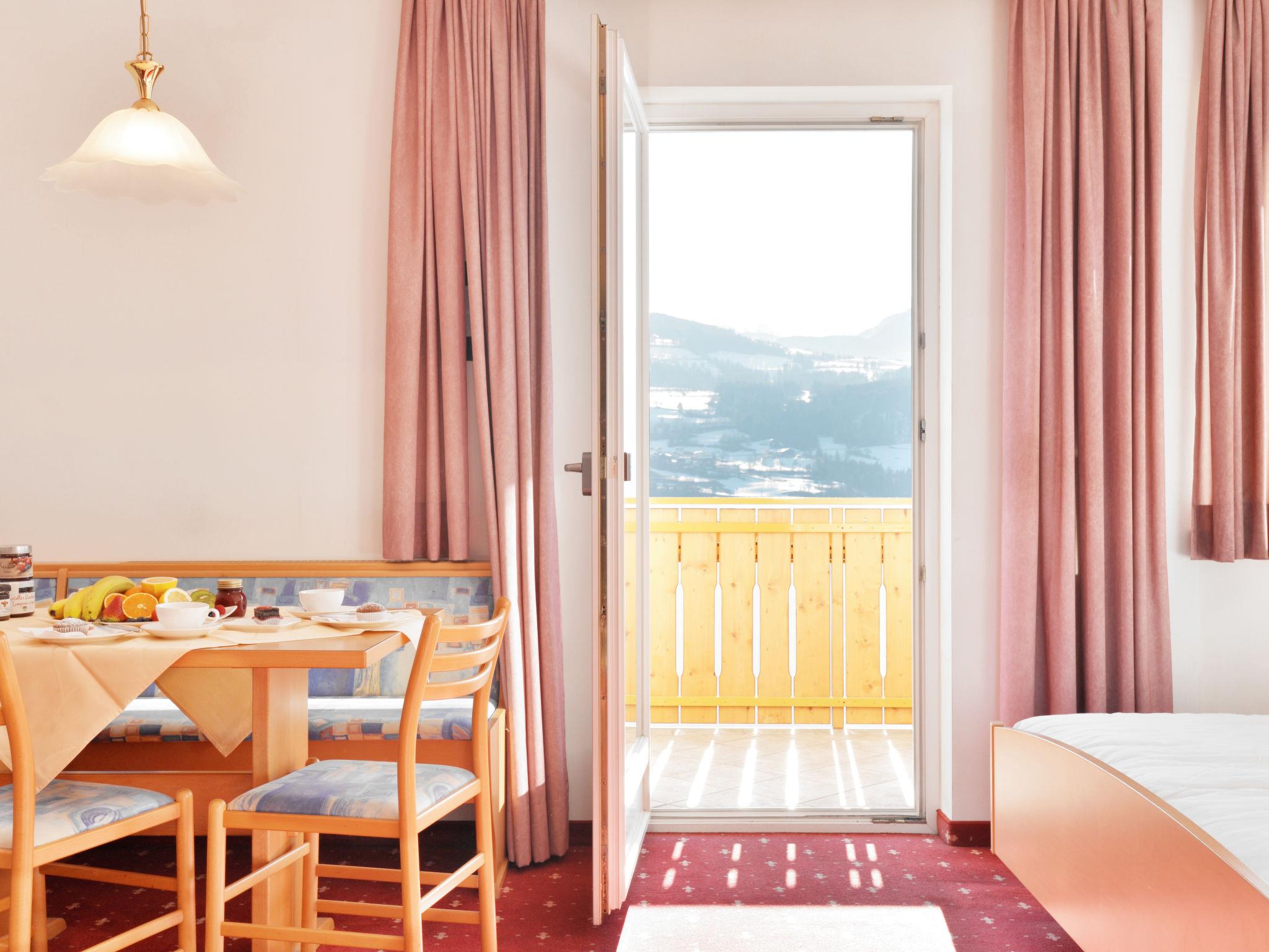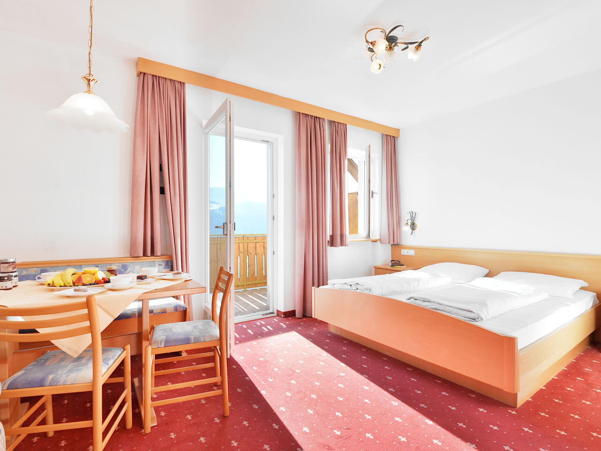 "Classic 303", 1-room apartment 32 m2 on 2nd floor. Bright, practical and cosy furnishings: living/sleeping room with 1 double bed, dining nook and satellite TV. Exit to the balcony. Small kitchen (dishwasher, 4 ceramic glass hob hotplates, toaster, kettle, microwave, electric coffee machine). Shower/WC. Heating. Carpet. Balcony. Balcony furniture. Marvellous panoramic view of the mountains and the valley. Facilities: safe, children's high chair, baby cot (extra). Internet (WiFi, free). Please note: non-smokers only. Maximum 1 pet/ dog allowed. No mandatory extra charges to be paid on-site except for local tax. Bedlinen, towels, final cleaning and all energy costs are included. IT021114B4YTADM49K