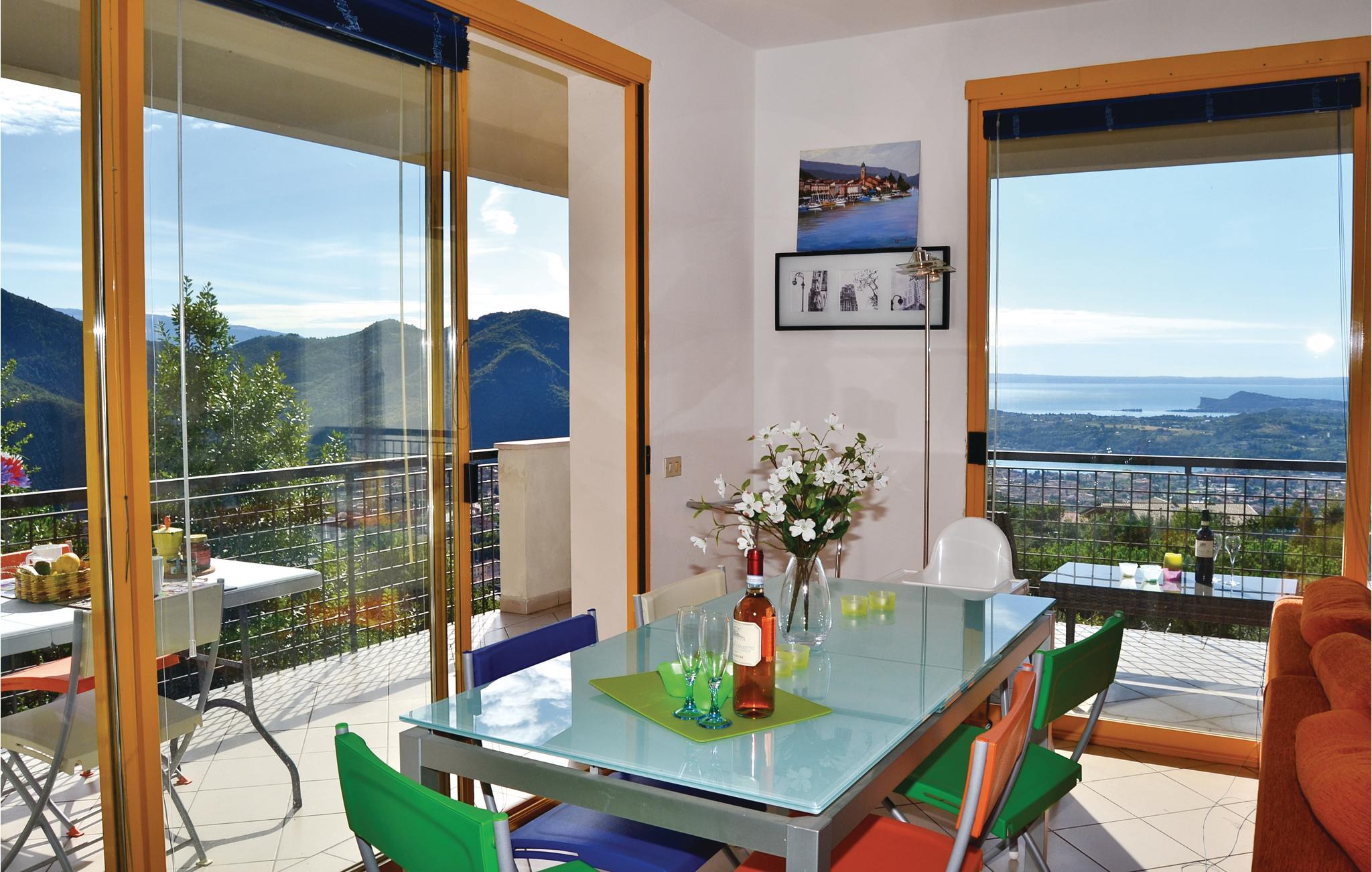 Flot lille feriehus på tre etager i et boligkompleks med fælles pool og udsigt til søen. 1. sal: Entre, lys stue med køkkenhjørne og panoramaterrasse til måltider eller aperitif i det fri. Stueetage: Badeværelse, to soveværelser, et med udgang til delvist terrasseformet anlagt have over en lille trappe. I souterrain: Åbent dobbeltværelse og privat badeværelse, et vindue mod hulrum mellem to vægge. Til afslapning kan I benytte jer af kompleksets pool. Beliggenheden er ideel til at opdage den skønne Gardasø, og der er 8,5 km til berømte Salò, hvor der er museer, restauranter og butikker. 14,5 km til Toscolano Maderno med maleriske vandringsruter, 9,6 km til Gardone Riviera med Vittoriale, 37 km til Sirmione med kurbadene. Med båd når I også de maleriske landsbyer langs søens østbred. Gardasøen er også ideel til at sejle i båd og kano, fiske, dykke, vandre, mountainbike og ridning. I nærheden venter naturparker og vandlande til alle aldre.Trådløs internet op til GB/dag.