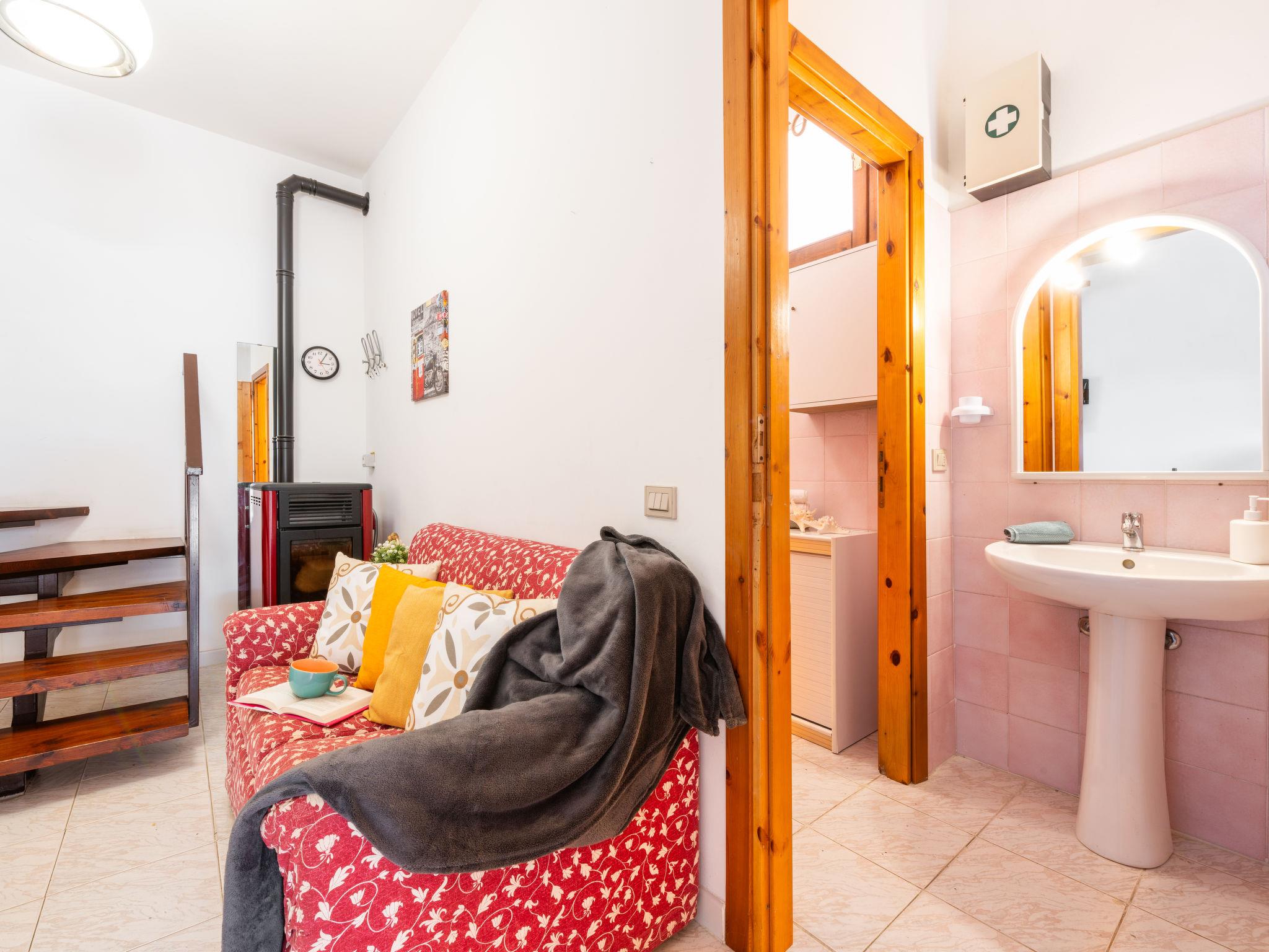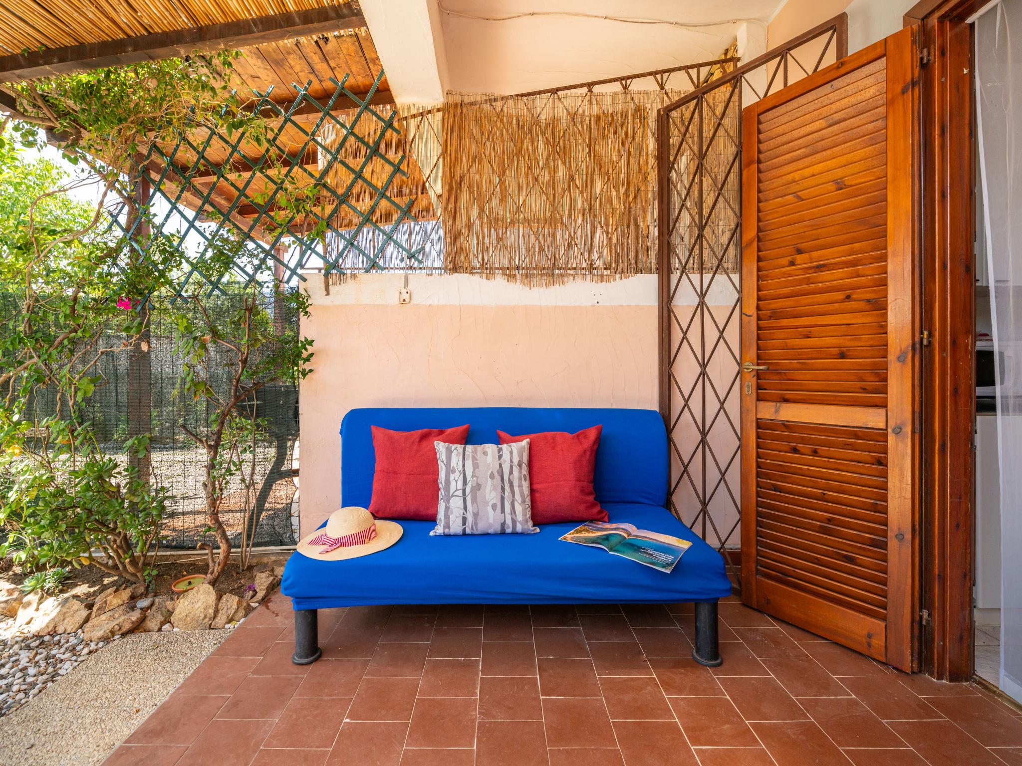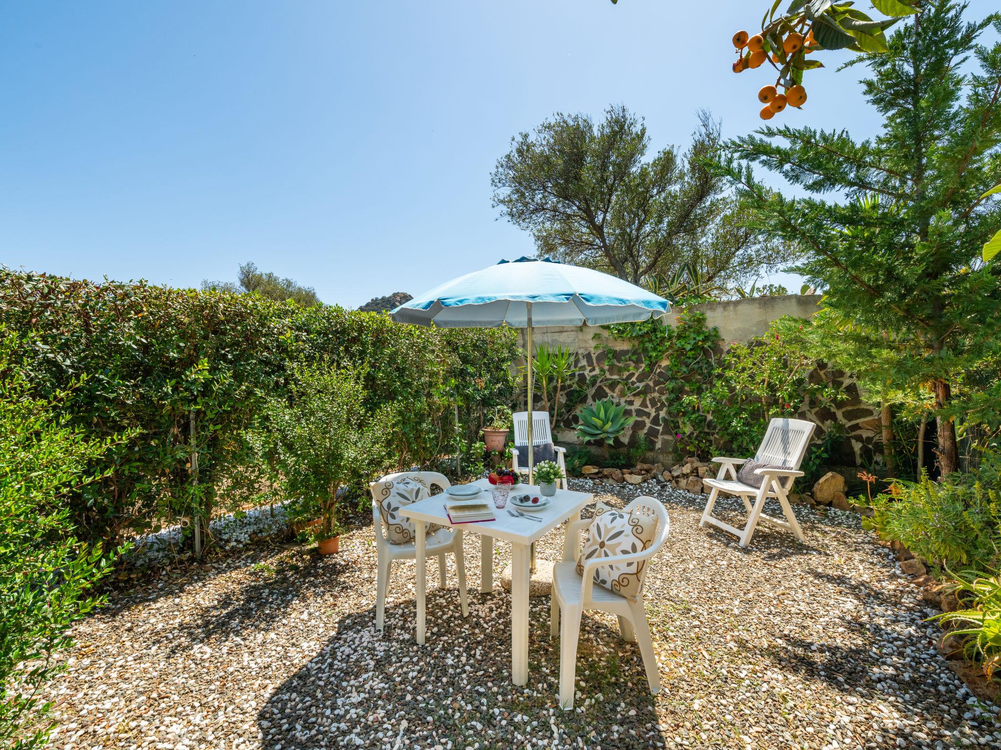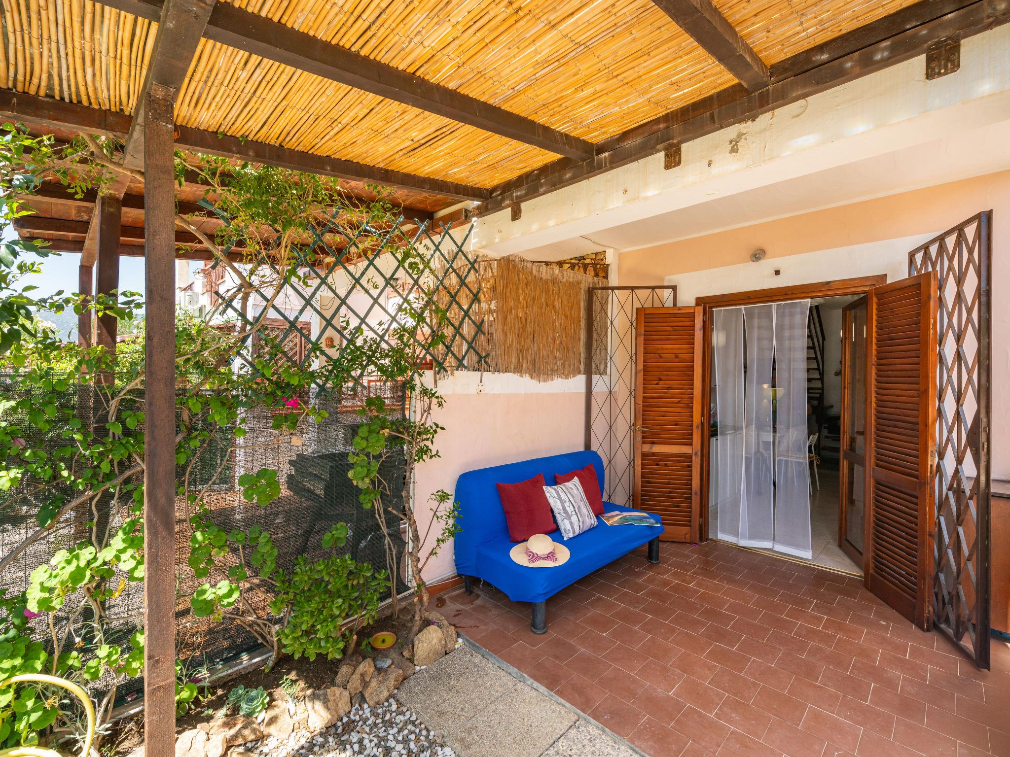 Terraced house "Mandorleto", 2 storeys, surrounded by trees. 600 m from the centre of Villasimius, in a quiet, sunny, elevated position on a slope, 2.8 km from the sea. Private: garden 30 m2 (fenced). Outdoor shower, garden furniture, barbecue, parking at the house. Grocery 600 m, supermarket 1 km, restaurant, bar 500 m, bus stop "via Roma La Lanterna" 1 km, railway station "Cagliari" 60 km, ferry "Cagliari" 60 km, sandy beach "Simius" 2.8 km. Marina 5 km. Nearby attractions: Cagliari 50 km, Costa Rei 25 km. Please note: car recommended. Access to the house via stairs with 50 steps or via the garage (10 steps). The access ramp to the garage is steep and narrow.
