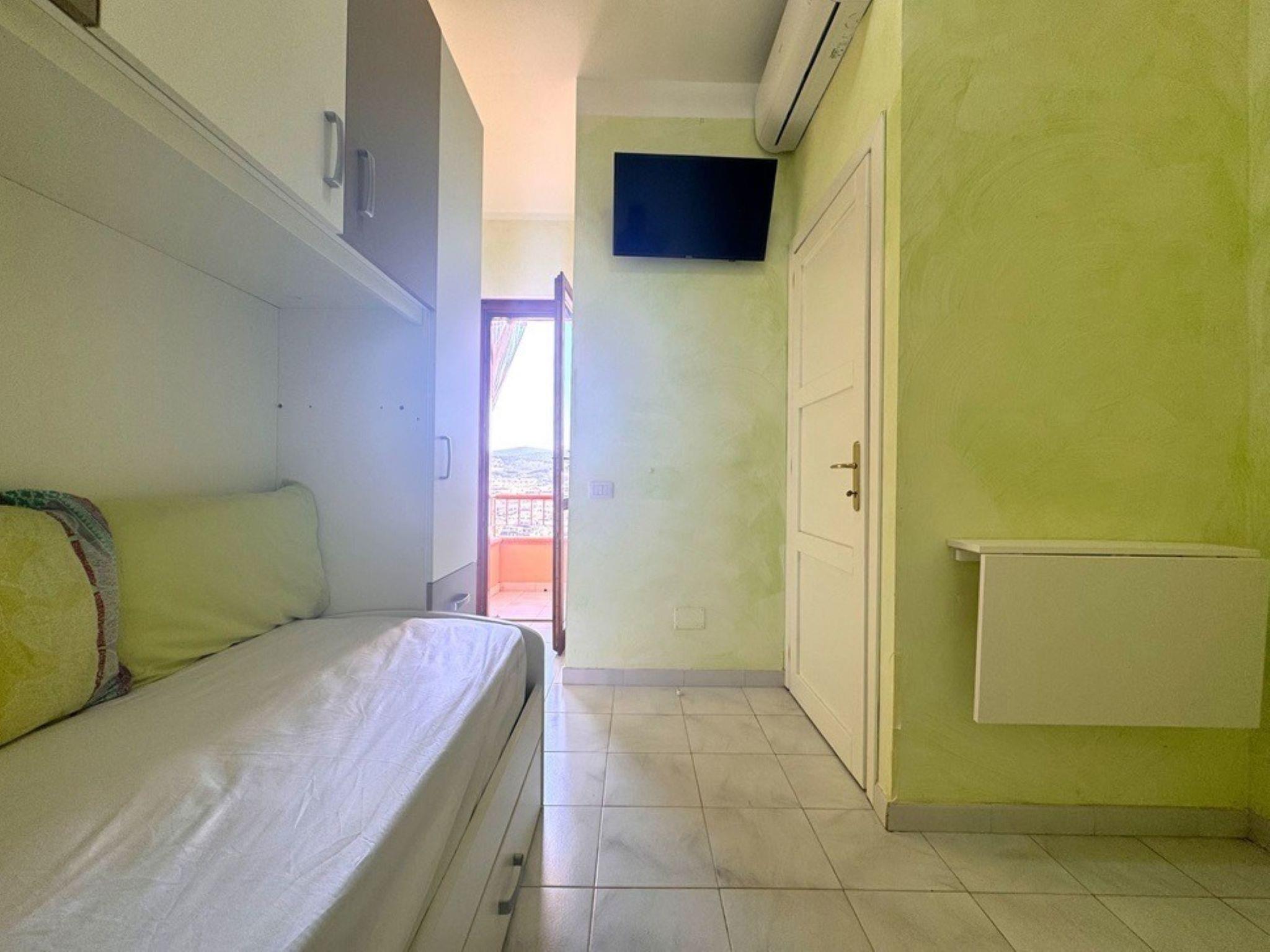 3-room terraced house 60 m2 on 1st floor. Simple and comfortable furnishings: living/dining room with 1 double sofabed, dining table and TV (flat screen). Exit to the veranda. Kitchenette (4 hot plates, oven, freezer). Shower/bidet/WC. Upper floor: (steep stair), 1 room with 1 double bed, TV and air conditioning. Exit to the balcony. 1 room with 1 bed, 1 pull-out bed, TV and air conditioning. Exit to the balcony. Shower/bidet/WC. Air-conditioning, forced-air heating. Terrace roofed. Beautiful view of the resort. Facilities: washing machine, iron, children's high chair, baby cot for up to 2 year olds (extra), hair dryer. Internet (WiFi). IT111105C2000U2331