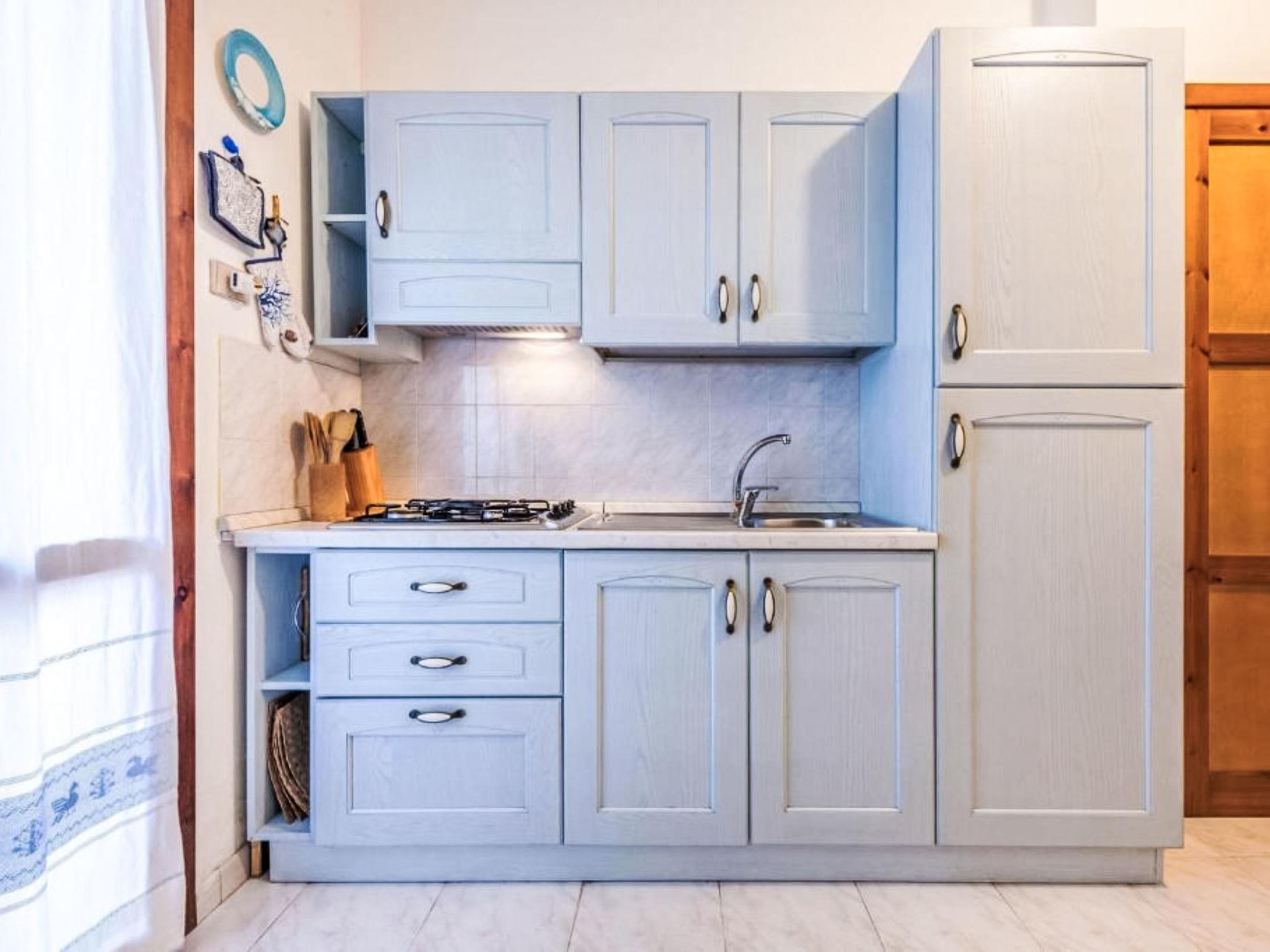 "Casa Lilla", 4-room house on 3 levels. Comfortable and cosy furnishings: living/dining room with dining table, satellite TV and air conditioning. Exit to the terrace. Kitchenette (4 gas rings). On the lower ground floor: 1 room with 1 double bed and air conditioning. Shower/bidet/WC. Upper floor: 2 rooms, each room with 1 double bed and air conditioning. Exit to the balcony. Shower/bidet/WC. Air-conditioning, forced-air heating. Heating not available in all rooms. Large terrace partly roofed. Terrace furniture, barbecue. View of the resort. Facilities: washing machine, iron, children's high chair, baby cot for up to 2 year olds (extra), hair dryer. Internet (WiFi, free). Parking at the house. IT111105C2000R9298