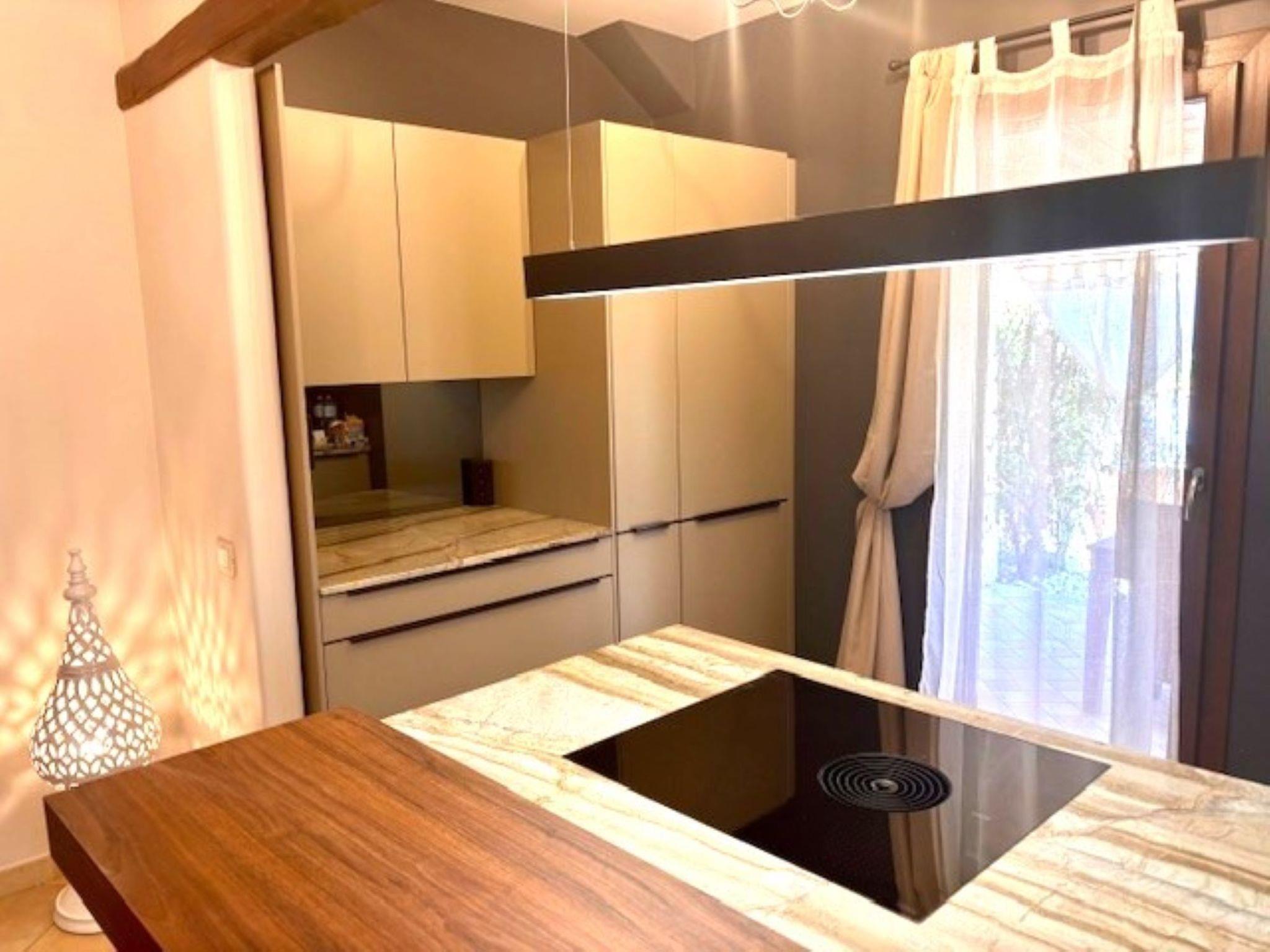 "Villetta Rosa", 3-room house 115 m2 on 2 levels. Beautiful and cosy furnishings: large living/dining room with dining table and TV (flat screen), air conditioning. Exit to the veranda with 1 double sofabed. Kitchen (4 induction hot plates, electric coffee machine). Shower/bidet/WC. Air-conditioning, forced-air heating. Heating not available in all rooms. Upper floor: 1 room with 1 double bed, TV and air conditioning. 1 room with 1 double bed, TV and air conditioning. Shower/bidet/WC. Large terrace roofed. Terrace furniture, barbecue. View of the resort. Facilities: washing machine, iron, children's high chair, baby cot for up to 2 year olds (extra). Internet (WiFi, free). Parking at the house. Please note: fire extinguisher. IT111105C2000U2016
