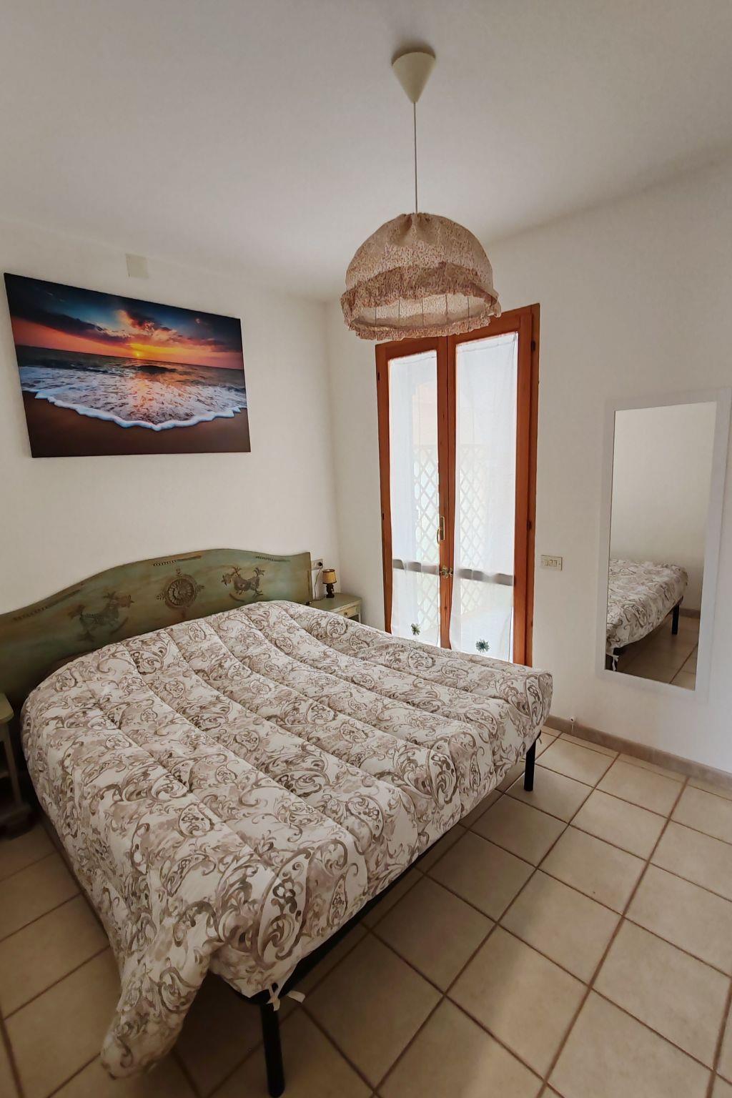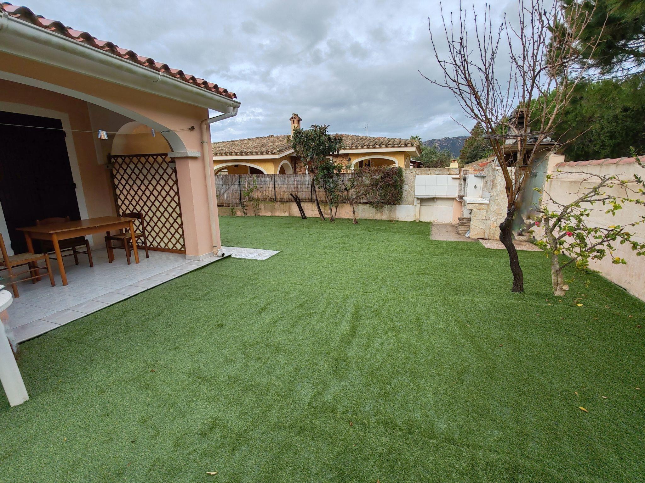 The outside of the villa is equally inviting, with a large garden on three sides that promises privacy and space to relax outdoors. A veranda offers the opportunity to enjoy al fresco meals or simply soak up the pleasure of a good book under the Sardinian sun. An outdoor shower and barbecue further enhance the outdoor experience, allowing for lively barbecue evenings or a refreshing shower after a day at the beach.