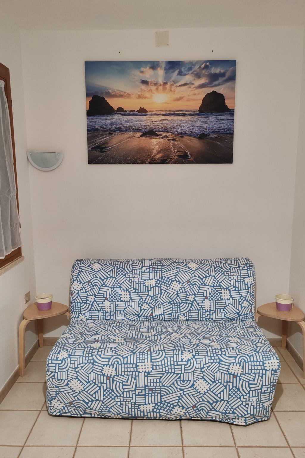 Inside, the villa offers a cosy and functional ambience. The living room has a comfortable sofa bed that complements the double bedroom to comfortably accommodate up to 4 persons. Air conditioning in part of the villa ensures a comfortable climate during the summer months. Facilities also include a washing machine for exclusive use, thus ensuring all the comforts of home even on holiday. The gas kitchen, complete with coffee maker and electric kettle, offers everything you need to prepare delicious breakfasts or light meals to enjoy in the tranquillity of your own home.