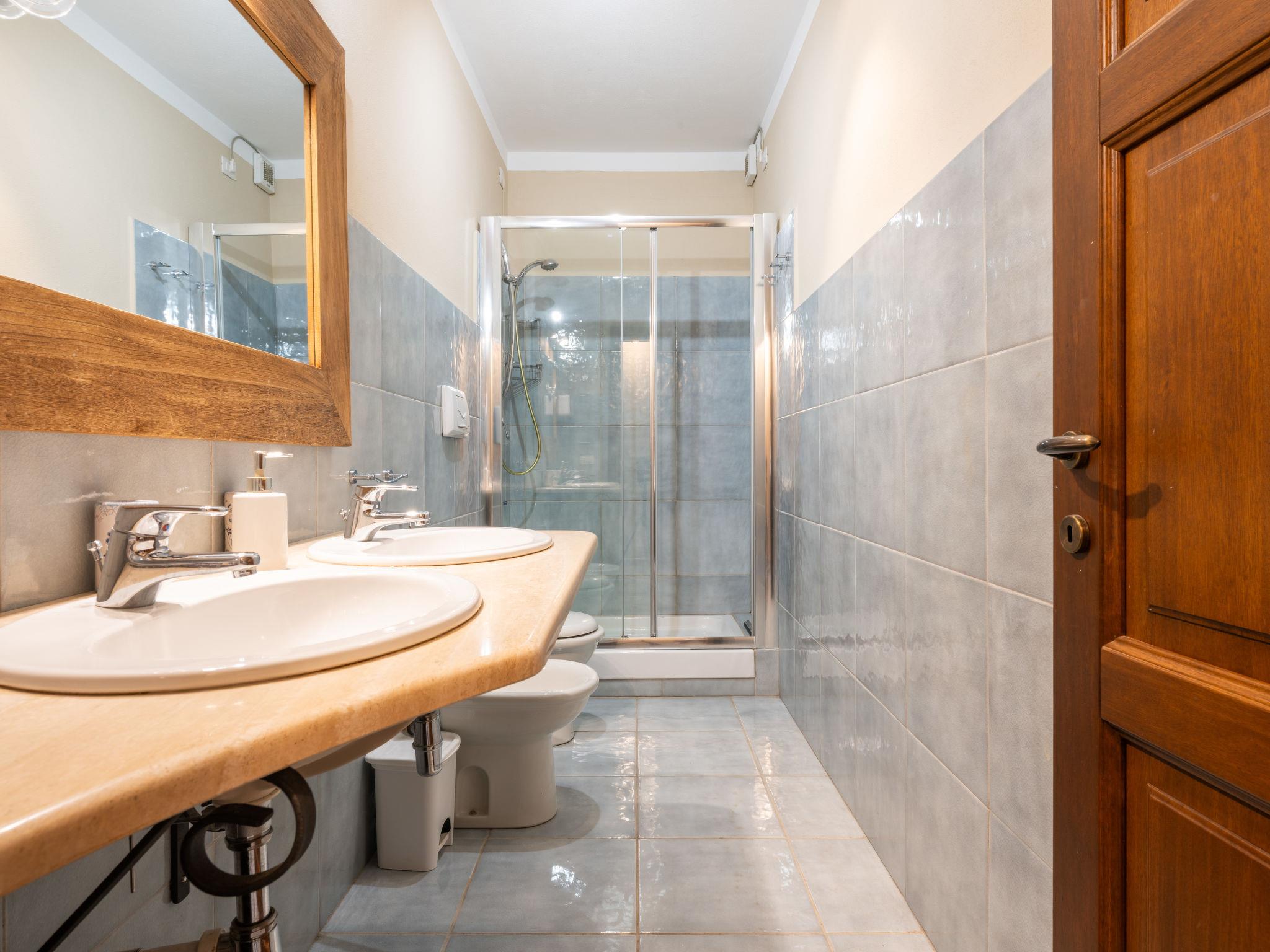 "Golf Apartment", 3-room apartment 70 m2 on 1st floor. Comfortable and cosy furnishings: living/dining room with dining table, TV and air conditioning. Exit to the veranda. Kitchenette (oven, 4 induction hot plates, kettle). Shower/bidet/WC. Upper floor: 2 rooms, each room with 1 double bed. Exit to the balcony. Shower/bidet/WC. Air-conditioning, forced-air heating. Heating not available in all rooms. Large balcony. Balcony furniture. Partial view of the sea. Facilities: washing machine, children's high chair, baby cot (extra), hair dryer. Internet (WiFi). Parking (roofed). Please note: smoke alarm, fire extinguisher. IT111105C2000T7013
