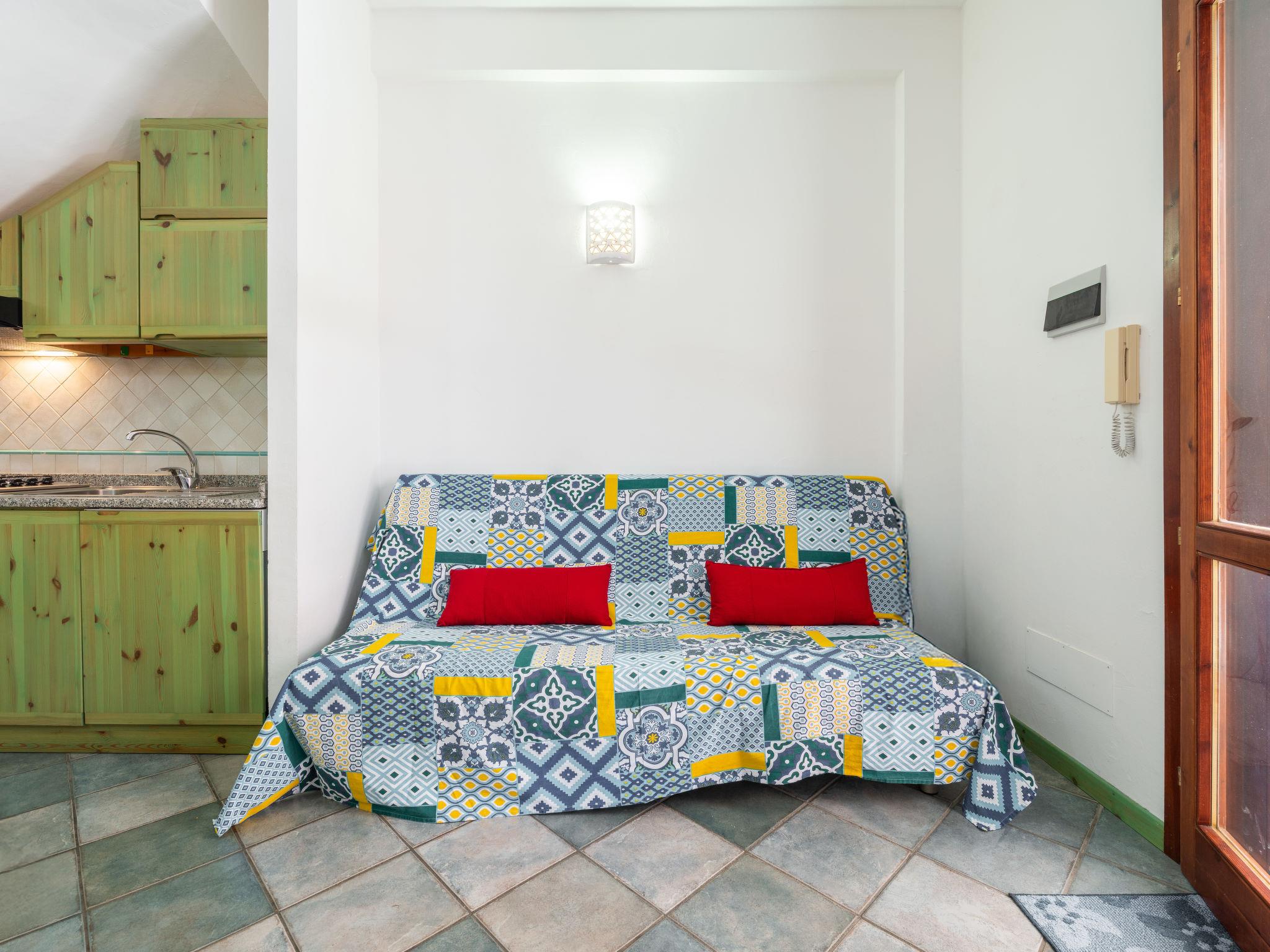 "Appartamento Caòmbu", 3-room terraced house 65 m2 on 2 levels on 1st floor. Comfortable and cosy furnishings: living/dining room with open-hearth fireplace (only for decoration), dining table, digital TV and air conditioning. Exit to the veranda. Kitchenette (oven, 4 gas rings, kettle). Upper floor: 2 rooms, each room with 1 double bed and air conditioning. Exit to the balcony. Shower/bidet/WC. Air-conditioning, forced-air heating. Terrace partly roofed. Terrace furniture. Facilities: washing machine, children's high chair, baby cot for up to 2 year olds (extra), hair dryer. Garage. IT111105C2000Q2525