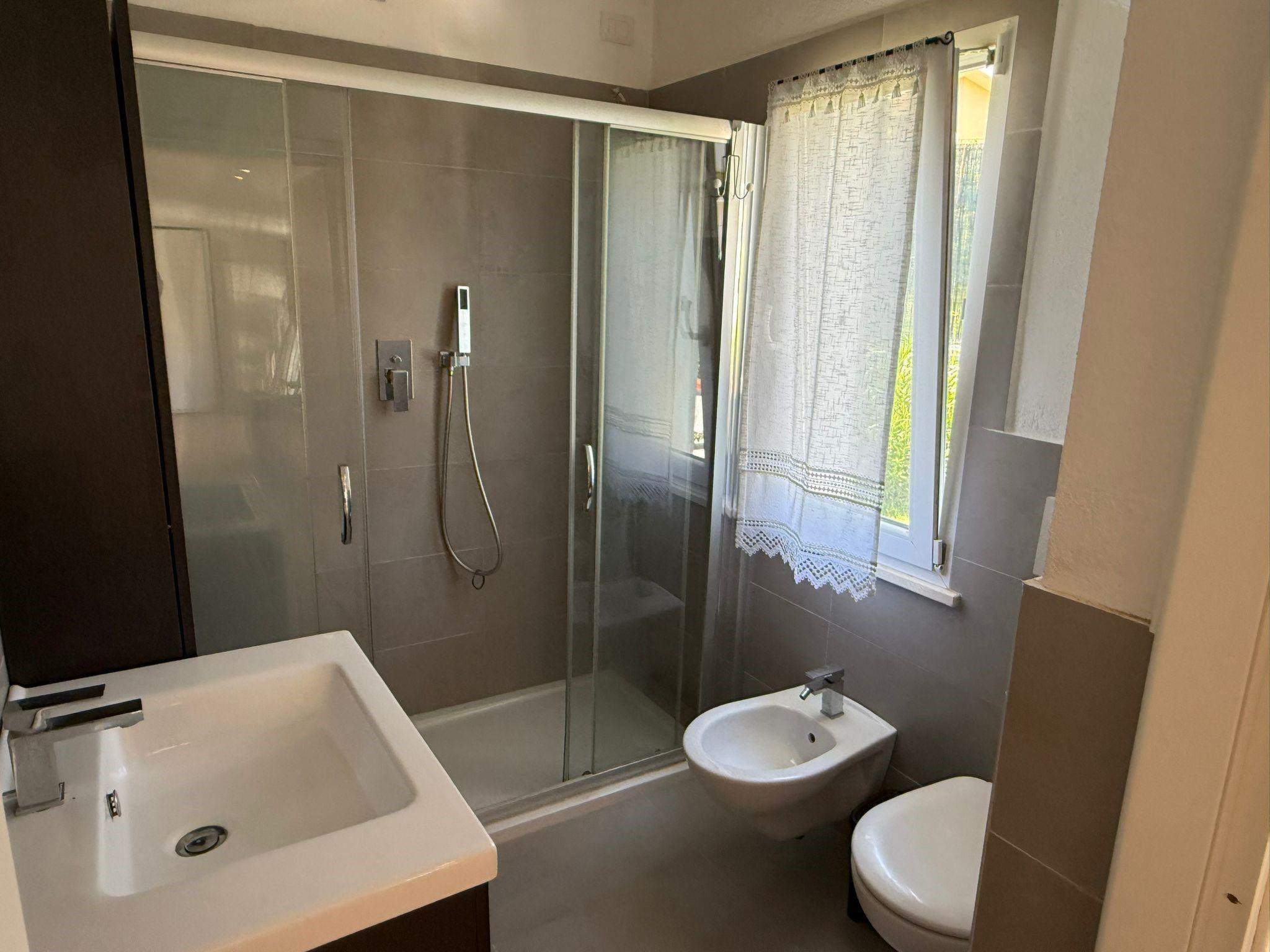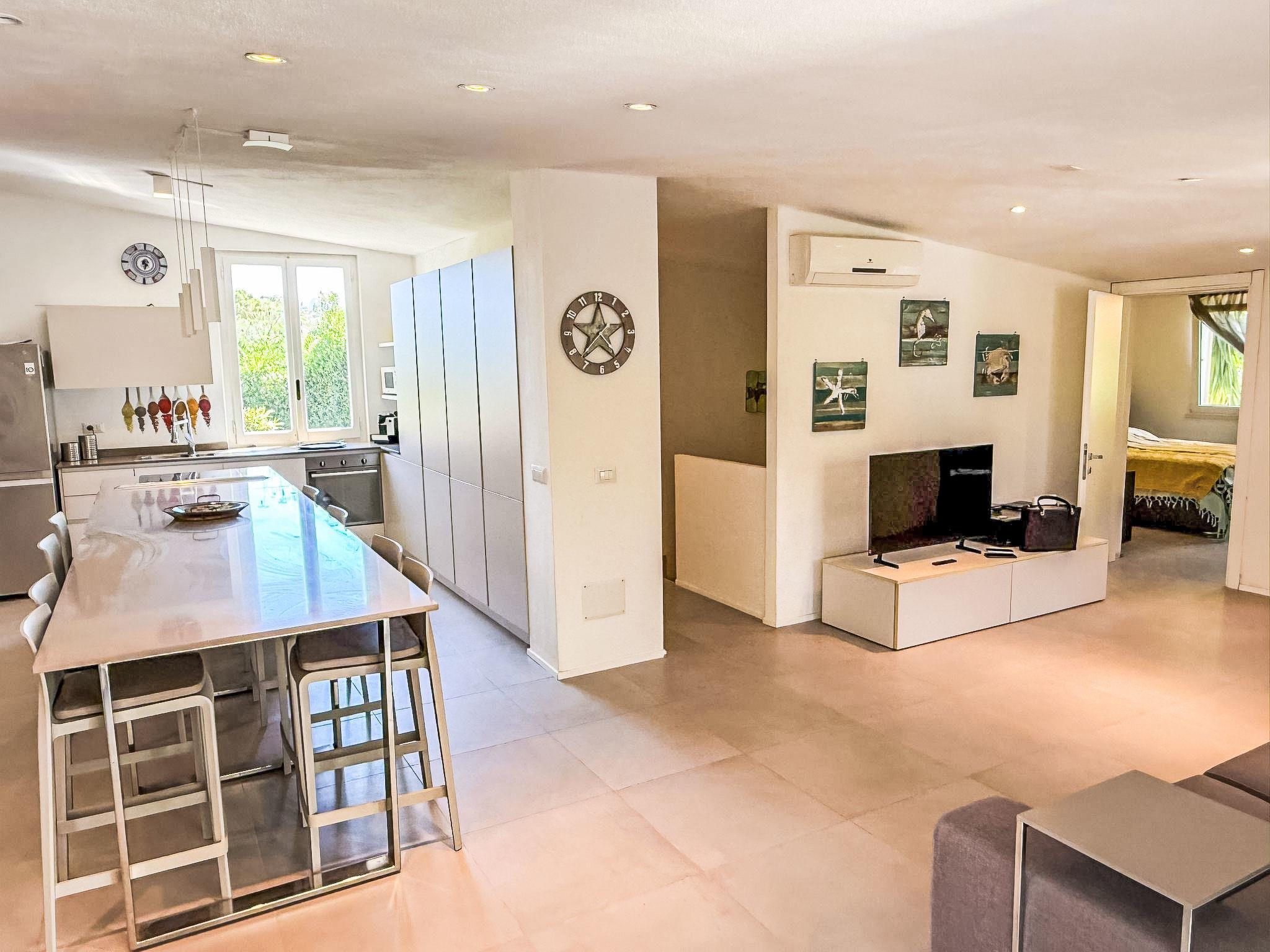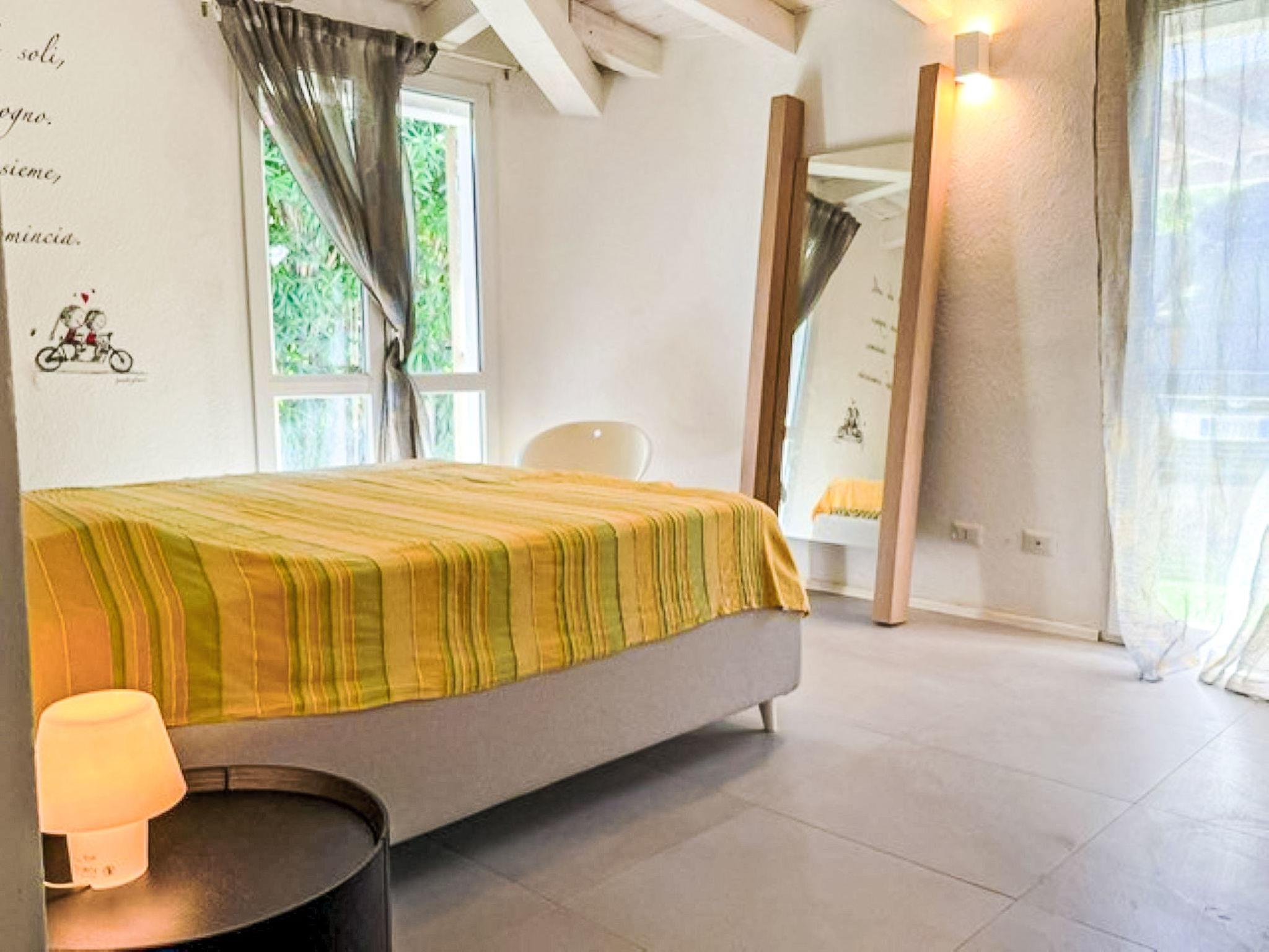 "Villa Mandorli", 6-room villa 150 m2. Comfortable and tasteful furnishings: living/dining room with TV and air conditioning. Exit to the garden, to the veranda. 1 room with 1 bed and 1 double bed. 1 room with 1 double bed. Large kitchen (oven, 4 ceramic glass hob hotplates, toaster, kettle, microwave, electric coffee machine). Exit to the garden. Shower/bidet/WC. Air-conditioning, forced-air heating. Heating not available in all rooms. On the lower ground floor: 1 room with 2 beds. 2 rooms, each room with 1 double bed. Shower/bidet/WC. Large patio roofed, large garden. Terrace furniture. View of the countryside. Facilities: washing machine, children's high chair, baby cot (extra), hair dryer. Internet (WiFi, free). Parking at the house. Please note: suitable for families. Non-smoking house. Smoke alarm, fire extinguisher. When there are less than the maximum number of guests staying at the property, not all of the bedrooms will be available for use. IT111105C2000S5052