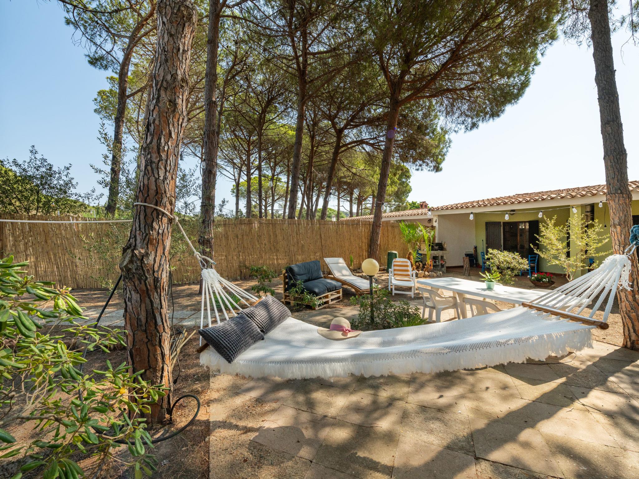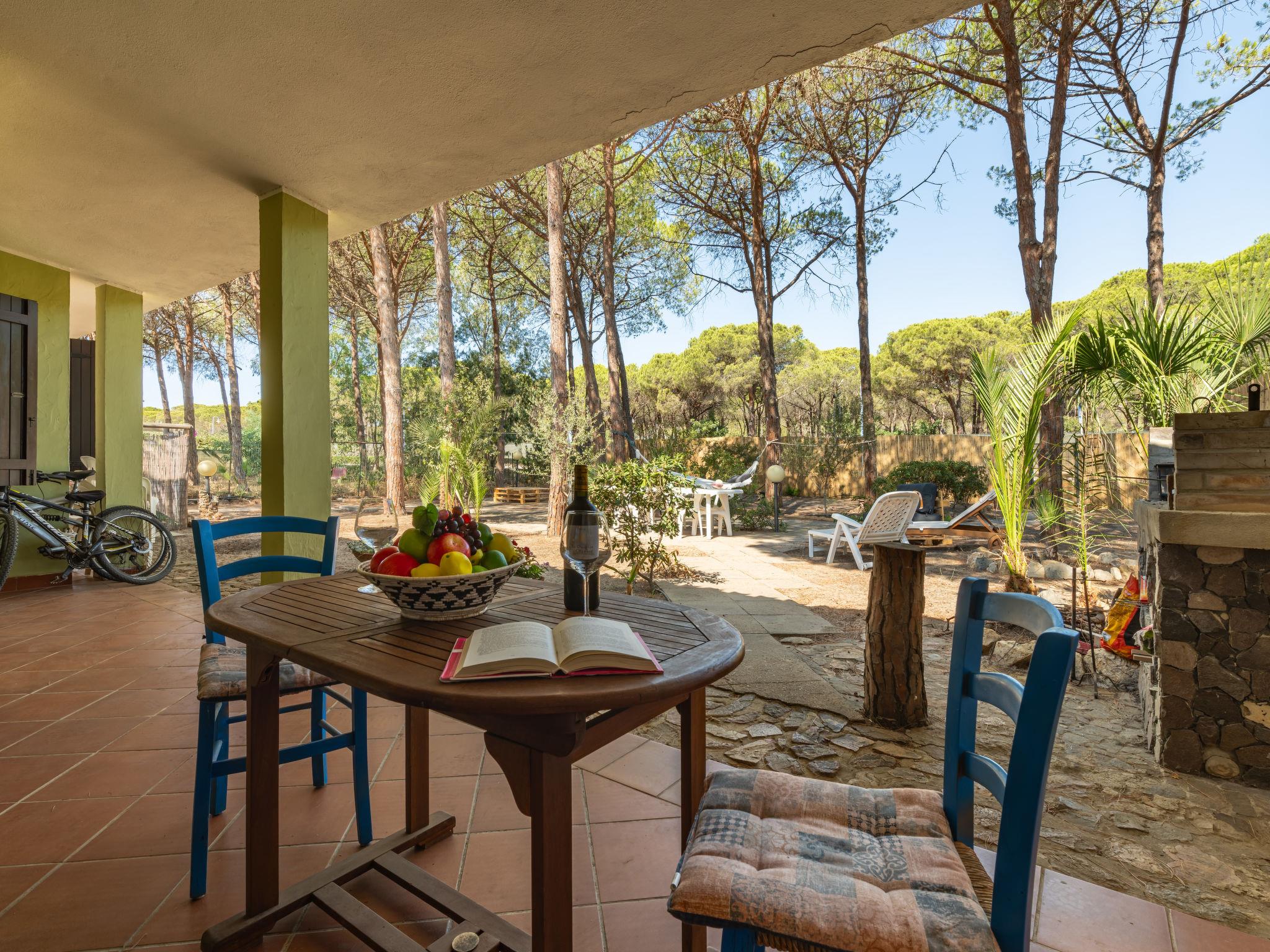 Cosy villa detached, surrounded by trees. On the outskirts, 1 km from the centre of Villasimius, in a quiet, sunny position, 200 m from the sea, 200 m from the beach, in the countryside. Private: beautiful garden with flowers and trees. Outdoor shower, patio, barbecue. Motor access (300 m via unmade road). Parking (for 3 cars) at the house. Shop, supermarket, restaurant, bar 200 m, bus stop "via Roma La Lanterna" 3 km, railway station "cagliari" 50 km, ferry "Cagliari" 50 km, sandy beach "Spiaggia Del Riso" 200 m. Sports harbour 1 km, marina 1 km, golf course (18 hole) 1 km. Nearby attractions: Costa Rei 15 km, Cagliari 50 km. Please note: car recommended. Loading and unloading of baggage is possible at the holiday house.