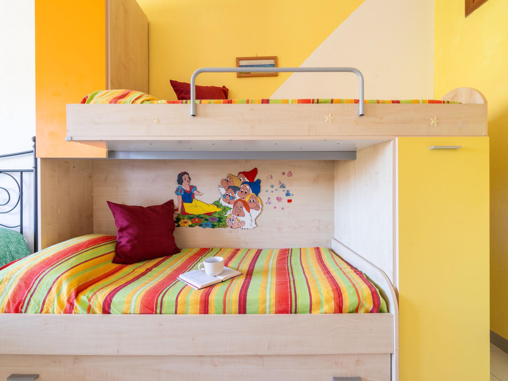 "Domus Centro", 4-room house 120 m2 on 2 levels, on the ground floor. Comfortable and cosy furnishings: living/dining room with dining table and digital TV. Exit to the garden. 1 room with 1 double bed. Kitchenette (4 gas rings, toaster, microwave, electric coffee machine). Shower/bidet/WC. Upper floor: 1 room with 1 x 2 bunk beds, 1 double bed and air conditioning. Exit to the balcony. 1 room with 1 double bed. Shower/bidet/WC. Air-conditioning, forced-air heating. Heating not available in all rooms. Balcony, small garden. Terrace furniture, barbecue. View of the countryside. Facilities: washing machine, iron, children's high chair, baby cot (extra), hair dryer. IT111105C2000S3176